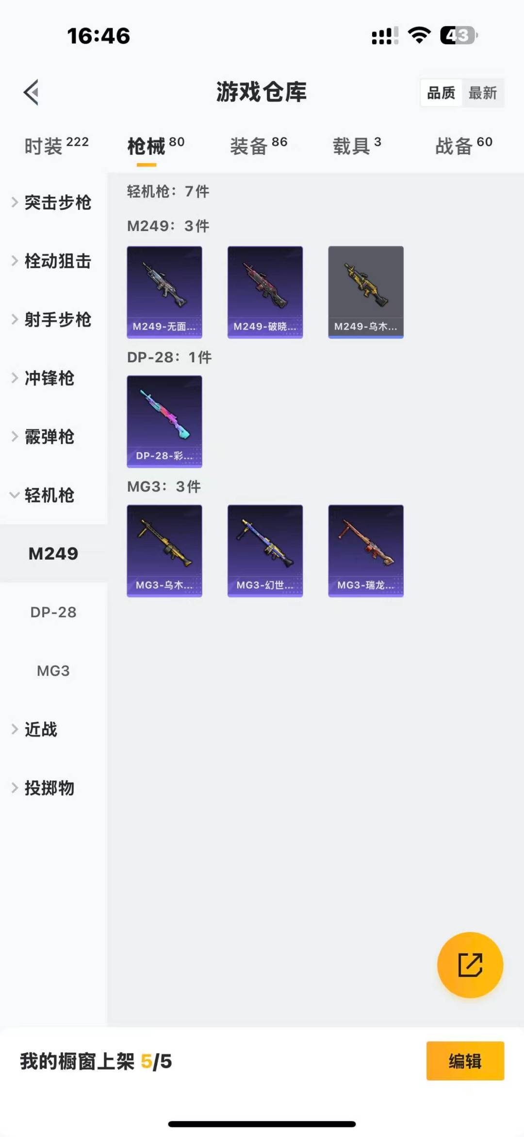 - [11851719]总资产:299.6M 11传说枪械 哈夫币:2.261K 可二次 可修改实名 烽火地带段位:钻石 全面战场段位:军士长 传说武器皮肤:UZI冲锋枪-特斯拉线圈,AWM狙击步枪-捞点薯条,腾龙突击步枪-捞点薯条,93R-捞点薯条,AK-12突击步枪-特斯拉线圈,SR-3M紧凑突击步枪-特斯拉线圈,勇士冲锋枪-能天使-午夜邮差,复合弓-黑-天际线,725双管霰弹枪-送葬人-无题密令,M4A1突击步枪-阿米娅,CAR-15突击步枪-阿米娅 史诗武器皮肤:PKM通用机枪-蝮蛇,QJB201轻机枪-Old Habits,M1014霰弹枪-林中猎手,MP5冲锋枪-深海恐惧,勇士冲锋枪-深海恐惧,SG552突击步枪-深海恐惧,AKM突击步枪-林中猎手,M16A4突击步枪-竞赛选手,M250通用机枪-囚徒,SV-98狙击步枪-林中猎手,PTR-32突击步枪-英雄,SV-98狙击步枪-囚徒,腾龙突击步枪-无垢,MP7冲锋枪-无垢,PSG-1射手步枪-无垢,SVD狙击步枪-荒野求生,SR-3M紧凑突击步枪-荒野求生,PKM通用机枪-荒野求生,沙漠之鹰-曙光,M700狙击步枪-竞技风