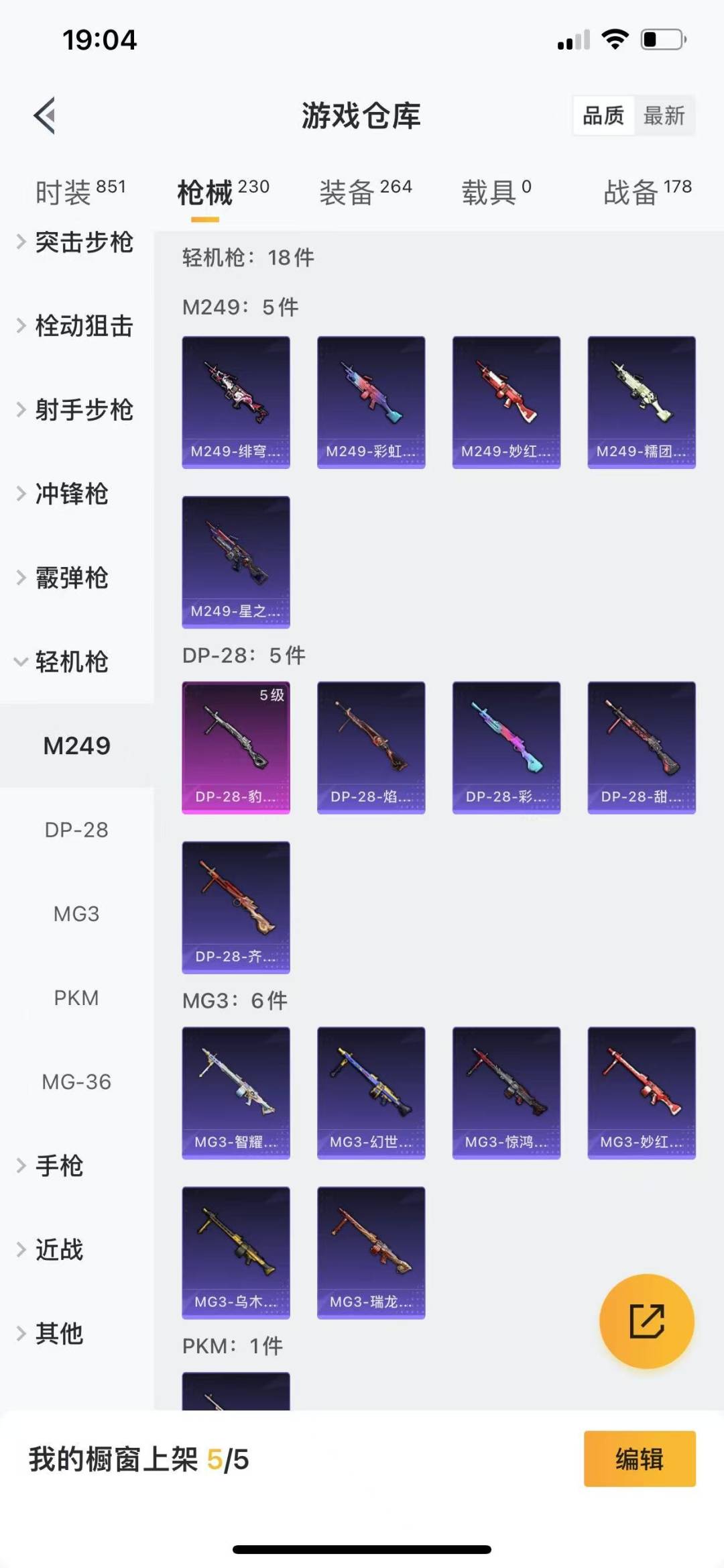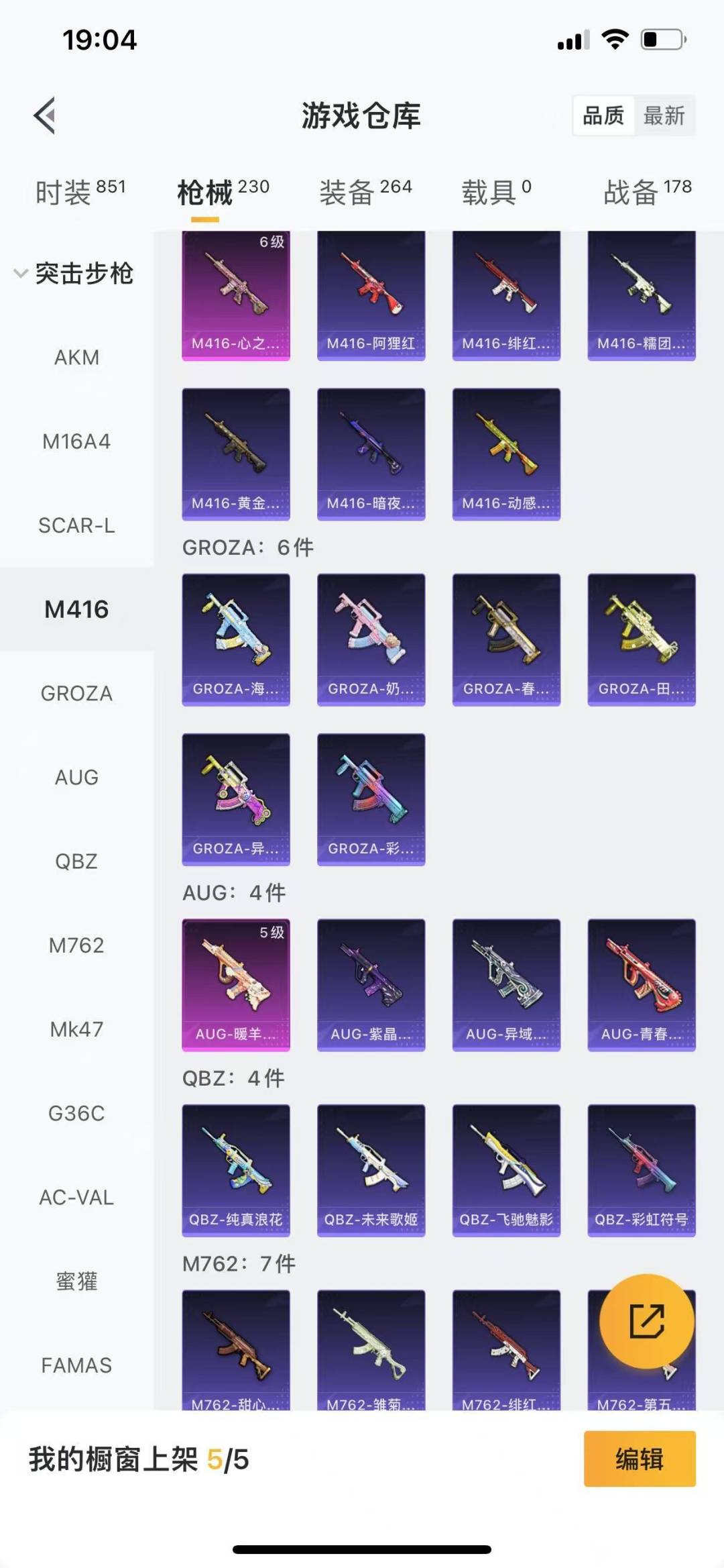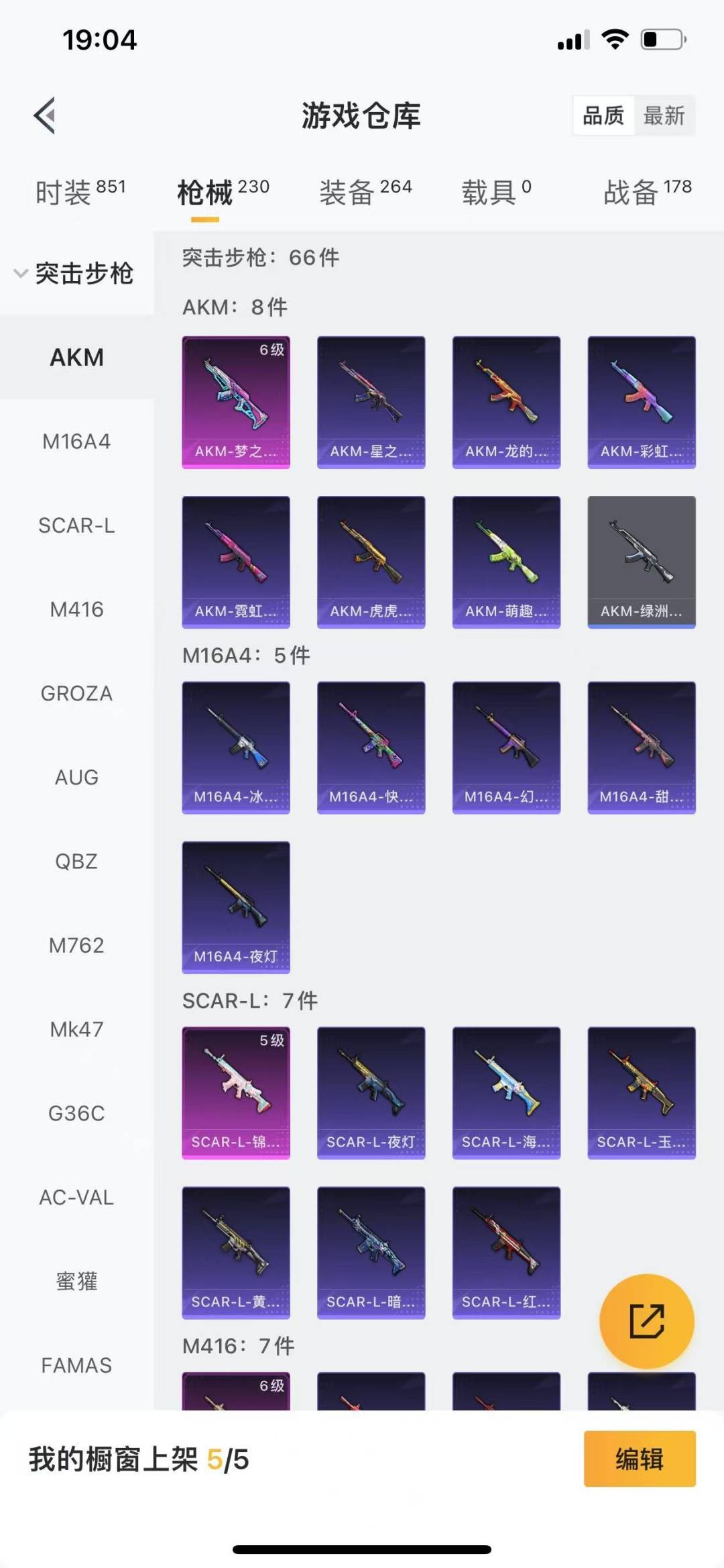 AKM-梦之光华,SCAR-L-锦绣绵绵,M416-心之恋语,AUG-暖羊咩咩,Kar98K-巳巳如意,Kar98K-未来歌姬,UMP45-量子极限