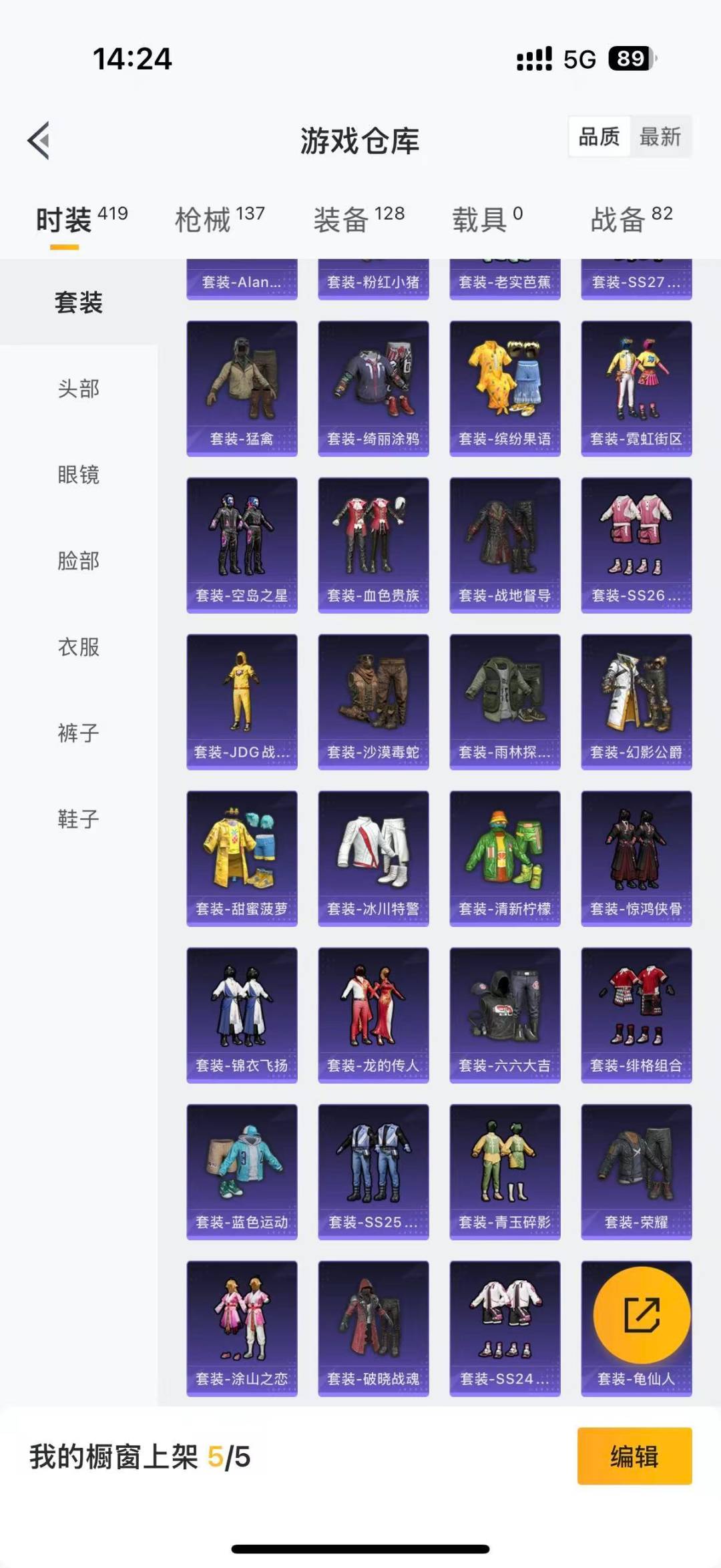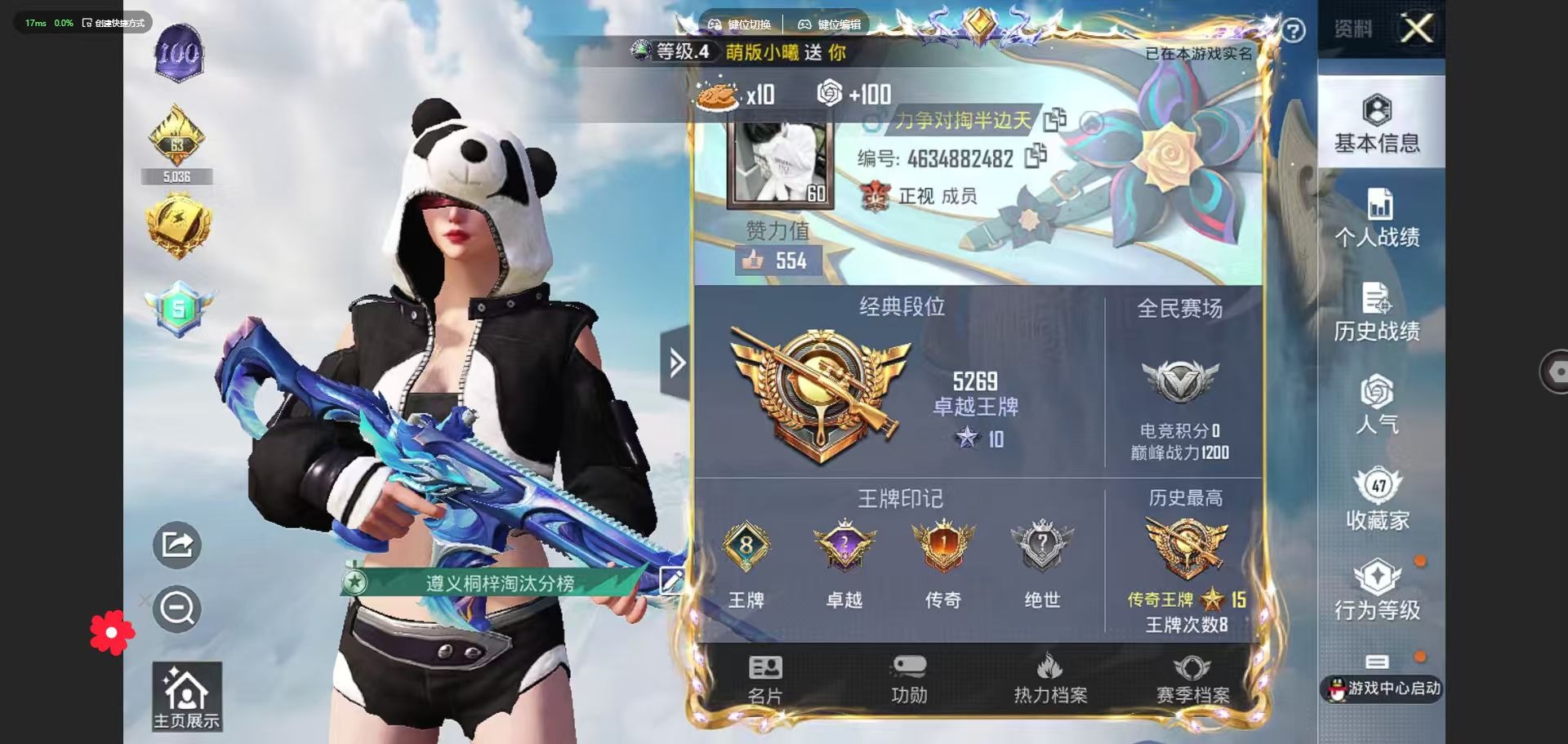 [11466380]1粉装 6特效枪 8印记 可二次 可修改实名 身法装备:暗影哥特(红眼罩) 优质装备:M416电玩时刻,GROZA-镜光银凌,SVD-月影灵韵,七级SVD-月影灵韵,AUG-暖羊咩咩,幻彩电音,Kar98K-巳巳如意 热门装扮:胖达团团,鹰眼刺客 稀有枪皮:DP-28-豹影疾电 五级特效枪:五级GROZA-镜光银凌,五级Kar98K-巳巳如意,五级DP-28-豹影疾电,五级AUG-暖羊咩咩,五级M416-电玩时刻 紫色装扮:SS23特训,SS31特训套装,六六大吉,冰川特警,旭日情侣,极速光影,SS30特训套装,云朵鹅,彩虹兔,雪绒豹,乐游熊熊,SS33特训套装,都市漫游者,野性战心,长空猛禽,雨林探路者,霓虹街区,青春校园,缤纷果语,荣耀,蓝彩潮人,蓝色运动,血色贵族,魅力单车,鹤鸣,麻辣教官,黄色名流,黄色运动,黑色伏地魔,龙的传人,龟仙人,冰河战士,龙魂突击队,蝶变,沙漠毒蛇,橘黑制服,暗金炫舞,海岛探路者,涂山之恋,清新柠檬,暗黑骑手,夏日倾情,战地督导,湖蓝色名流,绮丽涂鸦,甜蜜菠萝,白色伏地魔,破晓战魂,破蛋小黄鸡,空岛之星,热血青春,燃烧卡路里,猛禽,特战英豪,狂战萌兔,SS29特训,SS28特训,创世·追猎,异域银装,鱼渊荷华,燕燕于飞,巳巳如意,森林游猎者,竞技名士,暗影哥特(红眼罩),惊鸿侠骨,SS24特训(SS24特训套装),SS25特训,锦衣飞扬,粉红小猪,SS27特训,Alan Walker,SS26特训,智谋强哥,耀粉歌者,SS32特训服(SS32特训套装),青玉碎影,绯格组合,恋语绒绒,冰冻风暴,幻影公爵 优质战备:圣堂之誓降落伞,精灵梦叶罗丽降落伞,脆鲨七海降落伞,极限特训降落伞