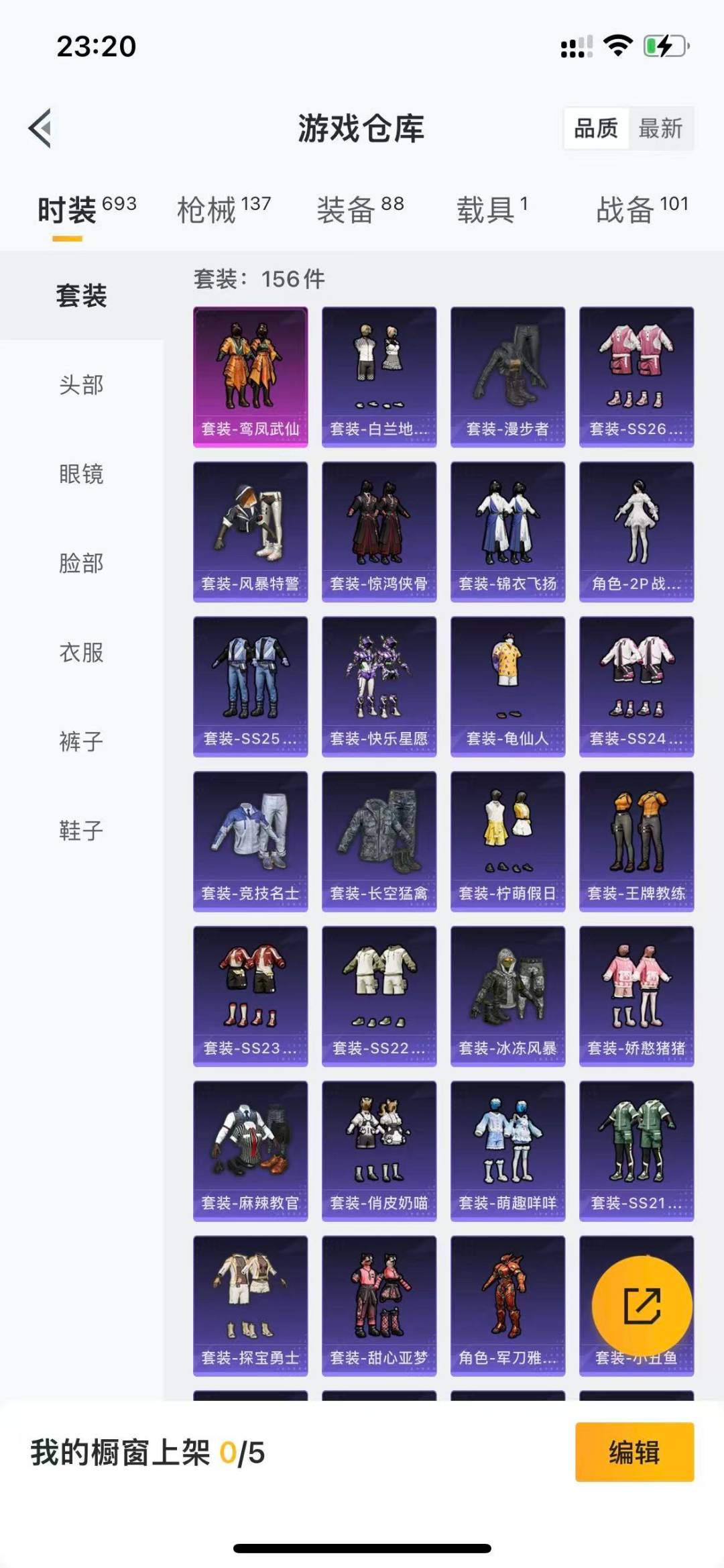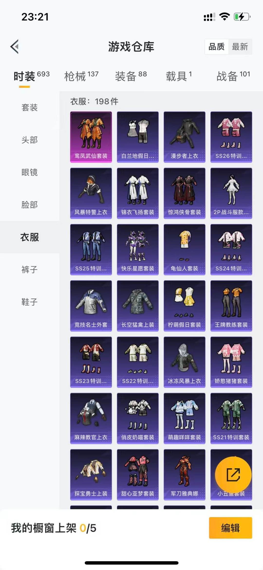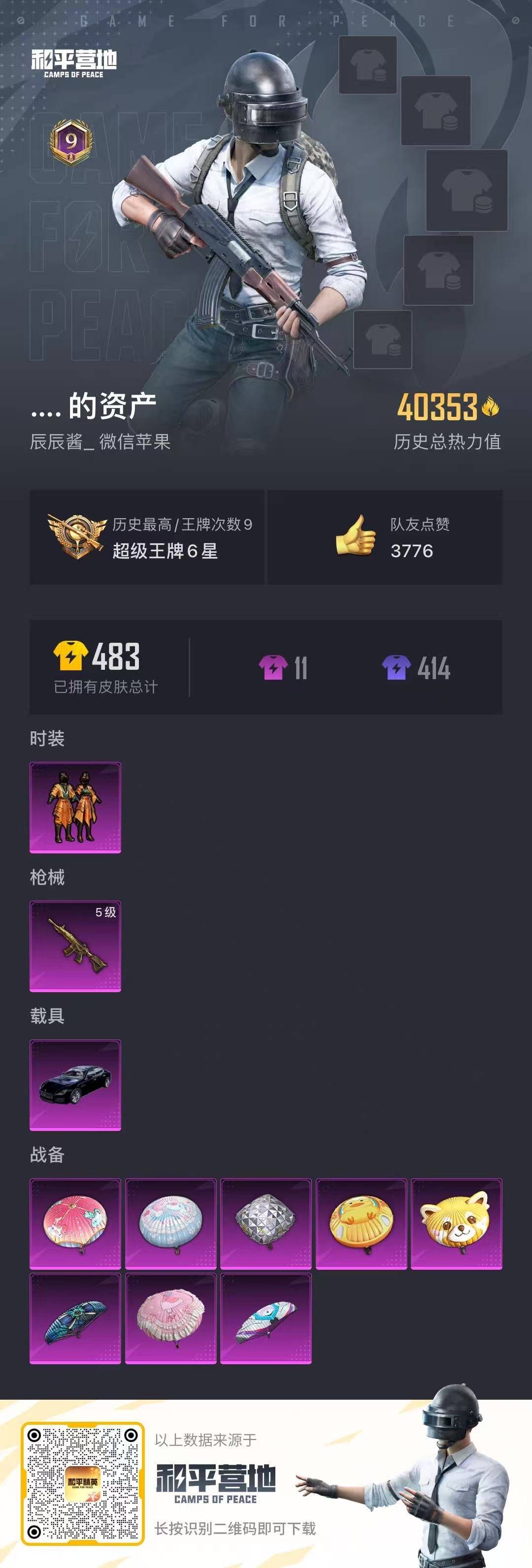 [11353788]1粉装 1特效枪 1载具 9印记 可二次 可修改实名 安全保护中 优质装备:玛莎拉蒂Quattroporte(夜幕蓝),M416五爪金龙,奇异狩猎者 热门装扮:鸾凤武仙,呆萌铁蟹,爱崽白熊 五级特效枪:五级M416-五爪金龙 紫色装扮:SS22特训,SS23特训,白兰地假日,娇憨猪猪,俏皮奶喵,萌趣咩咩,SS21特训,浪漫假日,S6赛事,SS2特训,SS3特训,SS4特训,SS5特训,人气偶像,伏击者,S4赛事,冰川特警,决胜时刻,冷焰舞者,刚毅裁决者,北国孤狼,千禧之恋,S5赛事,SS20特训,SS15特训,SS16特训,星河入梦,快乐星愿,SS13特训,SS14特训,音速流光,SS19特训,军刀雅典娜,吉莉礼服,甜心亚梦,虚音幻奏,瑞龙福将,团圆交子,SS17特训,SS18特训,阳光火鸡,都市魅力,酒红色名流,酷潮明星,野性战魂,金鼠迎春,长空猛禽,雨林探路者,雪山精英,雪鹰学院,霓虹街区,青年教官,青春校园,迎春赐吉,风暴特警,缤纷果语,耀眼新星,荣耀,蓝色守护者,虎虎生威吉莉,超能勇士,跃动心情,风行保卫者,龙腾端午,骑行爱好者,魅力单车,麻辣教官,黄色伏地魔,黄色格斗者,黄色运动,黑色伏地魔,龟仙人,熔岩游骑兵连帽夹克,朋克治安官,极地朋克,柠萌假日,格斗先锋,棕色飞行服,橘黑制服,沙漠兵团,沙漠探路者,派对绅士,海滨突袭者,深蓝色名流,滨海假日,幻影武者,圣诞大吉,坚韧舞者,夏日倾情,夏日音浪,夜莺强袭者,幻世战舞者,时尚圣诞,怒火燎原,战地名士,战地菁英,探宝勇士,湖蓝色名流,滨海厨神,绮丽涂鸦,疯狂小兔子,登山爱好者,白色伏地魔,破晓情侣,破晓战魂,破蛋小黄鸡,碟中谍A款,甜蜜告白,游猎者,福星高照,空投萌叽,竞技勇士朋克,竞技达人朋克,红色运动,甜蜜熊情侣,王牌教练,潮流先锋,牛气冲天,灰色守护者,灰色格斗者,灿烂千阳,热血骑手,燃烧卡路里,牛气满满,猛禽,特战英豪,狂战萌兔,竞技名士,2P战斗服款,惊鸿侠骨,SS24特训(SS24特训套装),SS25特训,锦衣飞扬,Alan Walker,小丑鱼,SS26特训,SS6特训,SS7特训,SS8特训,SS12特训,PEL躁动竞梦者,SS9特训,SS10特训,SS11特训,春日漫步,漫步者,冰冻风暴,弄潮海豚,传奇侦探,半糖蓝莓,爆竹金鼠 优质战备:千面幻镜降落伞,旋转彩虹降落伞,彩虹甜喵降落伞