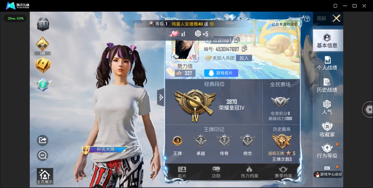 - PX_2098757-辉羽雀灵】苹果Q-YXc9192-可二次【因赛季更新游戏段位以上号为准!】 14王牌印记 历史超级王牌13星 218套装 280枪皮 【3载具】 宝马M4(圣保罗黄) 盛世惊鸿摩托车 圣域龙宝僚机 【1神装】 辉羽雀灵-初翊 (2级) 【14粉装】 狂魅哈莉 梦幻火箭 蝶舞迷情 狂花道·不知火舞 萨利娅 樱桃泡泡 星穹咏叹调 信仰神谕 幻海仙踪 天幕蝎影 数码大师 新星烈龙