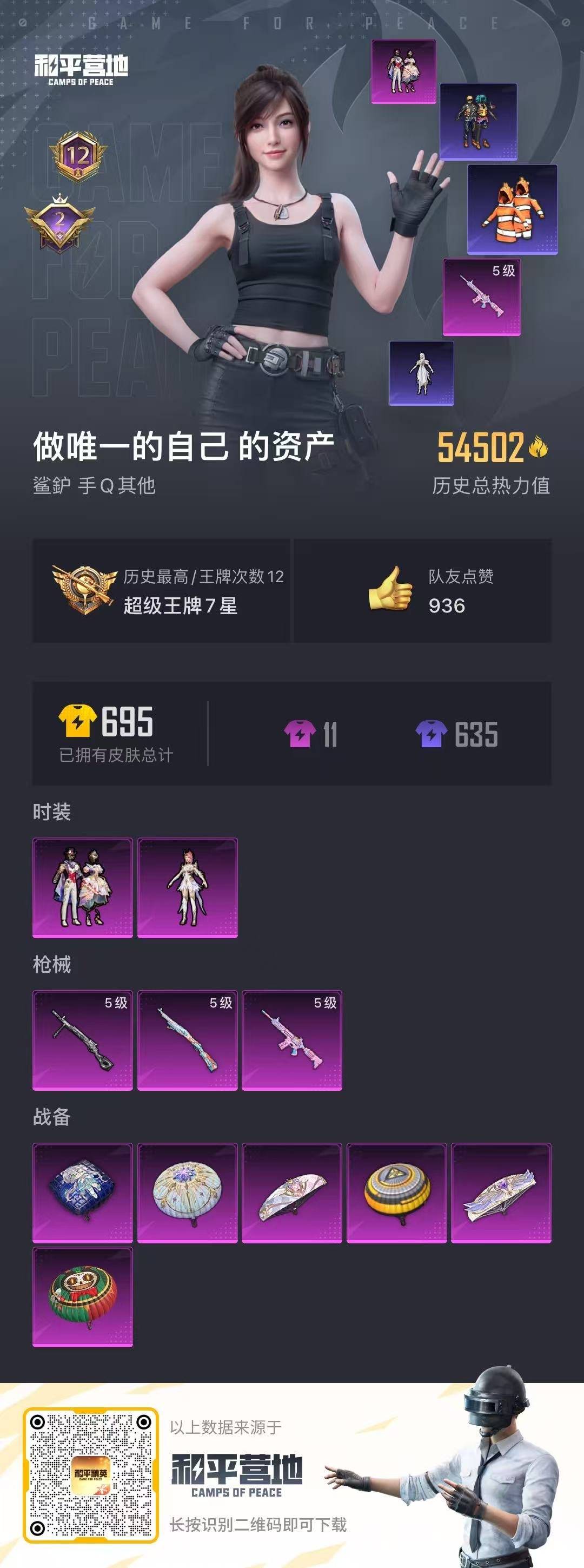 - PX_2103266- 安卓手Q-16王牌印记-8粉装-7特效枪-4载具-72236热力值-145套装-220枪皮-3卓越印记-2传奇印记 【8粉装】,梦幻火箭,新星烈龙,天穹,圣堂之誓,莲影清波,闪光银龙,锦绣火鲤,烟云彩露 【7特效枪】AKM-绿萝繁花-5级 AKM-梦之光华-7级 SCAR-L-梦幻火箭-7级 ARX-无垠阁-4级 Kar98K-巳巳如意-5级 M24-莲影清波-5级 AKS