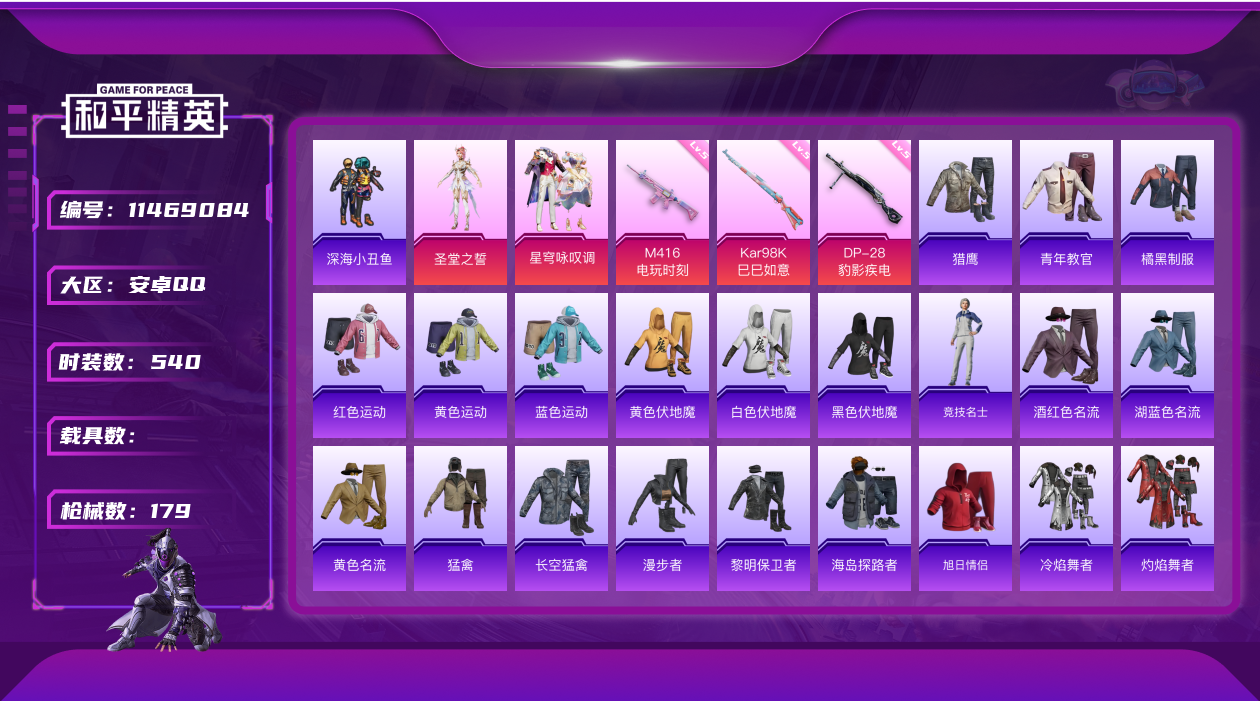 - PX_2093728- 安卓手Q-15王牌印记-有战神框-19粉装-9特效枪-5载具-95753热力值-193套装-224枪皮-0卓越印记-0传奇印记 【19粉装】,梦幻火箭,宝贝奶油派,天使彩虹糖,缤纷油彩,新星烈龙,洛天依,闪耀迪迦,极致幻想,焰龙焚天,银龙傲海,甜蜜誓约,PEL轰鸣竞梦者,黄蜂伯爵,扶摇飞仙,向日葵,心之恋语,银刃赛罗,骨龙祭渊,赛罗闪耀型 【9特效枪】AKM-炫紫旋律-7级