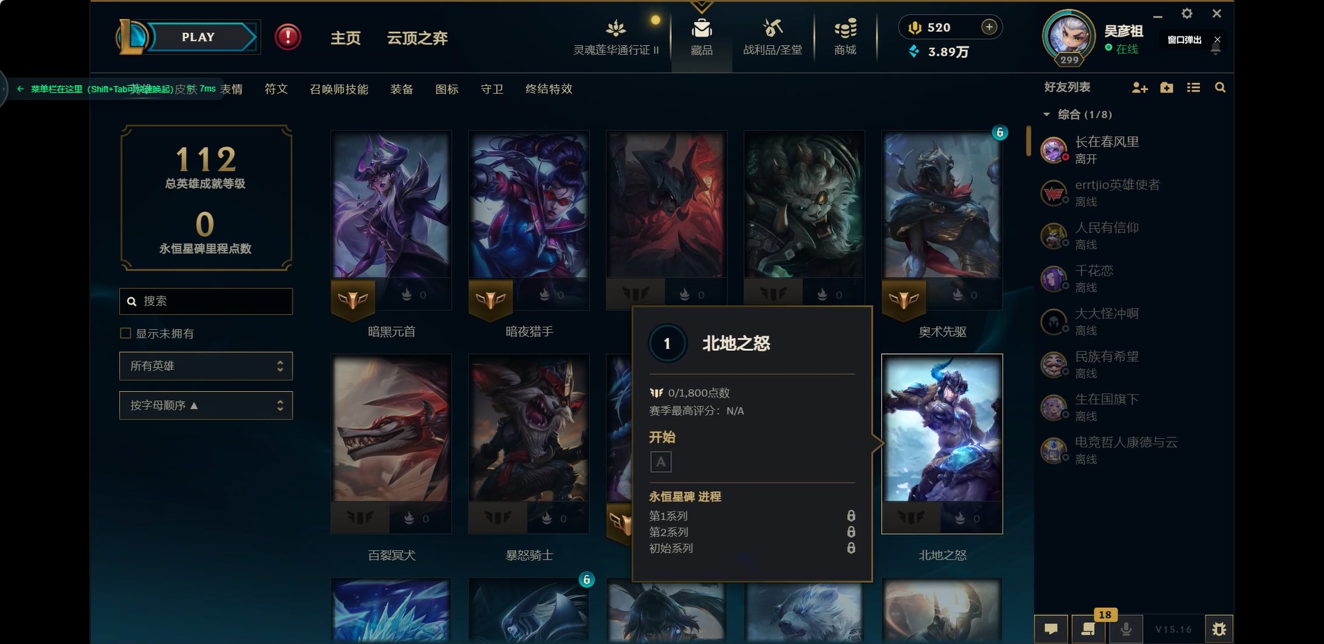 - [12031042]V7 1典藏 1传说 123英雄 112皮肤 可修改实名 优质装备:九霄神辉(木兰典藏),山海·琳琅生(小乔年限),涂山容容 珍宝阁皮:胡桃夹子 限定皮:五谷丰年,李小龙 史诗皮:龙之律动,百相守梦-周瑜,百相守梦-黄忠,织梦人,苍穹之光,黄金分割率,匿光破解者,偶像歌手,电玩·爆裂旋风,龙骑士(小龙虾),乱世虎臣,节奏热浪,水果甜心,时之奇旅-安琪拉,德古拉伯爵,暗隐猎兽者,鬼剑武藏,乘风破浪,鹰眼统帅,魅力维加斯,黎明之约