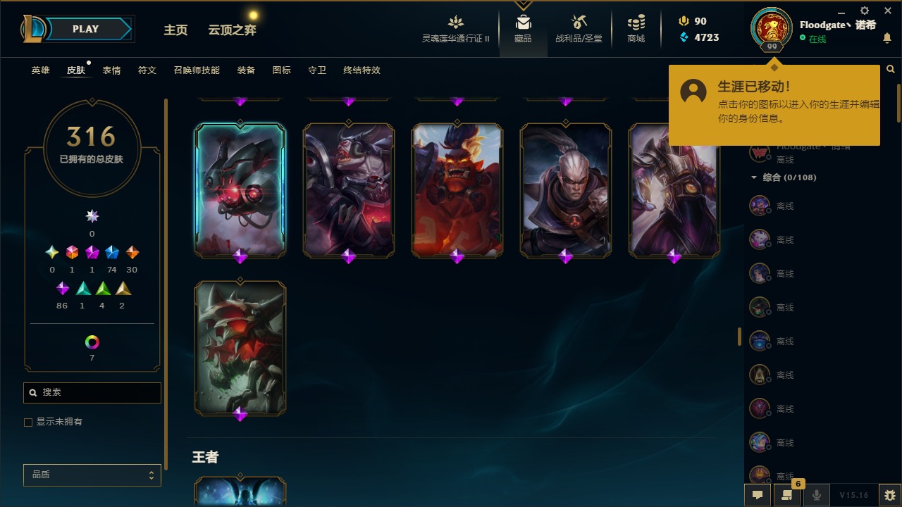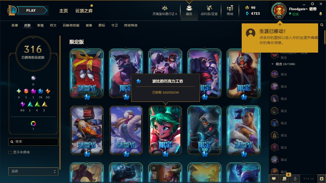 [11251685]可二次 可修改实名 1终极 1神话 74限定 30传说 86史诗 316皮肤 7炫彩 131英雄 皮肤:冰雪游神 巴德,永恒之森 巴德,冠军之矛 卡莉丝塔,暗星 锤石,腥红之月 锤石,冠军典狱长 锤石,深渊恐惧 锤石,SKT T1 阿兹尔,幽冥领主 阿兹尔,海皇姬 娜美,河水之灵 娜美,锦鲤 娜美,胜利之剑 亚托克斯,狂鲨 亚托克斯,霸天剑魔 亚托克斯,源计划:裁决 蔚,源计划:自由 艾克,任性学霸 艾克,SKT T1 劫,职业杀手 卢锡安,海牛大大 塔姆,神龙烈焰 金克丝,圣诞老人 布隆,布隆·狮心,猛虎 布隆,源代码 卡蜜尔,苍穹之光 维克兹,战地机甲 维克兹,黑夜使者 亚索,腥红之月 亚索,源计划:风 亚索,西部牛仔 亚索,邪恶魔人 扎克,SKT T1 婕拉,野火之藤 婕拉,冰雪女神 辛德拉,亚特兰蒂斯 辛德拉,死亡之鹰 奎因,勇敢的心 奎因,血石妖后 丽桑卓,天启骑士 杰斯,全金属狂潮 杰斯,热血班长 德莱厄斯,灌篮高手 德莱厄斯,勇敢的心 德莱厄斯,生化骑士 德莱厄斯
