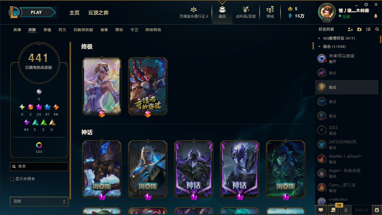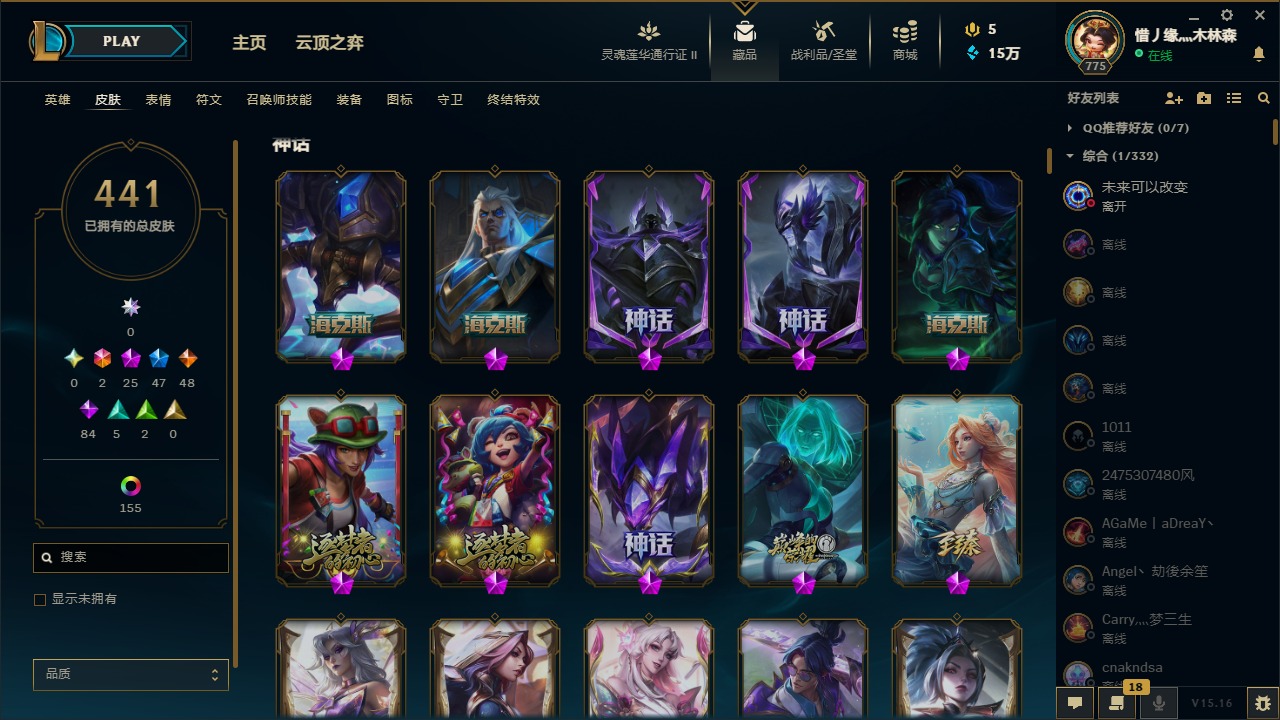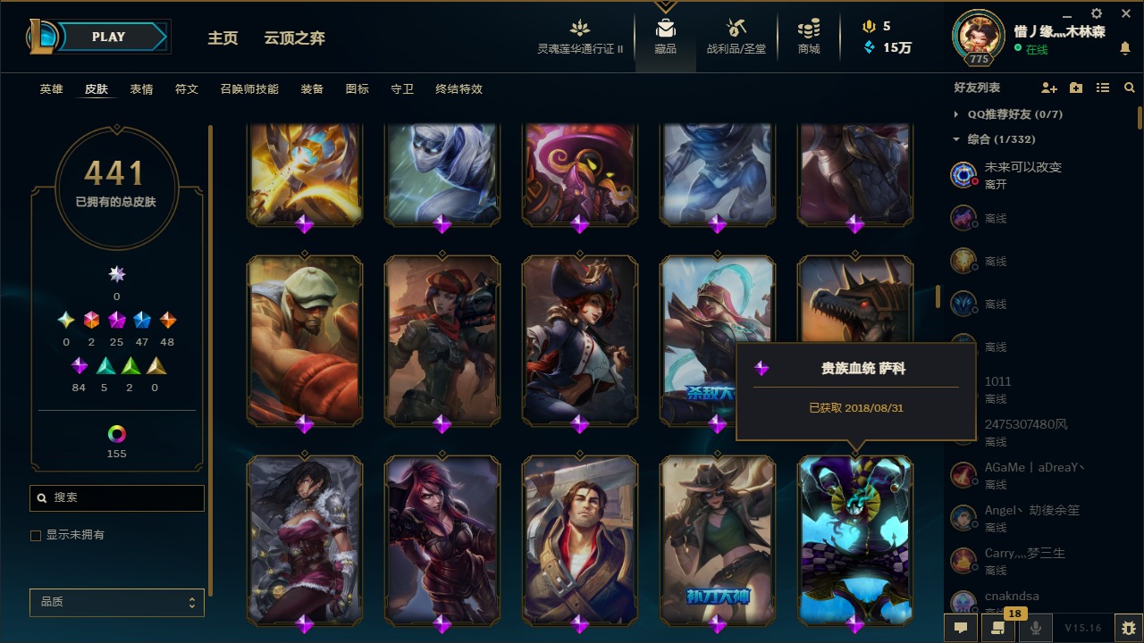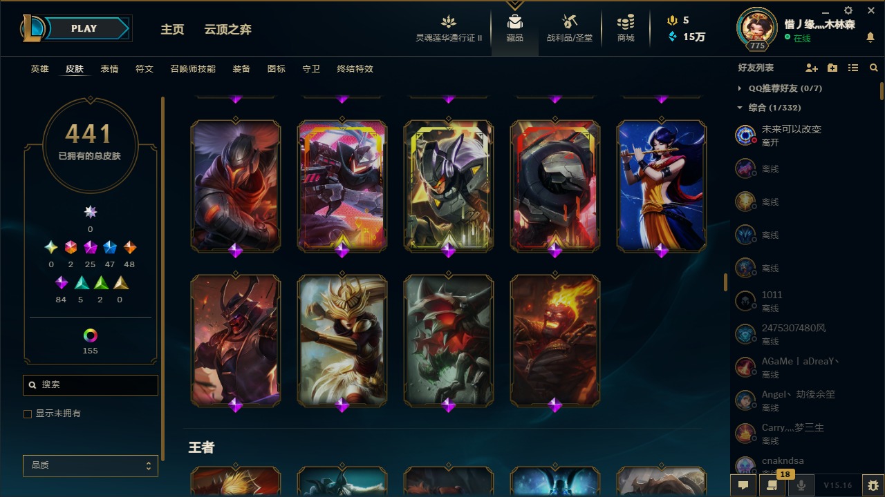 [11445405]可二次 可修改实名 2终极 25神话 12臻彩 46限定 48传说 84史诗 441皮肤 186炫彩 171英雄 白银 皮肤:天龙之子 斯莫德,至高天 奎桑提,咖啡甜心 格温,心之钢 瑟提,灵魂莲华 瑟提,至臻 心之钢 永恩,黎明使者 永恩,至高天 薇古丝,黎明使者 薇古丝,至高天 派克,女帝 芮尔,星之守护者 妮蔻,灰烬杀手 塞拉斯,弗雷尔卓德 塞拉斯,绝息圣堂 霞,暮星之羽 霞,绝息圣堂 洛,星之守护者 洛,冠军之矛 卡莉丝塔,灵魂莲华 艾翁,古神 艾翁,灌篮高手 艾翁,水瓶星神 俄洛伊,虚空使者 俄洛伊,至臻 未来战士 锤石 (2022),至臻 未来战士 锤石,暗星 锤石,冠军典狱长 锤石,斗魂觉醒 莎弥拉,幽冥领主 阿兹尔,太空律动 “魔音海妖” 娜美,源代码 娜美,鲛妮座人 娜美,DRX 亚托克斯,奥德赛 亚托克斯,腥红之月 亚托克斯,虎痴之拳 蔚,炼狱魔女 蔚,女帝 奇亚娜,真实伤害 奇亚娜,至臻 星之守护者 艾克,任性学霸 艾克,爵士 克烈,玉剑传说 无劫,灵能特工 劫,天煞 劫,源计划:阴 劫,冲击之刃 劫,德玛西亚警官 卢锡安,西部魔影 卢锡安,源计划:雷 卢锡安