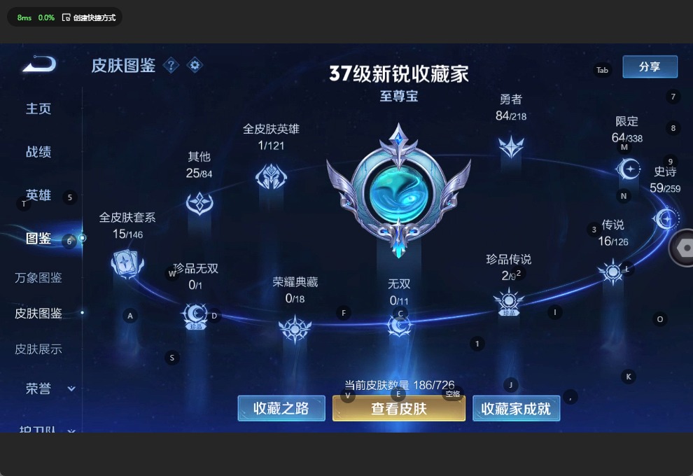- [11349089]V8 1典藏 21传说 124英雄 312皮肤 可修改实名 优质装备:无限飓风号(高达),黄金狮子座,黄金射手座,云鹰飞将(小将军),绛天战甲(鸡嘴战神),黄金白羊座,猫影幻舞,久胜战神,炽阳神光,一念神魔,地狱之眼,李逍遥,淬星耀世,超时空战士-狄仁杰,电玩·雷克斯,惊梅引 传说皮:乘龙·淬吴钩(孙策年限) 珍宝阁皮:优雅恋人,蔷薇恋人,玩趣恶龙 限定皮:愿照·山河定(司空震年限),鸣野蒿,遇见飞天,高山流水,诗剑行,五谷丰年,武圣,逐梦之星,天狼绘梦者,李小龙,逐梦之影,猪悟能,云端筑梦师 史诗皮:化蝶舞,星界战将,龙之律动,茶境仙,破空之剑,战舞者,琥珀纪元伽罗,蔬乡物语(鲁班七号),百相守梦-百里守约,百相守梦-黄忠,紫霞仙子,苍穹之光,黄金分割率,特工魅影,永昼,江河有灵,末日机甲-莱西奥,鹤归松栖(赵怀真),魅语,百解令(蒙犽),高渐离燃音魔法,蒙恬荣光圣徽,冰冠公主,青蛇,偶像歌手,电玩·爆裂旋风,百相守梦(刘备),末日机甲-吕布,猫狗日记-孙策,猫狗日记-大乔,乱世虎臣,节奏热浪,修罗,女仆咖啡,摇滚巨星,水果甜心,绅士熊喵,星夜王子,心灵骇客,功夫厨神,德古拉伯爵,暗隐猎兽者,幽灵船长,鬼剑武藏,暗渊魔法,心灵战警,乐园奇幻夜,天秀·启明,舞动绿茵,地狱岩魂,纤云弄巧,繁星吟游(呼啦呼啦),缤纷独角兽,乘风破浪,逐浪之夏,月团寄思,水晶猎龙者,曙光守护者,金属风暴,原初追逐者,圣诞狂欢,鹰眼统帅,魅力维加斯,黎明之约,雪上飞焰,滕王阁序,无心,未来纪元-赵云