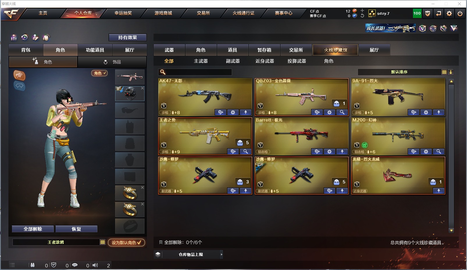 [10295634]可二次 可修改实名 9V武器 2皮肤 可排位 新锐 武器:Barrett-极光,9A91-烈火,AK47-无影,QBZ03-金色蔷薇,M200-幻神,沙鹰-修罗,王者之势-觉醒版,龙啸-烈火龙威