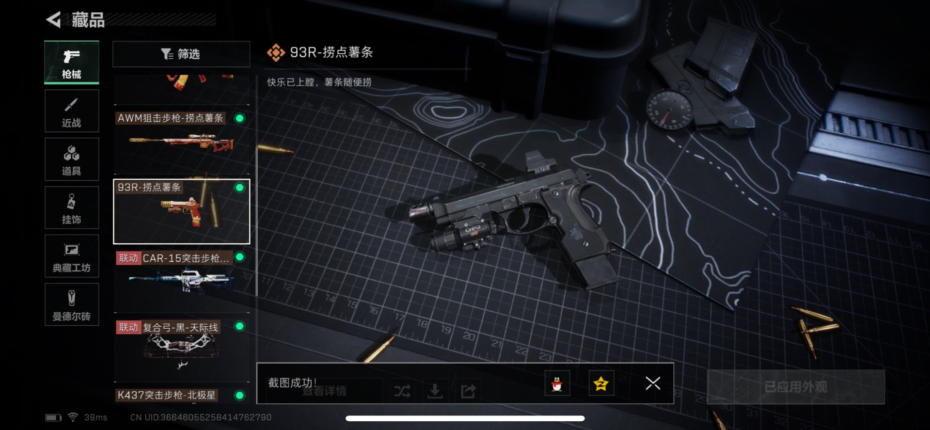 [11445440]总资产:354.3M 1近战传说 12传说枪械 哈夫币:1.466K 顶级安全箱(3×3)9.15号到期 可二次 可修改实名 优质装备:近战-北极星,顶级安全箱(3x3) 烽火地带段位:黑鹰 全面战场段位:列兵 传说武器皮肤:SMG45冲锋枪-骑士,M4A1突击步枪-阿米娅,CAR-15突击步枪-阿米娅,复合弓-黑-天际线,AWM狙击步枪-捞点薯条,QCQ171冲锋枪-北极星,腾龙突击步枪-捞点薯条,93R-捞点薯条,勇士冲锋枪-能天使-午夜邮差,725双管霰弹枪-送葬人-无题密令,K437突击步枪-北极星