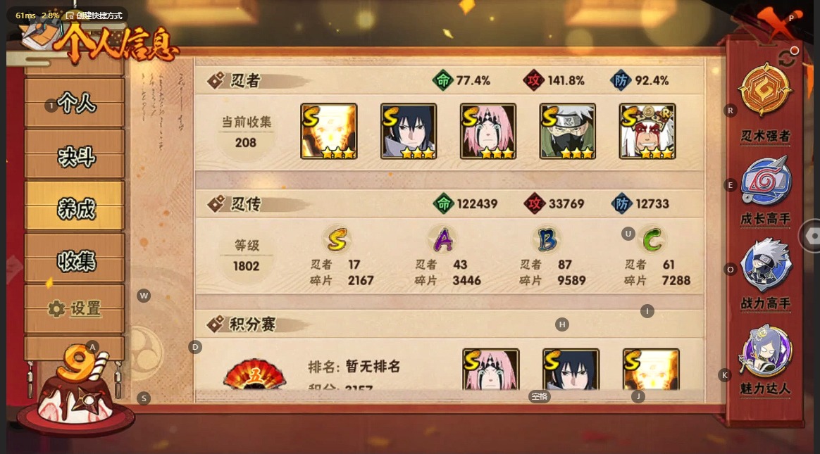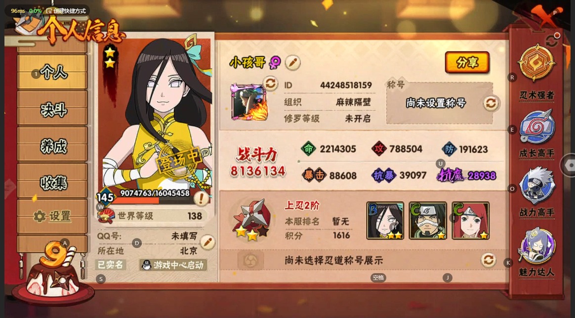 [11445395]V12 17S忍 43A忍 17通灵 813.6W战力 可二次 可修改实名 优质装备:千手柱间「秽土转生」,宇智波鼬「秽土转生」,迈特凯「死门」,漩涡鸣人 「九喇嘛连结」,春野樱 「忍界大战」,宇智波佐助「永恒万花筒」,千手柱间·木叶创立,大筒木桃式,宇智波止水「须佐能乎」,旗木卡卡西「须佐能乎」,大筒木舍人 「最终章」,自来也 「传说中的三忍」 S级忍者:自来也 「舞之豪杰」,宇智波鼬 「须佐能乎」,佩恩「天道」,波风水门,大蛇丸