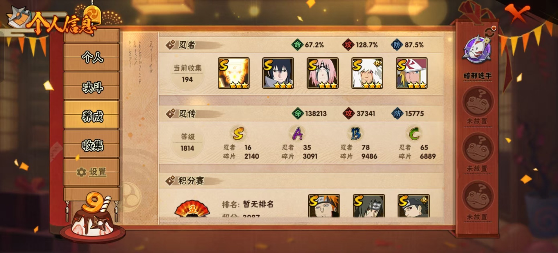 [11296777]V11 16S忍 1012.3W战力 可二次 可修改实名 S级忍者:宇智波止水「须佐能乎」,大筒木桃式,宇智波斑「秽土转生·解」,千手柱间·木叶创立,宇智波佐助「永恒万花筒」,神秘面具男 「红夜之刃」,春野樱 「忍界大战」,大筒木金式「博人传」,漩涡鸣人 「九喇嘛连结」,自来也 「舞之豪杰」,“宇智波斑” 「白面具」,千手扉间「秽土转生」,长门「秽土转生」,宇智波鼬 「须佐能乎」,佩恩「天道」,波风水门