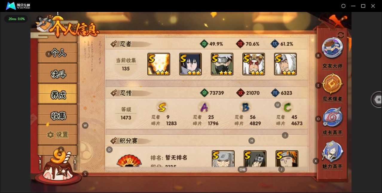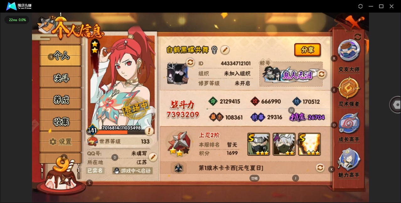 [11446266]V8 9S忍 25A忍 17通灵 739.3W战力 可二次 优质装备:千手扉间「秽土转生」,漩涡鸣人 「九喇嘛连结」,宇智波佐助「永恒万花筒」,旗木卡卡西「须佐能乎」 S级忍者:自来也 「舞之豪杰」,宇智波鼬 「须佐能乎」,佩恩「天道」,波风水门,自来也