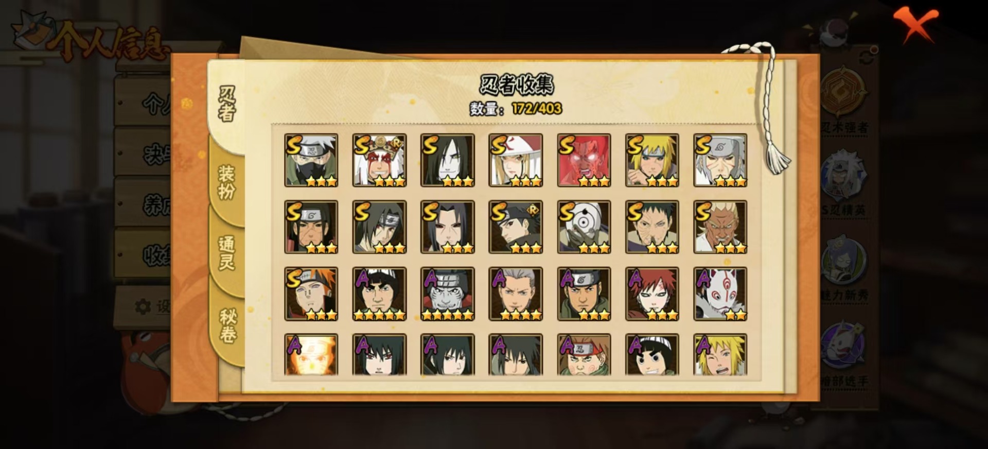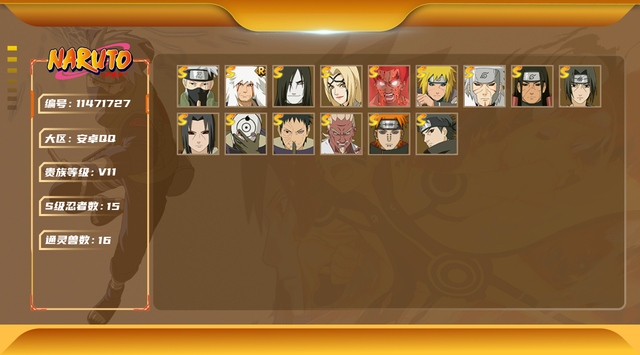 [11471727]V11 15S忍 33A忍 16通灵 698.4W战力 可二次 可修改实名 优质装备:千手柱间「秽土转生」,宇智波鼬「秽土转生」,千手扉间「秽土转生」,纲手「百豪」,波风水门「秽土转生」,迈特凯「死门」,宇智波带土 「忍界大战」,“宇智波斑” 「白面具」,艾「忍界大战」,宇智波止水「须佐能乎」,旗木卡卡西「须佐能乎」 S级忍者:自来也 「舞之豪杰」,宇智波鼬 「须佐能乎」,佩恩「天道」,大蛇丸