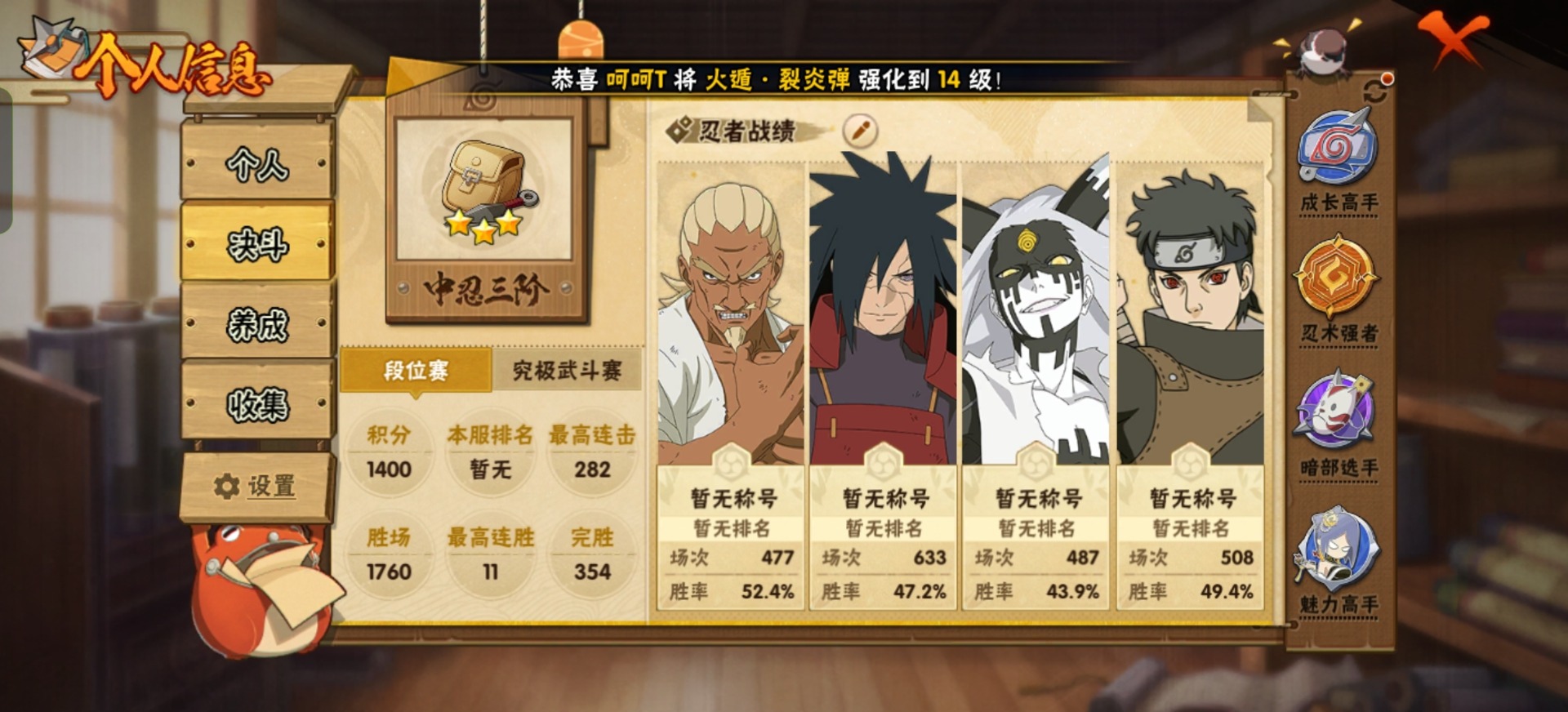 [11467651]V10 10S忍 22A忍 14通灵 391.8W战力 可二次 可修改实名 优质装备:宇智波斑「秽土转生·解」,大筒木桃式,艾「忍界大战」,宇智波止水「须佐能乎」,旗木卡卡西「须佐能乎」 S级忍者:自来也 「舞之豪杰」,宇智波鼬 「须佐能乎」,佩恩「天道」,波风水门,大蛇丸