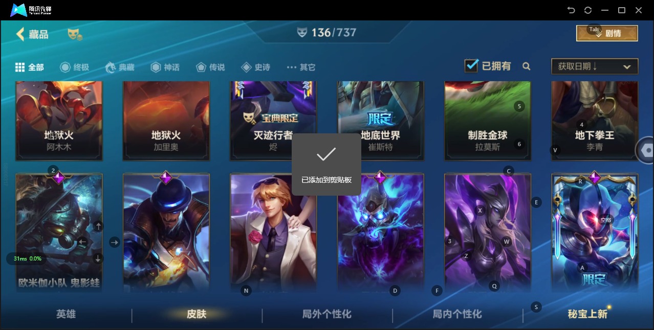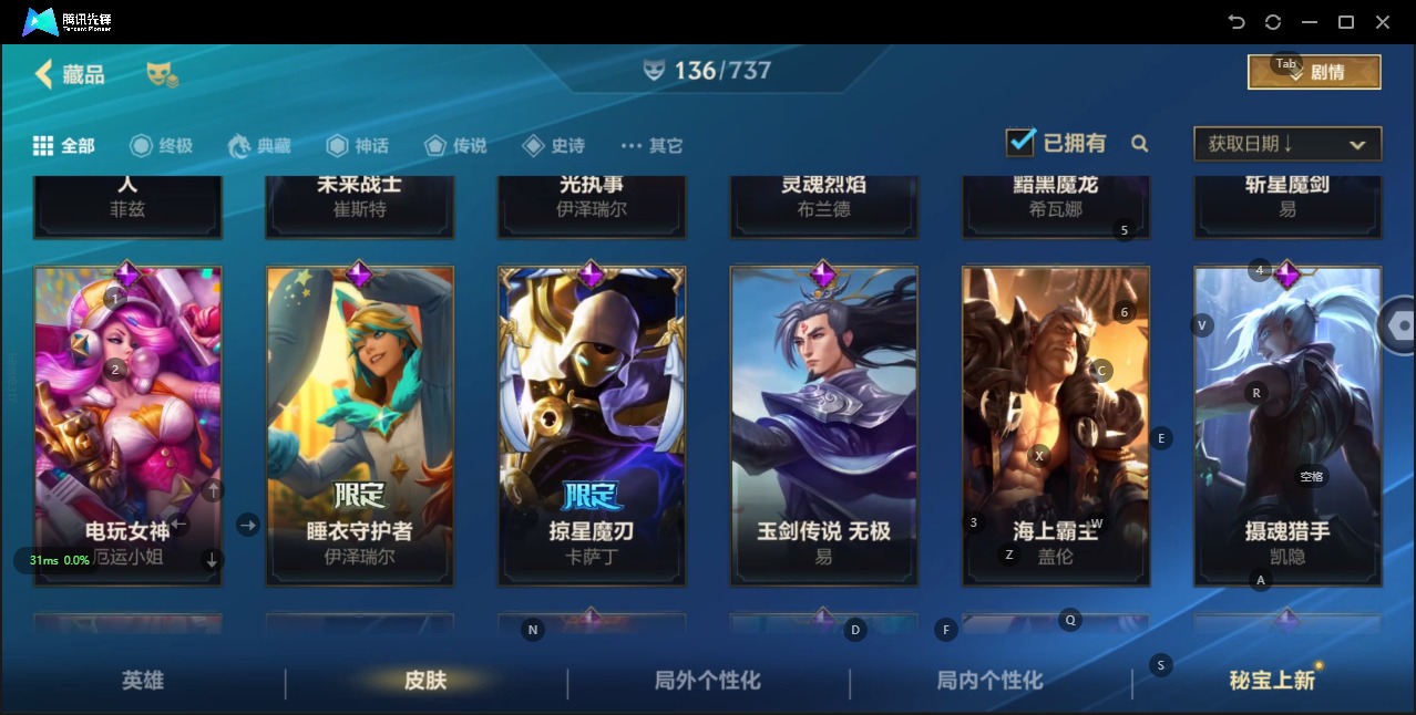 - PX_2094905-贵族8/皮肤322/典藏1/传说20/史诗104/英雄125/鸣剑曳影/优雅恋人/女武神/特工战影/地狱火/末日机甲女/李白凤求凰/仲夏夜之梦/冠军飞将/云霓雀翎/太华/零号赤焰/启明星使/炽阳神光/时雨天司/祈雪灵祝/默契交锋男/异界灵契/寅虎瑞焰/山海琳琅生/鹤归松栖女/桑启鸣野蒿/王昭君映山客/澜愿照九州拓/狰/大乔绒语心约/姜子牙天穹之誓/狄仁杰阴阳师/山海琳琅生/赵