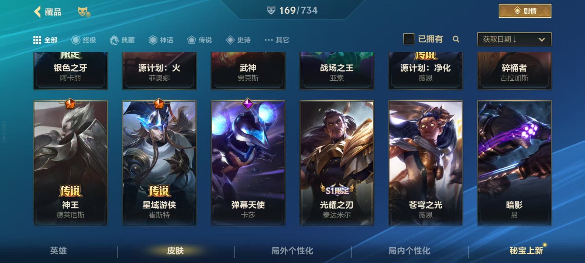 [11297499]可二次 可修改实名 1神话 28传说 64史诗 169皮肤 128英雄 黄金 皮肤:崔斯特-怪诞童话,崔斯特-王牌舰长,崔斯特-星域游侠,崔斯特-探戈灵魂,崔斯特-逍遥赌侠,德莱文-斗魂无双,德莱文-绯金战斧,德莱文-破败军团,德莱文-德莱德莱,德莱文-金牌主播,德莱厄斯-福牛守护者,德莱厄斯-西部魔影,德莱厄斯-热血班长,德莱厄斯-神王,德莱厄斯-灌篮高手,内瑟斯-战地机甲,内瑟斯-单身贵族,内瑟斯-创世魔神,内瑟斯-炼狱魔犬,薇恩-光明哨兵,薇恩-猎龙勇士,薇恩-源计划:净化,薇恩-苍穹之光,伊泽瑞尔-心之钢,伊泽瑞尔-冰川勇者,伊泽瑞尔-战斗学院,伊泽瑞尔-光执事,韦鲁斯-迅箭,韦鲁斯-暗星,韦鲁斯-苍穹之光,韦鲁斯-白色死神,吉格斯-龙冕神策,吉格斯-科学狂人,吉格斯-泳池派对,吉格斯-奥术大师,艾希-王牌司令,艾希-黑暗骑士,艾希-女皇,艾希-极地女神,蕾欧娜-月蚀骑士,蕾欧娜-日蚀骑士,蕾欧娜-泳池派对,蕾欧娜-源计划:山,蔚-双城之战,蔚-女警官,蔚-铁拳执事,蔚-炼狱魔女,卡莎-星之守护者,卡莎-K/DA ALL OUT,卡莎-弹幕天使,烬-龙冕异士,烬-暗星尊,烬-源计划:升华,嘉文四世-王牌上将,嘉文四世-福牛守护者,嘉文四世-暗星,易-神龙尊者 驭风啸龙,易-源计划:林,易-暗影,亚索-战场之王,亚索-西部牛仔,亚索-黑夜使者,菲奥娜-绯金丽刃,菲奥娜-皇家守卫,菲奥娜-源计划:火,杰斯-神奇先驱,杰斯-光明之锤,杰斯-蔷薇绅士,凯南-超武乾坤:电弧,凯南-超级英雄,凯南-刺客信条,雷克顿-黯晶巨鳄,雷克顿-源计划:泯灭,雷克顿-鳄霸,娜美-绯金鲛灵,娜美-玉剑传说 寒潭夭夭,娜美-鲛妮座人,锐雯-光明哨兵,锐雯-玉剑传说 武剑仙,锐雯-电玩勇者,金克丝-双城之战,金克丝-星之守护者,金克丝-光耀之芒,艾瑞莉娅-斗魂无双,艾瑞莉娅-光明哨兵,艾瑞莉娅-冰霜之刃,黛安娜-光明哨兵,黛安娜-无限烈焰,黛安娜-暗黑女武神,加里奥-地狱火,加里奥-风执事,加里奥-地狱之门卫士,奥拉夫-王牌勇将,奥拉夫-猎龙勇士,奥拉夫-黑暗骑士,拉莫斯-制胜金球,拉莫斯-熔火之心,阿利斯塔-福牛守护者,阿利斯塔-哞利斯塔,盖伦-神王,盖伦-钢铁军团,亚托克斯-海魔至尊,亚托克斯-霸天剑魔,希瓦娜-银河魔装机神,希瓦娜-冰霜亚龙,阿木木-小小骑士,阿木木-惊悚派对