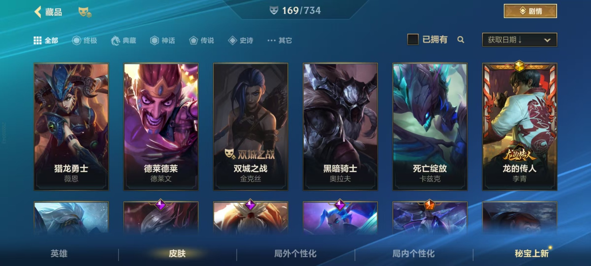 - PX_1988850-贵族4/皮肤133/传说3/史诗24/英雄122/蔷薇恋人/玩趣恶龙/特工战影/齐天大圣/桑启鸣野蒿/云缨幻光神枪/狄仁杰阴阳师/蔷薇恋人/庄周高山流水/玩趣恶龙/元歌无心/万华元夜/沙漠行僧/项羽海滩派对/醍醐杖/演武夺筹/金庭之子/齐天大圣/云中旅人/驱傩正仪/原初探秘者/鬼谷子五谷丰年/千军破阵/大漠名商/疑决卦/李小龙/擒涛扼浪/云中君纤云弄巧/梁祝/探海日志/海盐诗