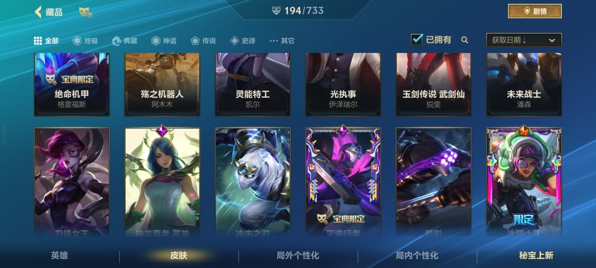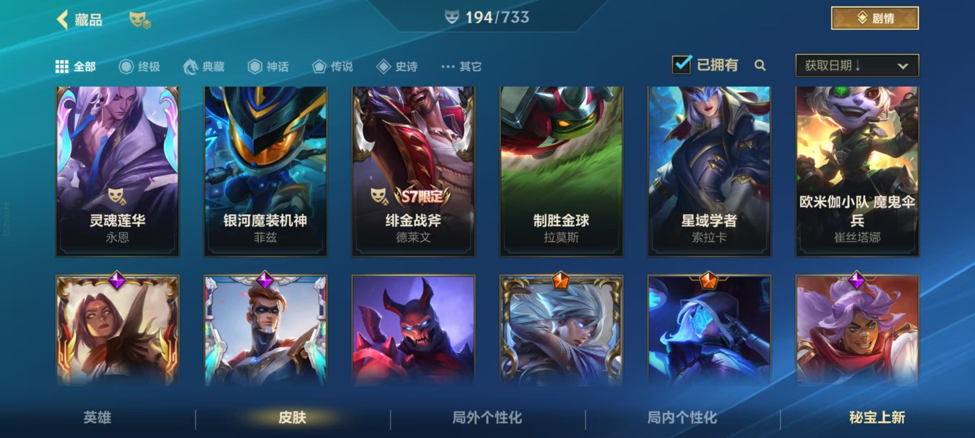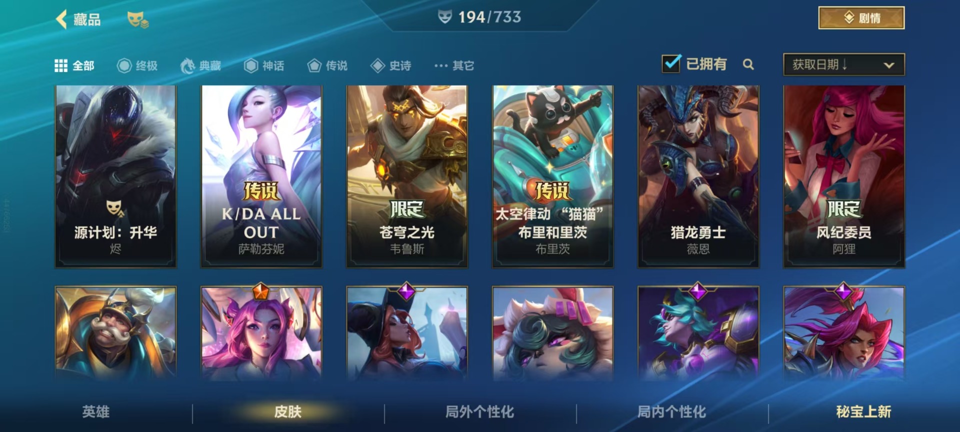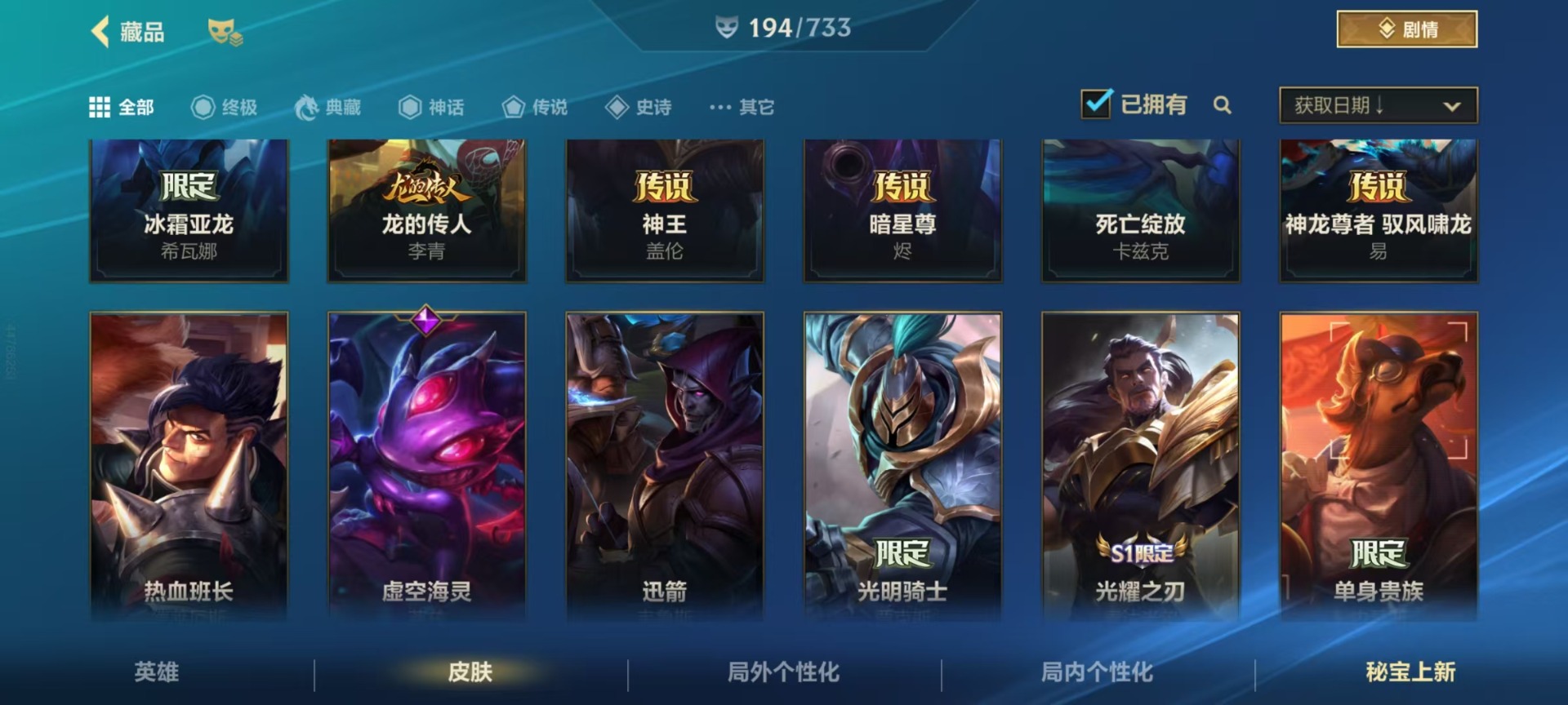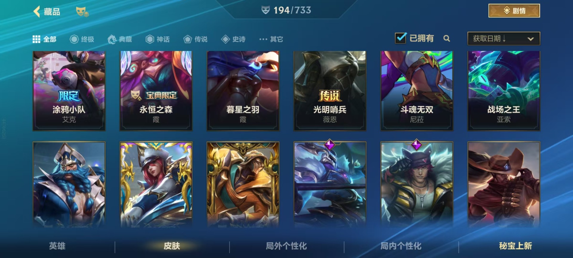 - [11911472]2终极 11神话 42限定 29传说 69史诗 335皮肤 166炫彩 171英雄 可二次 可修改实名 优质装备:至臻 腥红之月 亚托克斯,至臻 星之守护者 妮寇,至臻 太空律动 节奏幻师 璐璐,至臻 女帝 黛安娜,至臻 真实伤害 亚索,源代码 乐芙兰,防爆天使 凯尔,暗影 沃里克,都铎王朝 图奇,防爆士兵 炼金,冠军之箭 艾希,惊悚派对 阿木木,克格汪 克格莫,至臻 星之守护者 艾克,灵魂守卫,DJ-娑娜,至臻 海珀利安小队 迦娜,至臻 至高天 奎桑提,至臻 星之守护者 妮蔻,山海绘卷 科加斯 朱红,灰烬守护者 慎 余烬觉醒,西部天使 赛娜 神选天使长,无畏骑士 瑟庄妮 赤子初心,可爱可爱粉红红 布里茨,星之守护者 金克丝 黑洞,咖啡甜心 璐璐 焦糖布丁,净雪之月 莫甘娜 冬虹,咖啡甜心 格温 酒醉樱桃,十五周年纪念 希维尔,灌篮高手 德莱厄斯 金色神话,魔女 阿卡丽 虚荣 海克斯:摄魂 薇恩 限定:玉剑传说 舞龙卫,玉剑传说 翼剑仙,双城之战2 微光实验室 辛吉德 情人节限定:觅心女王 寒冰 赛季限定皮:胜利凤凰 艾尼维亚,胜利之运 崔斯特,胜利剑圣 易,胜利女神 娑娜,胜利巨口 克格莫,胜利之王 泰达米尔,胜利女神 瑟庄妮 冠军限定系列:S1FNC 酒桶,S1FNC 迦娜,S1FNC 卡尔萨斯,S1FNC 库奇,S5 SKT T1 滑板鞋 冰雪节限定:冰雪女神 辛德拉,寒冬精灵 璐璐,魄罗骑士 瑟庄妮,圣诞玩偶 波比,冰雪节 茂凯,邪恶圣诞老人 维迦,幸福女神 乐芙兰,雪球也能爆炸 吉格斯 泳池派对:泳池派对 菲奥娜,泳池派对 黑默丁格 万圣节限定:鬼影重重 魔腾,魅惑女巫 莫甘娜,无头骑士 人马,小恶魔 菲兹 年限:点心宝贝 阿木木,天龙之子 斯莫德,羊年 金克丝,猴年 莫甘娜,福牛守护者 安妮