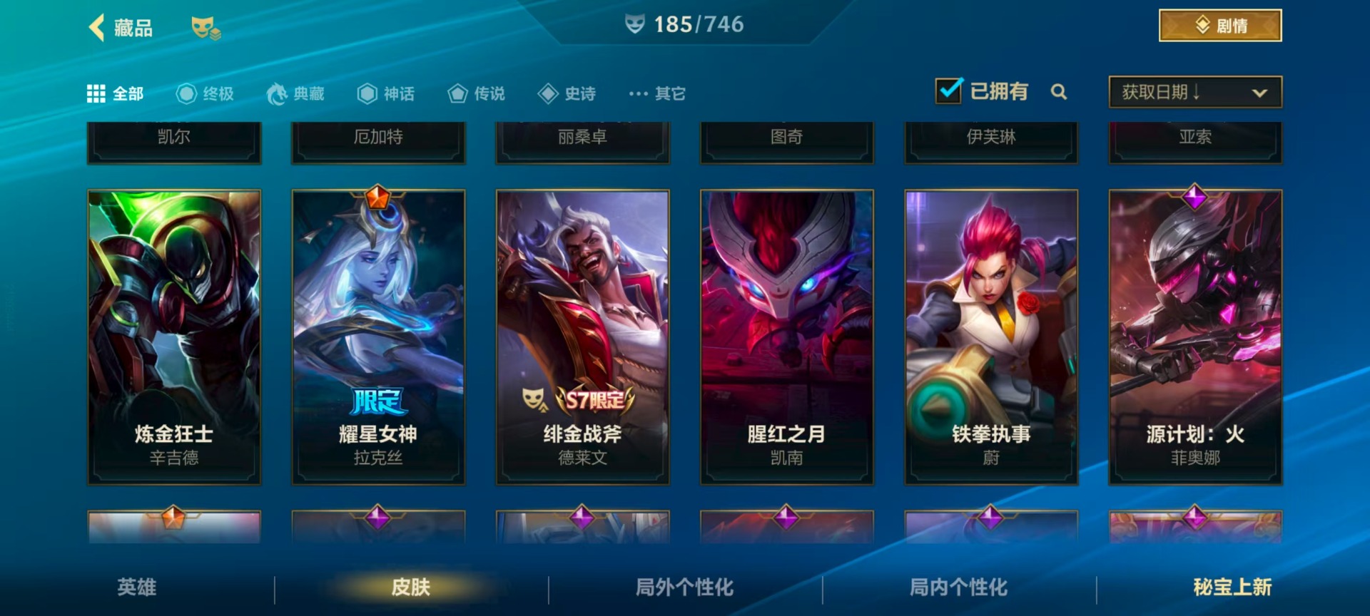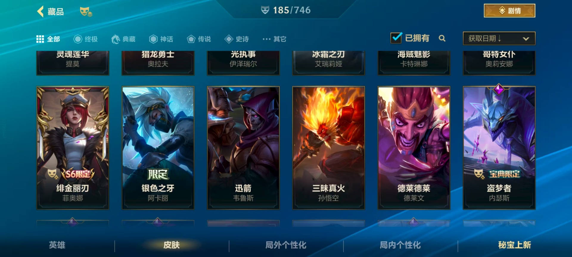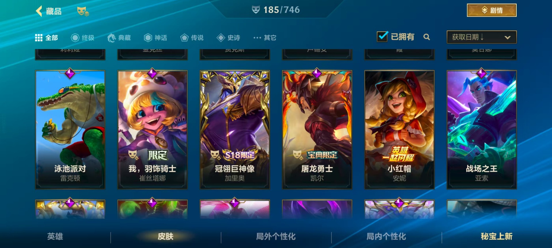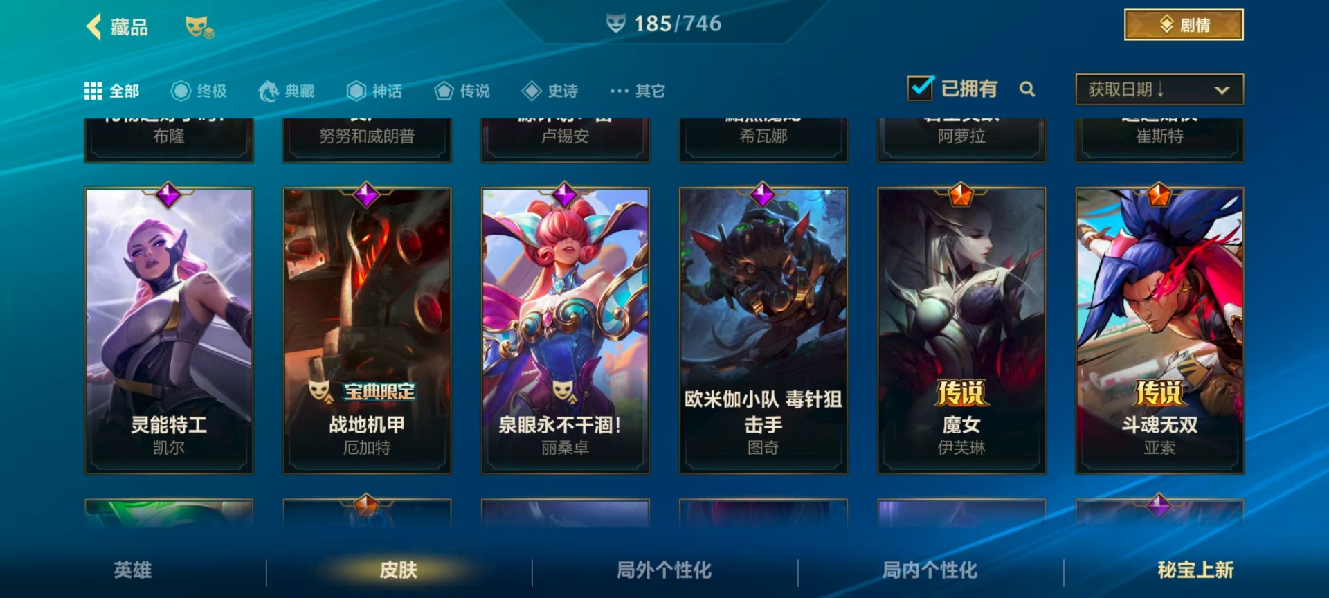 - [11445839]V5 2传说 119英雄 99皮肤 可修改实名 优质装备:地狱火,地狱之眼 珍宝阁皮:蔷薇恋人 限定皮:至尊宝,高山流水,五谷丰年,梁祝,李小龙 史诗皮:白龙吟,永昼,末日机甲-吕布,水果甜心,功夫厨神,暗隐猎兽者,幽灵船长,鬼剑武藏,水晶猎龙者,金属风暴,鹰眼统帅,魅力维加斯