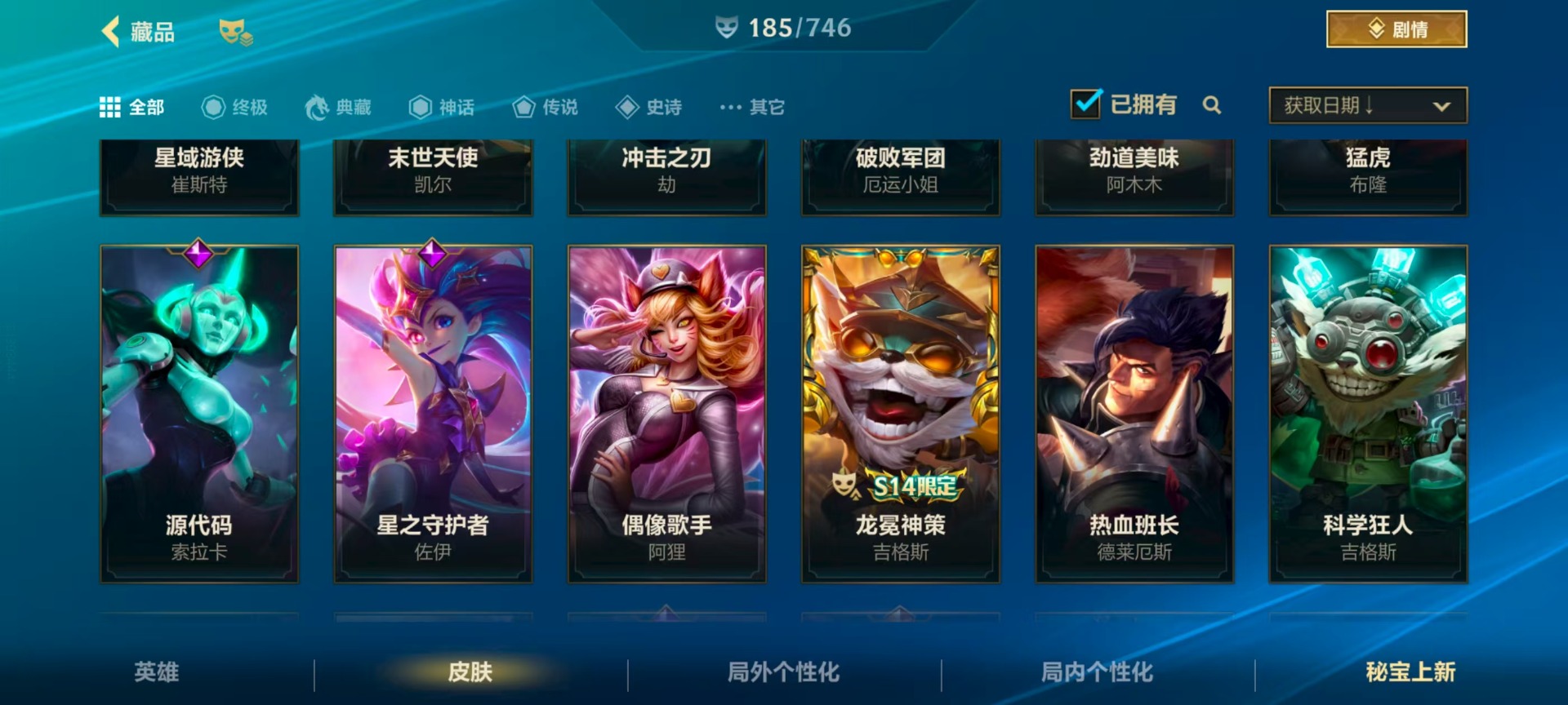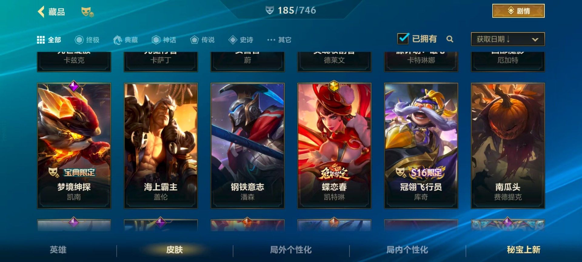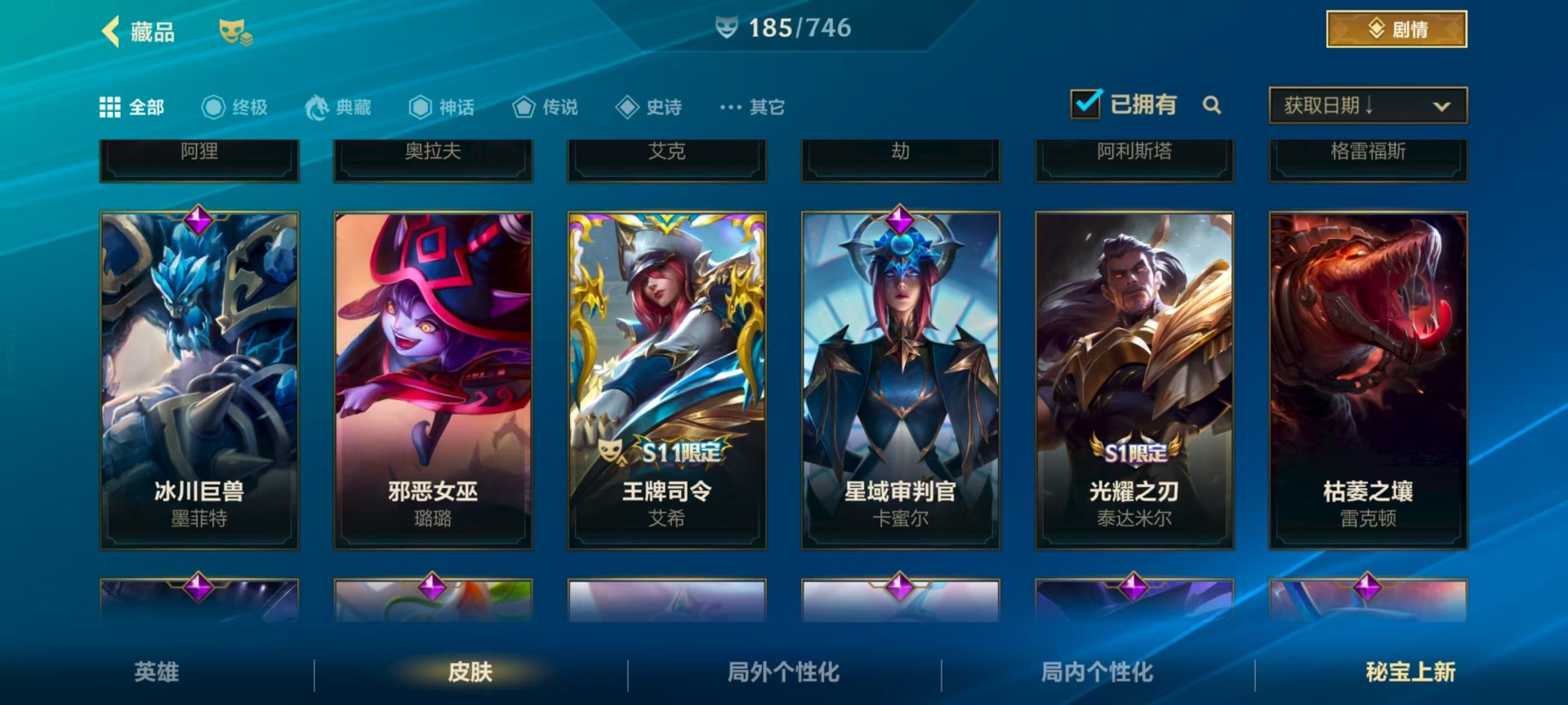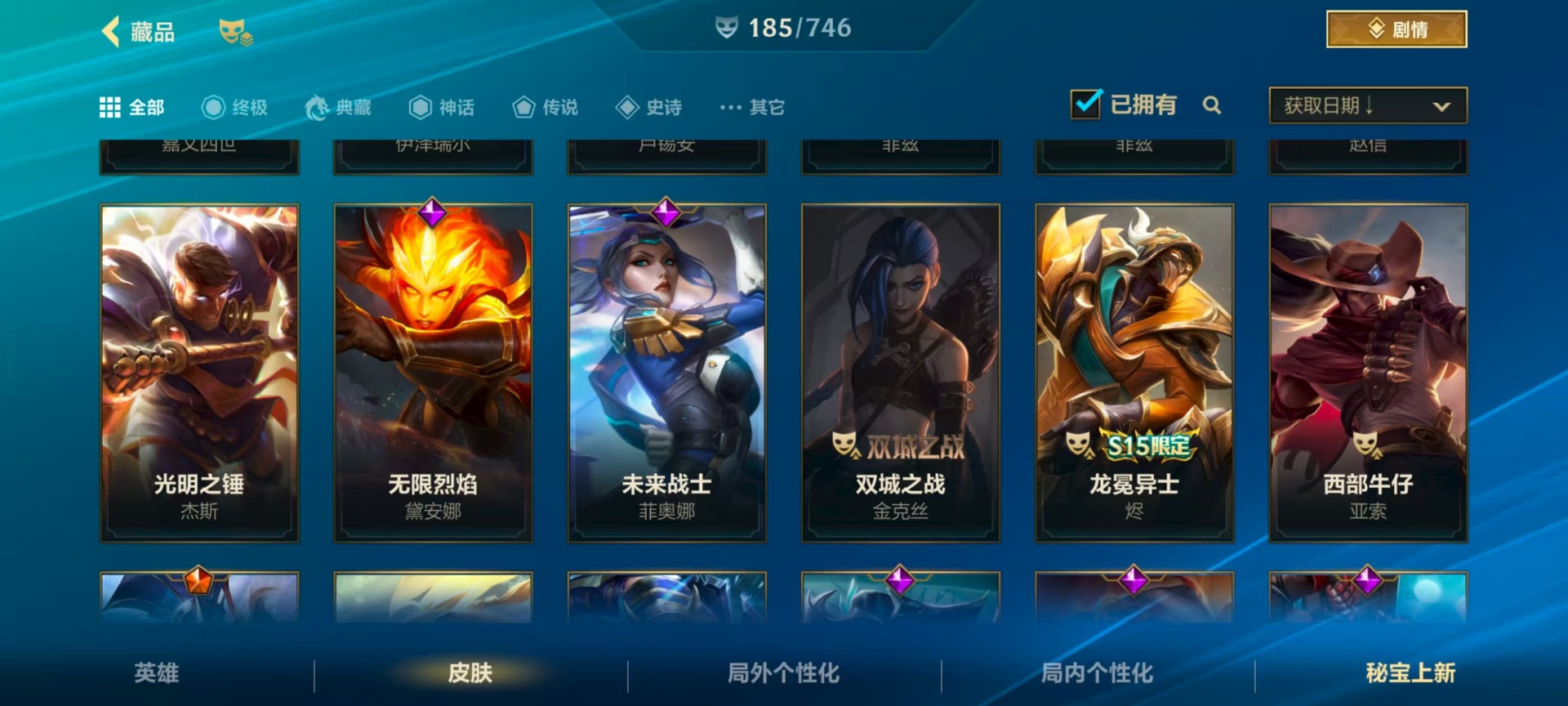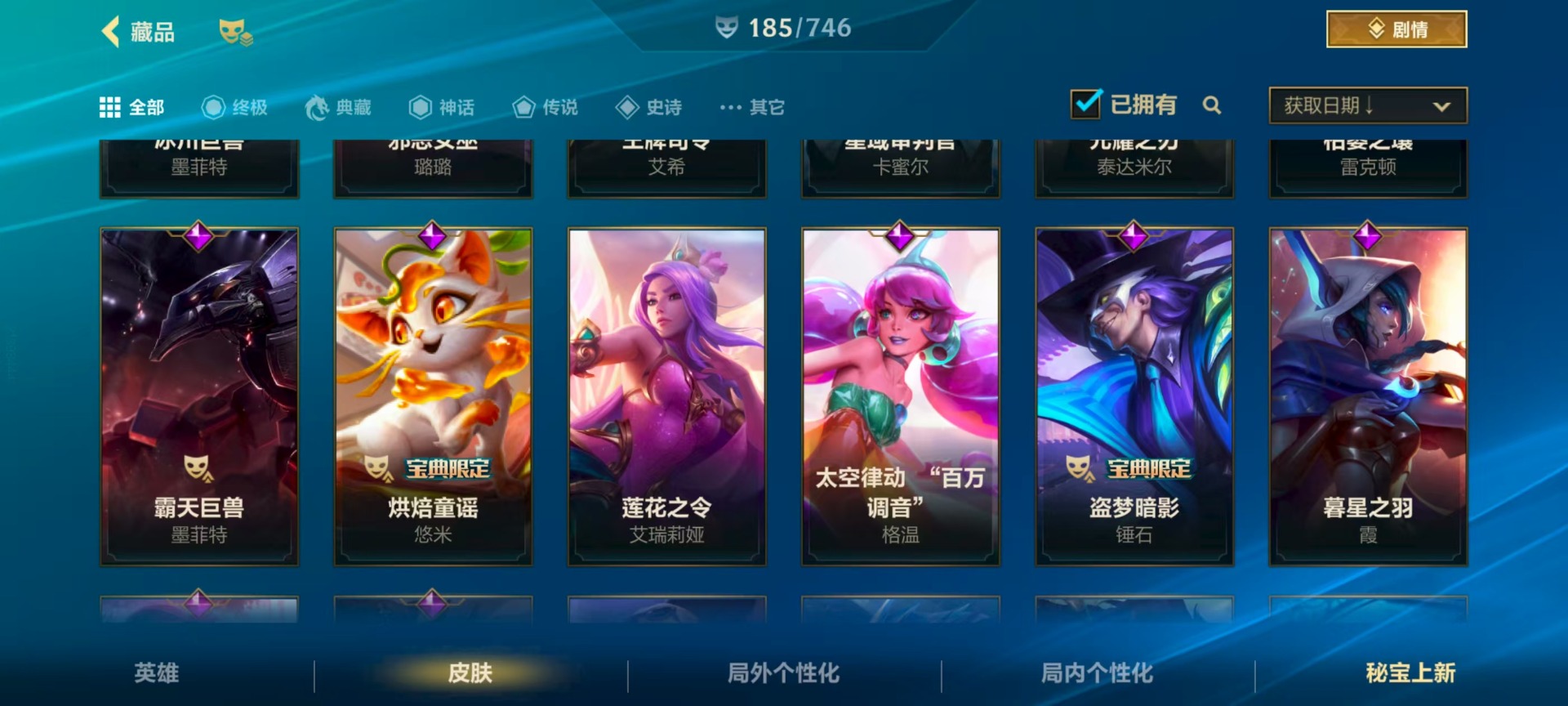 - [11445839]V5 2传说 119英雄 99皮肤 可修改实名 优质装备:地狱火,地狱之眼 珍宝阁皮:蔷薇恋人 限定皮:至尊宝,高山流水,五谷丰年,梁祝,李小龙 史诗皮:白龙吟,永昼,末日机甲-吕布,水果甜心,功夫厨神,暗隐猎兽者,幽灵船长,鬼剑武藏,水晶猎龙者,金属风暴,鹰眼统帅,魅力维加斯