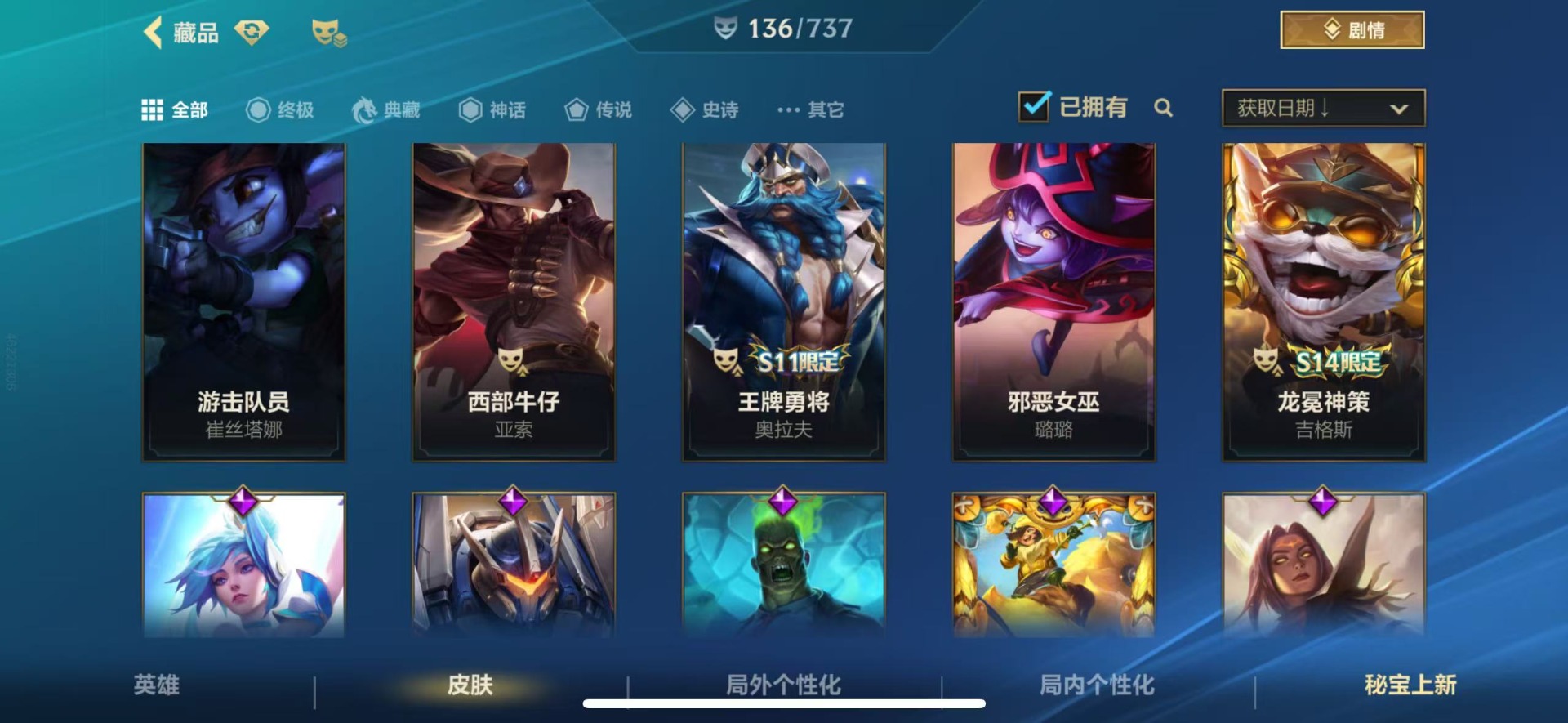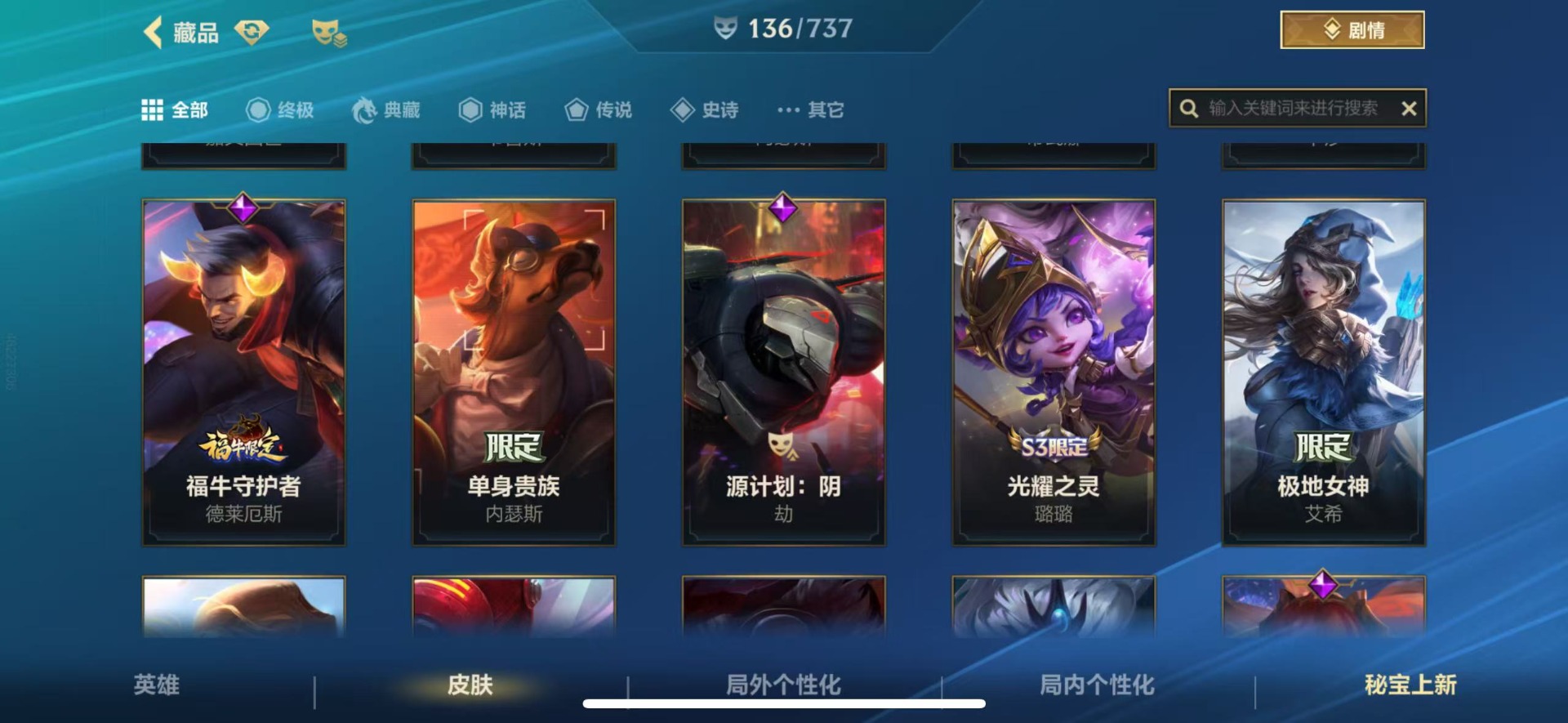 [11249641]可二次 可修改实名 1神话 11传说 60史诗 136皮肤 114英雄 铂金 皮肤:奥莉安娜-光耀之心,奥莉安娜-星之守护者,奥莉安娜-哥特女仆,奥莉安娜-暗星,阿狸-电玩女神,阿狸-焰尾妖狐,阿狸-偶像歌手,薇恩-光明哨兵,薇恩-源计划:净化,薇恩-苍穹之光,泰达米尔-关羽 云长,泰达米尔-光耀之刃,泰达米尔-恶魔之刃,烬-龙冕异士,烬-腥红之月,烬-源计划:升华,崔斯特-王牌舰长,崔斯特-未来战士,崔斯特-腥红之月,布兰德-灵魂烈焰,布兰德-苍穹之光,布兰德-丧尸,劫-天煞,劫-冲击之刃,劫-源计划:阴,崔丝塔娜-灵魂莲华,崔丝塔娜-娜就去看看,崔丝塔娜-游击队员,提莫-小蜜蜂,提莫-熊猫,提莫-兔宝宝,蔚-双城之战,蔚-女警官,蔚-源计划:裁决,厄运小姐-破败军团,厄运小姐-福牛守护者,厄运小姐-西部牛仔,艾希-王牌司令,艾希-极地女神,艾希-源计划:联合,阿利斯塔-福牛守护者,阿利斯塔-黑暗骑士,阿利斯塔-哞利斯塔,阿卡丽-银色之牙,阿卡丽-源计划:暗影,墨菲特-黑曜石守护者,墨菲特-霸天巨兽,盖伦-海上霸主,盖伦-钢铁军团