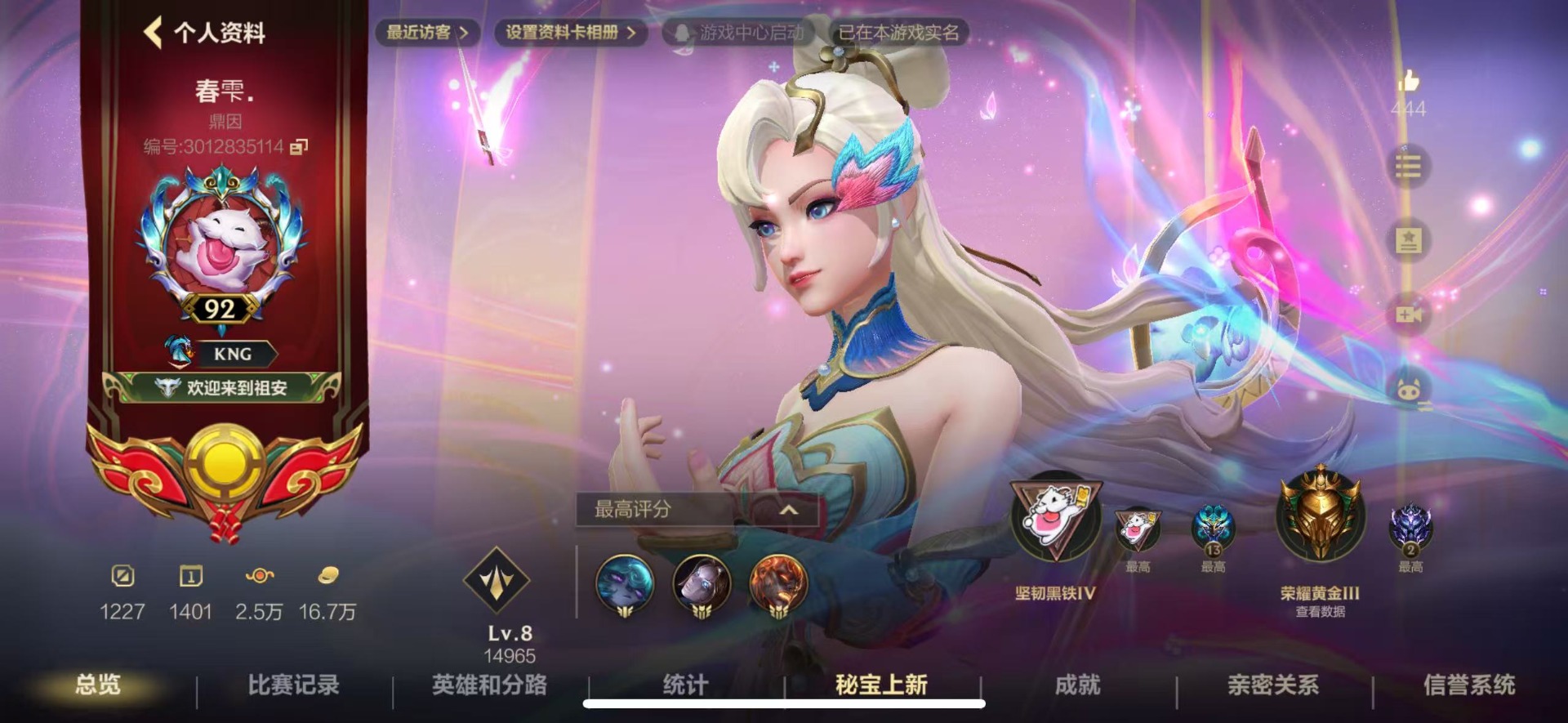 - [12291348]V8 1典藏 1无双 2珍品传说 30传说 125英雄 215皮肤 可修改实名 优质装备:银白咏叹调(倪克斯侍卫),天机白泽,朽木白哉,黑崎一护,黄金狮子座,绛天战甲(鸡嘴战神),猫影幻舞,炽阳神光,一念神魔,末日机甲-孙尚香(绿蚂蚱),地狱之眼,时之恋人-刘备(电焊工),游龙清影(小青龙),山海·琳琅生(小乔年限),记忆之芯(机甲兔),妄想实况,鲁班七号-时之奇旅,诡秘之主,千山共赴,涂山容容 传说皮:乘龙·问璇玑(孙尚香年限),乘龙·铭钟鼎(赵云年限),乘龙·淬吴钩(孙策年限),落雪白狼 珍宝阁皮:蔷薇恋人 限定皮:愿照·九州拓(澜年限),愿照·岁时盈(虞姬年限),愿照·山河定(司空震年限),映山客,鸣野蒿,至尊宝,凤求凰(白切鸡),至美·化雀舞,诗剑行,怒海麟威,五谷丰年,辉光之辰,大圣娶亲,寅虎·赤拳(老虎年限) 史诗皮:鸭鸭历险记-刘禅,化蝶舞,星界战将,谪仙醉月,龙之律动,石田雨龙,百相守梦-周瑜,百相守梦-黄忠,织梦人,守夜人,紫霞仙子,黄金分割率,特工魅影,千年之狐,匿光侦查者,魅语,高渐离燃音魔法,青蛇,偶像歌手,晚萤,节奏热浪,摇滚巨星,水果甜心,天才门将,星夜王子,心灵骇客,功夫厨神,暗隐猎兽者,鬼剑武藏,暗渊魔法,心灵战警,地狱岩魂,乘风破浪,逐浪之夏,水晶猎龙者,曙光守护者,箭羽风息,金属风暴,原初追逐者,圣诞恋歌,鹰眼统帅,暗夜贵公子,魅力维加斯
