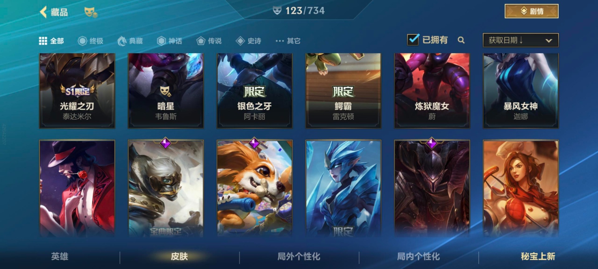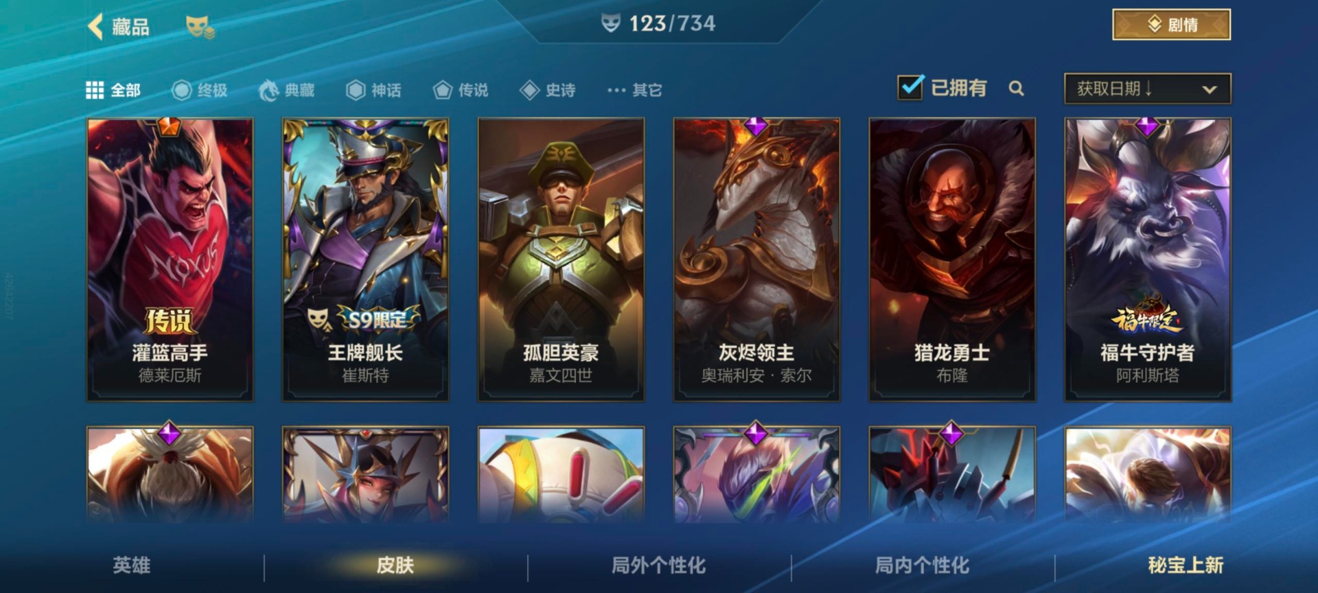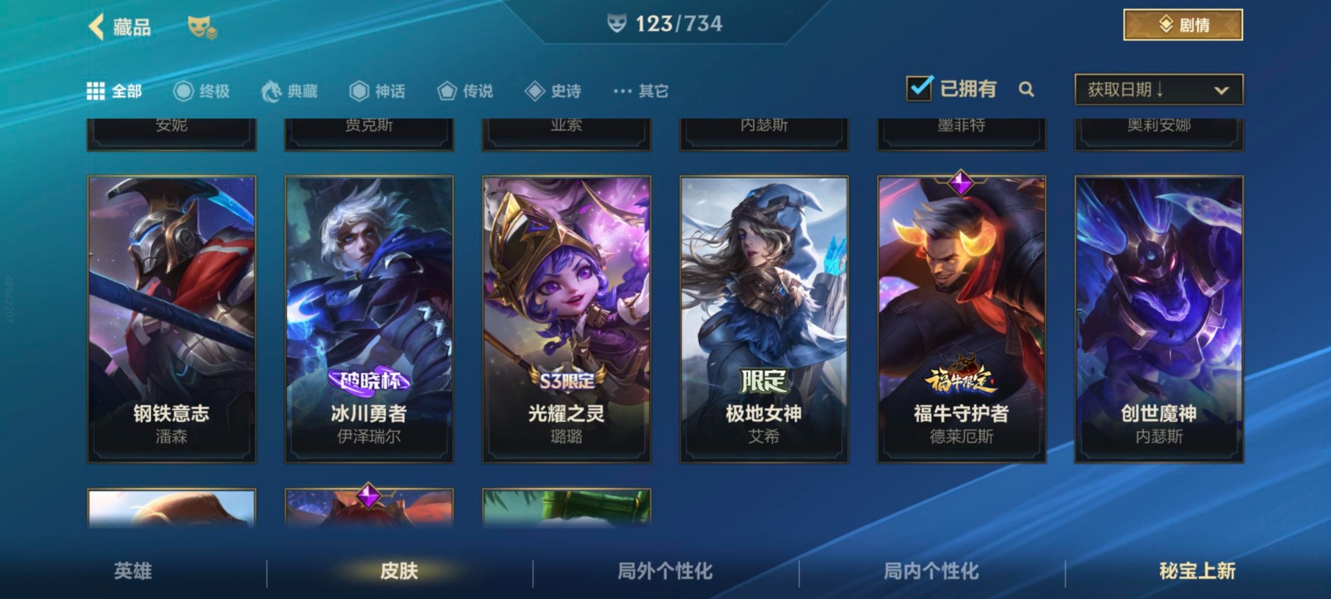 - [6856406]实名: 不可修改 贵族等级: V7 英雄数: 121 皮肤数: 190 传说皮: 云鹰飞将,仲夏夜之梦,霜月吟,典韦战鼓燎原,玄雷天君,幻光神枪 限定皮: 冰锋战神,李小龙,祈雪灵祝,游园惊梦,御风骁将,武圣,飞衡,至尊宝,五谷丰年,影龙天霄,愿照·山河定,愿照·九州拓