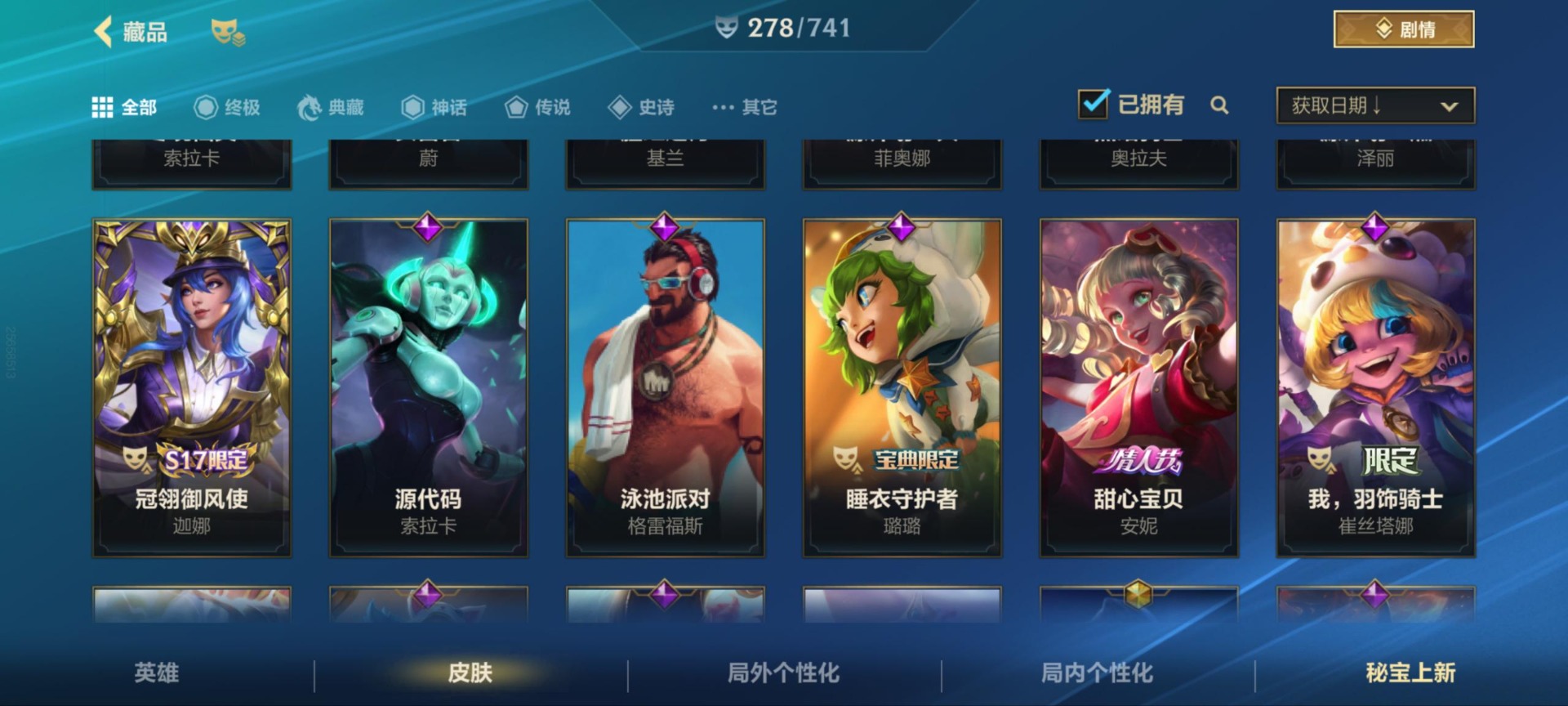 - PX_2098445-贵族等级: V6 英雄数: 97 皮肤数: 78 限定皮: 李小龙,游园惊梦,凤求凰,至尊宝
