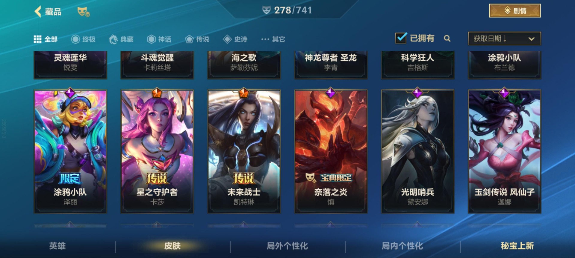 - [11931614]V7 1珍品传说 6传说 123英雄 151皮肤 可修改实名 背包有颗荣耀水晶 优质装备:朽木白哉,地狱之眼,超时空战士-狄仁杰,末日机甲-孙策,鹤羽星尊,涂山容容 传说皮:死亡执政官 限定皮:愿照·九州拓(澜年限),傲雪梅枪,遇见飞天,高山流水,五谷丰年,梁祝,李小龙,朱雀志(守约年限),大圣娶亲,神器·万象笔 史诗皮:器灵·浮梦炉,化蝶舞,龙之律动,雪豹·霜爪,石田雨龙,百相守梦-周瑜,紫霞仙子,黄金分割率,特工魅影,江河有灵,冰冠公主,末日机甲-吕布,女仆咖啡,水果甜心,心灵骇客,功夫厨神,鬼剑武藏,舞动绿茵,地狱岩魂,纤云弄巧,拒霜思,逐浪之夏,曙光守护者,金属风暴,鹰眼统帅,无心