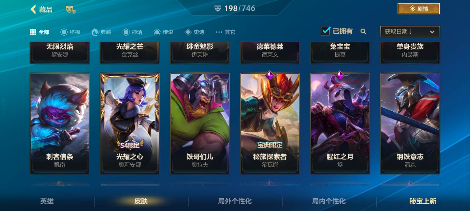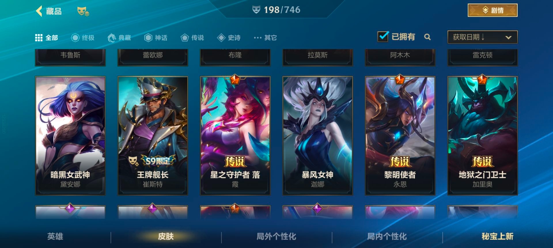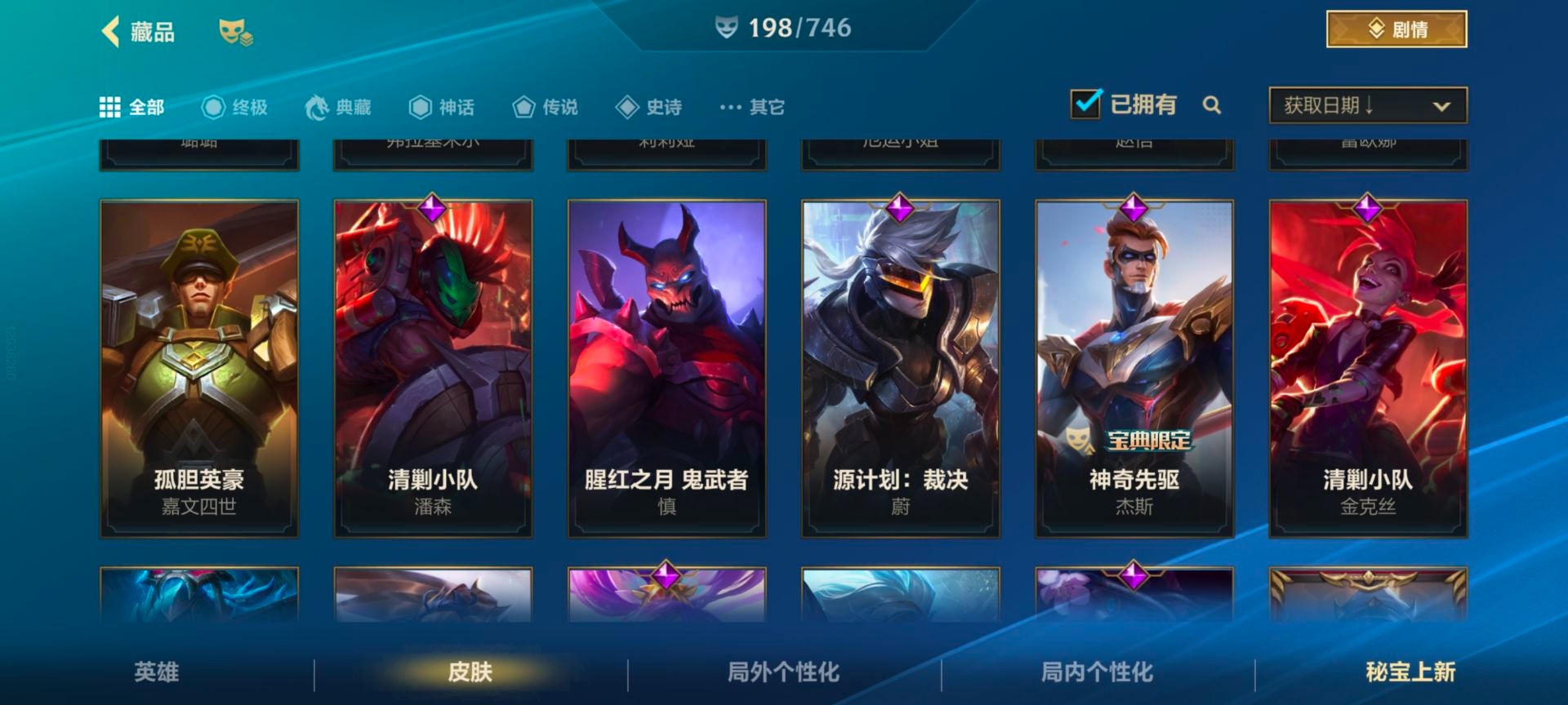 - PX_2082487-贵族等级: V5 英雄数: 120 皮肤数: 97 珍品传说: 朽木白哉,黑崎一护 星传说: 未来机甲 传说皮: 末日机甲-孙尚香,幻光神枪 限定皮: 游园惊梦,五谷丰年,鸣野蒿