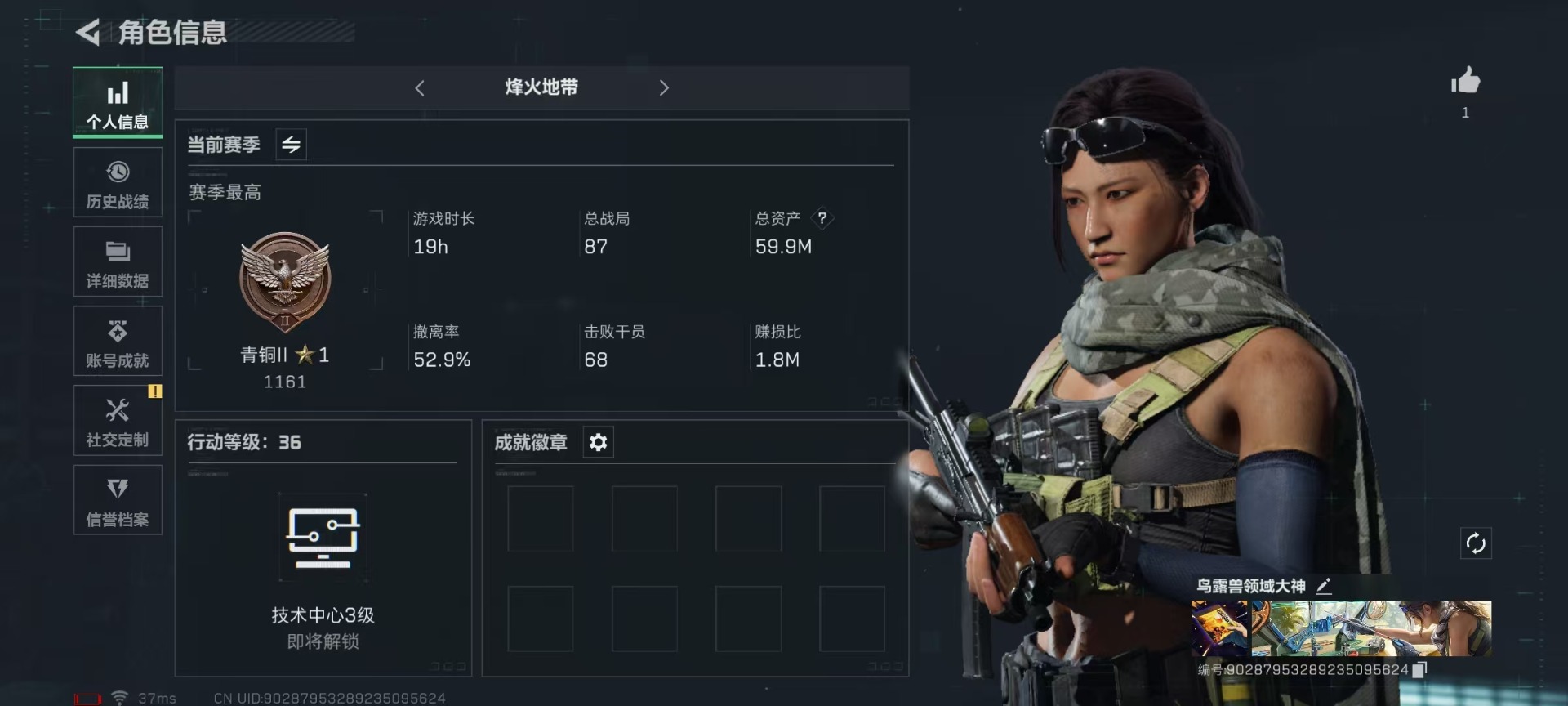 - [11296836]总资产:74.1 4传说枪械 进阶安全箱(9.17到期) 可二次 可修改实名 烽火地带段位:白银 全面战场段位:无段位 哈夫币:4.608 传说武器皮肤:UZI冲锋枪-特斯拉线圈,AK-12突击步枪-特斯拉线圈,复合弓-黑-天际线,CAR-15突击步枪-阿米娅 史诗武器皮肤:PKM通用机枪-蝮蛇,SV-98狙击步枪-林中猎手,SV-98狙击步枪-囚徒,SCAR-H战斗步枪-囚徒