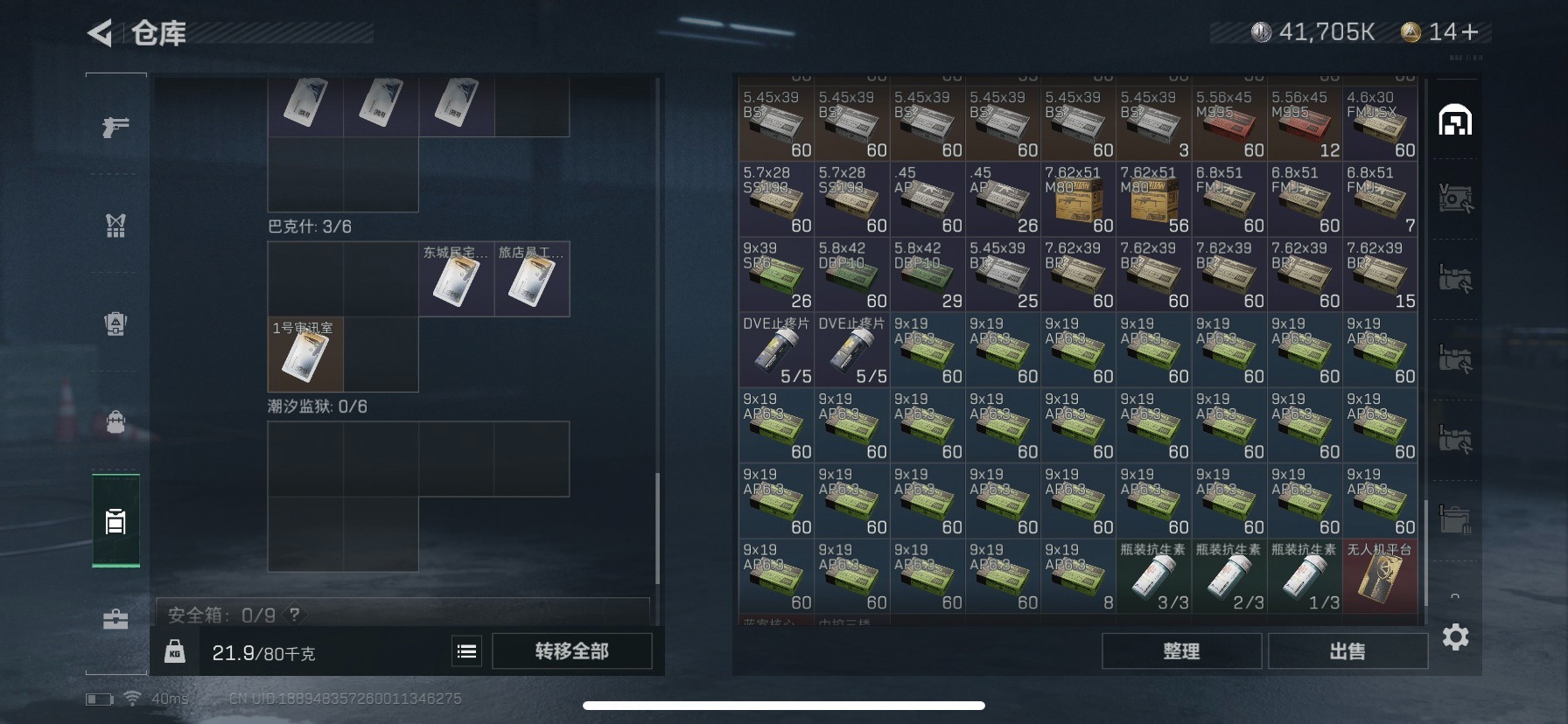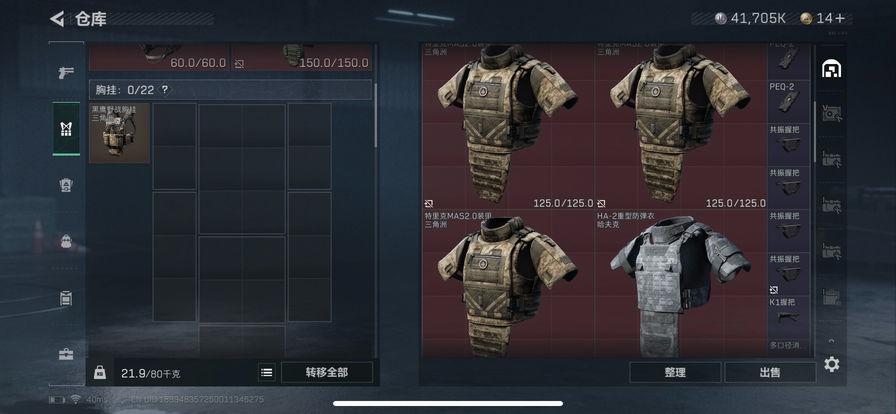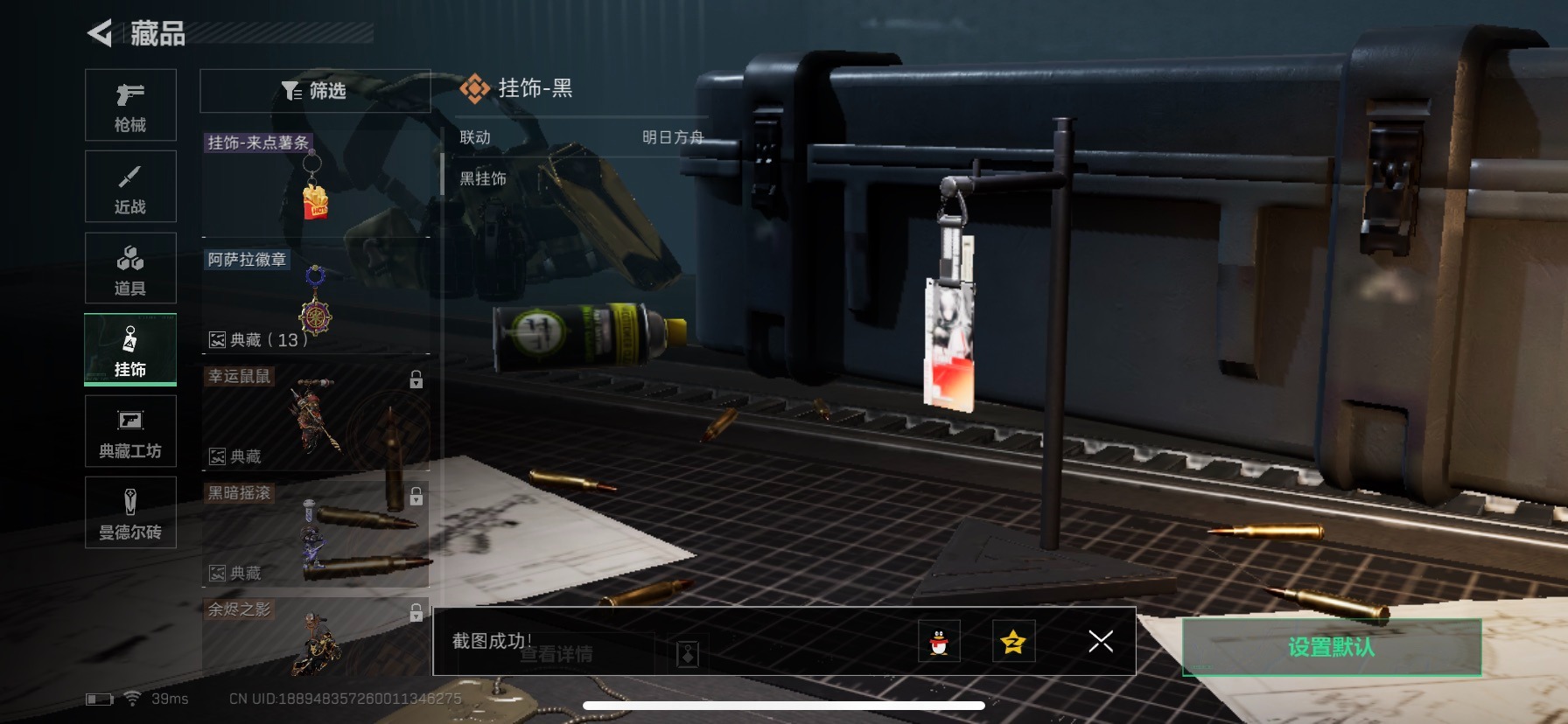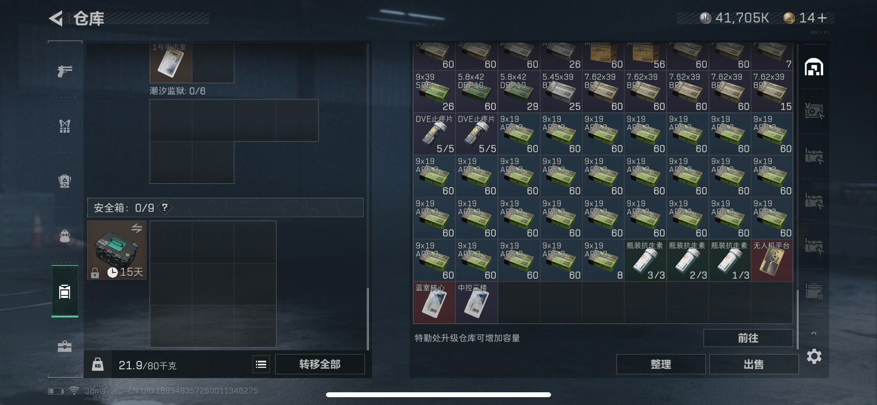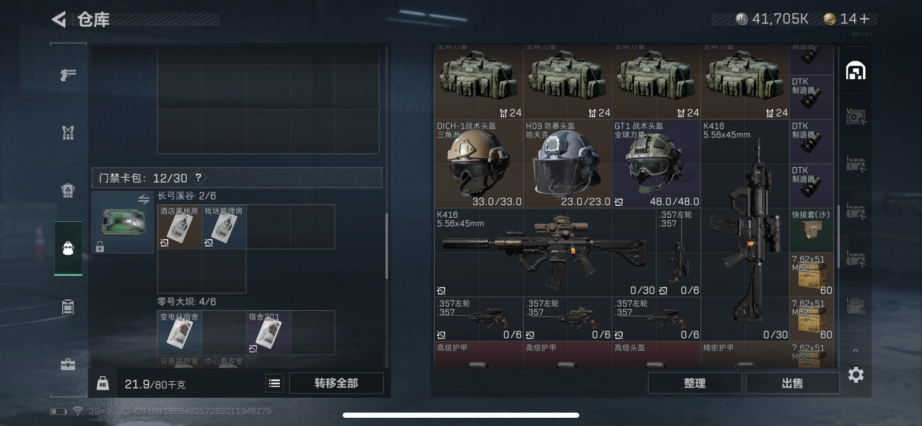 - [10938326]总资产:123.6M 3干员外观 1近战传说 8传说枪械 哈夫币:5.476K 可二次 可修改实名 优质装备:近战-北极星 烽火地带段位:无段位 全面战场段位:无段位 传说武器皮肤:SMG45冲锋枪-骑士,M14射手步枪-工业审判,复合弓-黑-天际线,725双管霰弹枪-送葬人-无题密令,CAR-15突击步枪-阿米娅,AK-12突击步枪-夜鹰,M4A1突击步枪-蚀金玫瑰 史诗武器皮肤:AUG突击步枪-蝮蛇,G3战斗步枪-战场英杰,SG552突击步枪-尖端治疗,M1014霰弹枪-林中猎手,PKM通用机枪-守夜人,AS Val突击步枪-尖端治疗,M700狙击步枪-守夜人,Ash-12战斗步枪-守夜人,SR-25射手步枪-尖端治疗,MP5冲锋枪-深海恐惧,勇士冲锋枪-深海恐惧,SG552突击步枪-深海恐惧,AKM突击步枪-林中猎手,.357左轮-幸运时刻,M16A4突击步枪-竞赛选手,M250通用机枪-囚徒,SV-98狙击步枪-林中猎手,PTR-32突击步枪-英雄,AS Val突击步枪-典狱官,PSG-1射手步枪-无垢,SR-3M紧凑突击步枪-荒野求生,PKM通用机枪-荒野求生,QBZ95-1突击步枪-曙光,沙漠之鹰-曙光,Vector冲锋枪-阿萨拉文明,SVD狙击步枪-阿萨拉工艺,S12K霰弹枪-曙光,M14射手步枪-禁卫,PKM通用机枪-英雄,M700狙击步枪-竞技风,M14射手步枪-黑鹰坠落 干员外观:红狼-蚀金玫瑰,无名-夜鹰,露娜-黑·天际线1