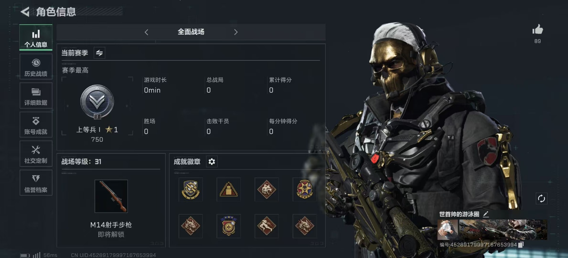 - [10598019]实名: 可修改 时装数: 182 载具数: 2 枪械数: 44 战备数: 36 热门装扮: 梦幻火箭(新101),宝贝奶油派,天使彩虹糖,甜蜜誓约,垂柳戏鸭 载具: 路特斯ELETRE(冰川蓝),玛莎拉蒂MC20(星石白) 稀有枪皮: SCAR-L梦幻火箭,M16A4垂柳戏鸭,SCAR-L-锦绣绵绵,Kar98K-巳巳如意