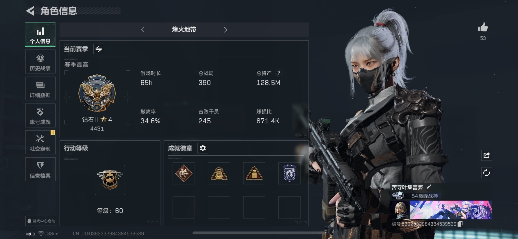 [11445798]总资产:128.5M 3干员外观 1近战传说 12传说枪械 哈夫币:1.527K 顶级安全箱(3×3)9.15号到期 可二次 可修改实名 优质装备:近战-影锋,顶级安全箱(3x3) 烽火地带段位:钻石 全面战场段位:尉官 传说武器皮肤:AS Val突击步枪-蛇年祥瑞,SCAR-H战斗步枪-水墨云图,M1014霰弹枪-影锋,AWM狙击步枪-影锋,SCAR-H战斗步枪-铁艺苍穹,AK-12突击步枪-夜鹰,SMG45冲锋枪-骑士,CAR-15突击步枪-阿米娅,复合弓-黑-天际线,725双管霰弹枪-送葬人-无题密令,M4A1突击步枪-蚀金玫瑰 史诗武器皮肤:QBZ95-1突击步枪-ACE,M4A1突击步枪-特勤执行,AUG突击步枪-特勤执行,Vector冲锋枪-红色彗星,PTR-32战斗步枪-ACE,SKS射手步枪-ACE,M700狙击步枪-蝮蛇,PKM通用机枪-蝮蛇,SR-25射手步枪-战场英杰,SR-25射手步枪-尖端治疗,AS Val突击步枪-尖端治疗,SG552突击步枪-尖端治疗,Ash-12战斗步枪-守夜人,SR-3M紧凑突击步枪-荒野求生,SG552突击步枪-深海恐惧,AKM突击步枪-林中猎手,M16A4突击步枪-竞赛选手,PKM通用机枪-守夜人,SVD狙击步枪-荒野求生,P90冲锋枪-暗影猎手,M1014霰弹枪-林中猎手,SV-98狙击步枪-林中猎手,PTR-32突击步枪-英雄,SV-98狙击步枪-囚徒,SCAR-H战斗步枪-囚徒,腾龙突击步枪-无垢,MP7冲锋枪-无垢,Vector冲锋枪-阿萨拉文明,SVD狙击步枪-阿萨拉工艺,S12K霰弹枪-曙光,PKM通用机枪-英雄 干员外观:红狼-蚀金玫瑰,骇爪-水墨云图,露娜-黑·天际线