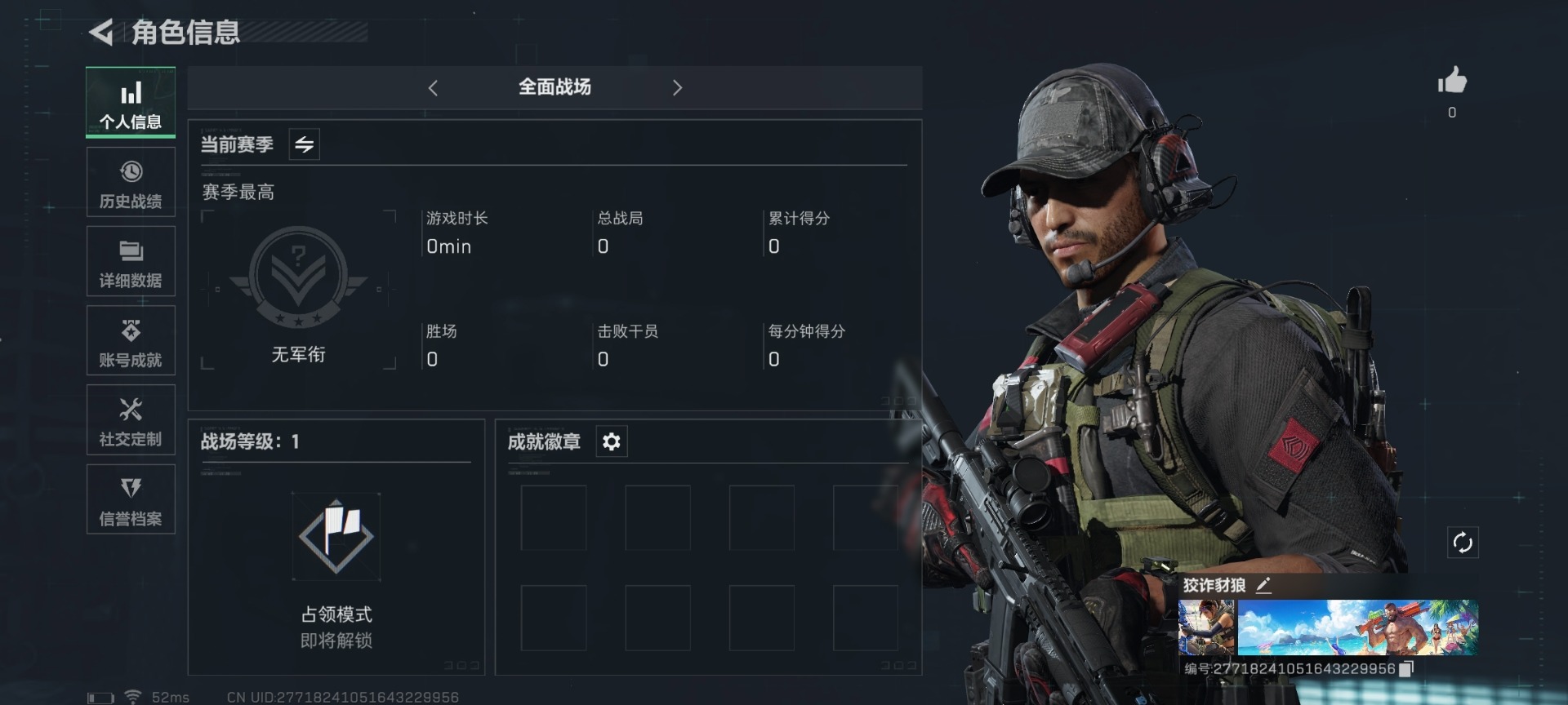 [11472105]总资产:88.5 1干员外观 进阶安全箱(2×2)9.15号到期 可二次 可修改实名 烽火地带段位:青铜 全面战场段位:无段位 哈夫币:7.280 史诗武器皮肤:AKM突击步枪-林中猎手 干员外观:露娜-黑·天际线