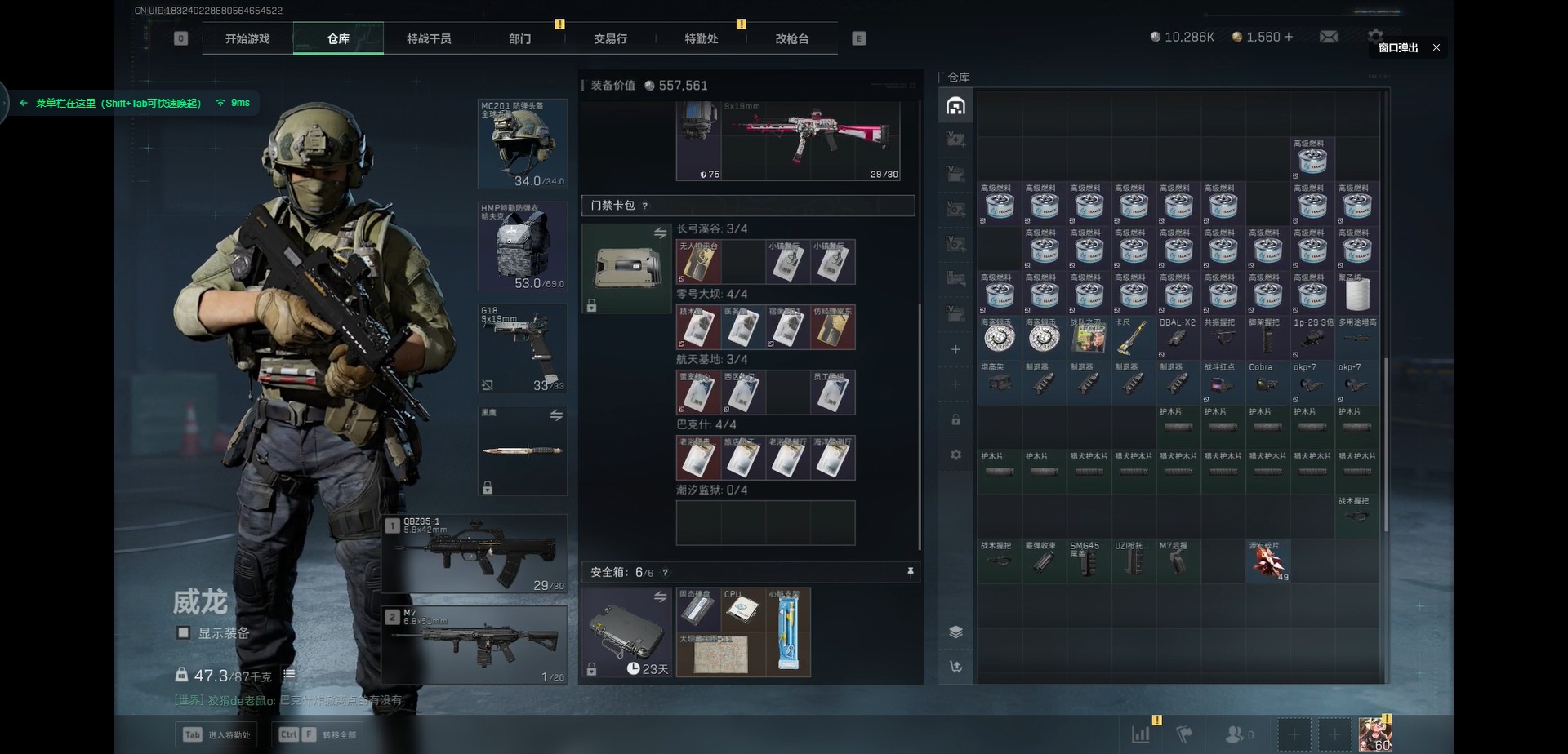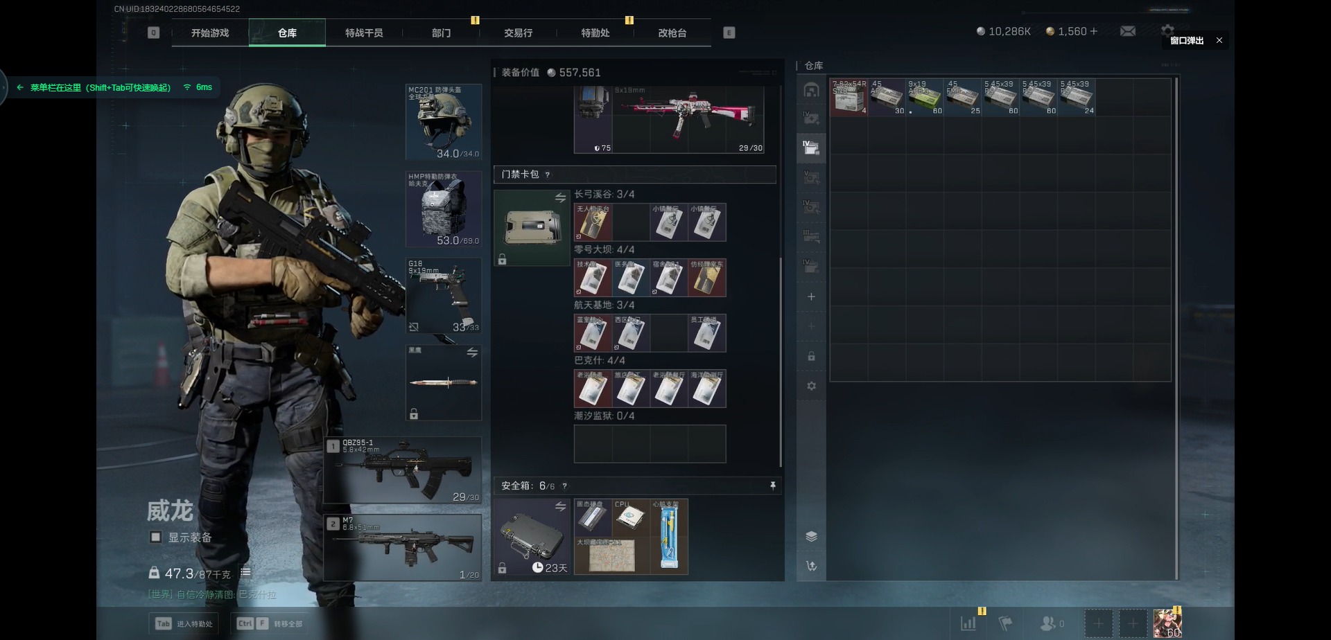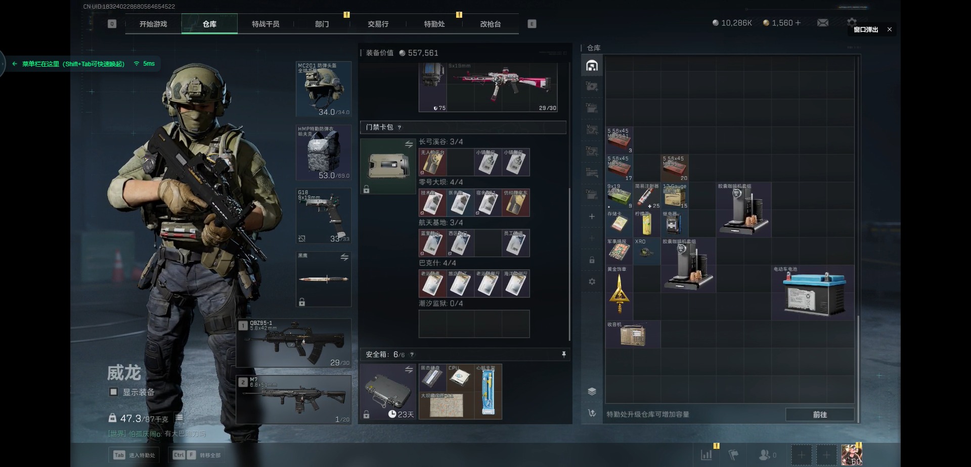 [11446187]总资产:92.5M 8传说枪械 哈夫币:10.286K 高级安全箱(9.17到期) 可二次 可修改实名 烽火地带段位:钻石 全面战场段位:无段位 传说武器皮肤:SMG45冲锋枪-骑士,CAR-15突击步枪-阿米娅,复合弓-黑-天际线,AK-12突击步枪-特斯拉线圈,SR-3M紧凑突击步枪-特斯拉线圈,UZI冲锋枪-特斯拉线圈,勇士冲锋枪-能天使-午夜邮差,725双管霰弹枪-送葬人-无题密令 史诗武器皮肤:AUG突击步枪-蝮蛇,M700狙击步枪-蝮蛇,PKM通用机枪-蝮蛇,SVD狙击步枪-暗夜猎手,M16A4突击步枪-竞赛选手,勇士冲锋枪-深海恐惧,AKM突击步枪-林中猎手,SR-3M紧凑突击步枪-荒野求生,SV-98狙击步枪-林中猎手,SVD狙击步枪-荒野求生,SCAR-H战斗步枪-囚徒,腾龙突击步枪-无垢,MP7冲锋枪-无垢,PSG-1射手步枪-无垢,QBZ95-1突击步枪-曙光,沙漠之鹰-曙光,S12K霰弹枪-曙光,PKM通用机枪-英雄