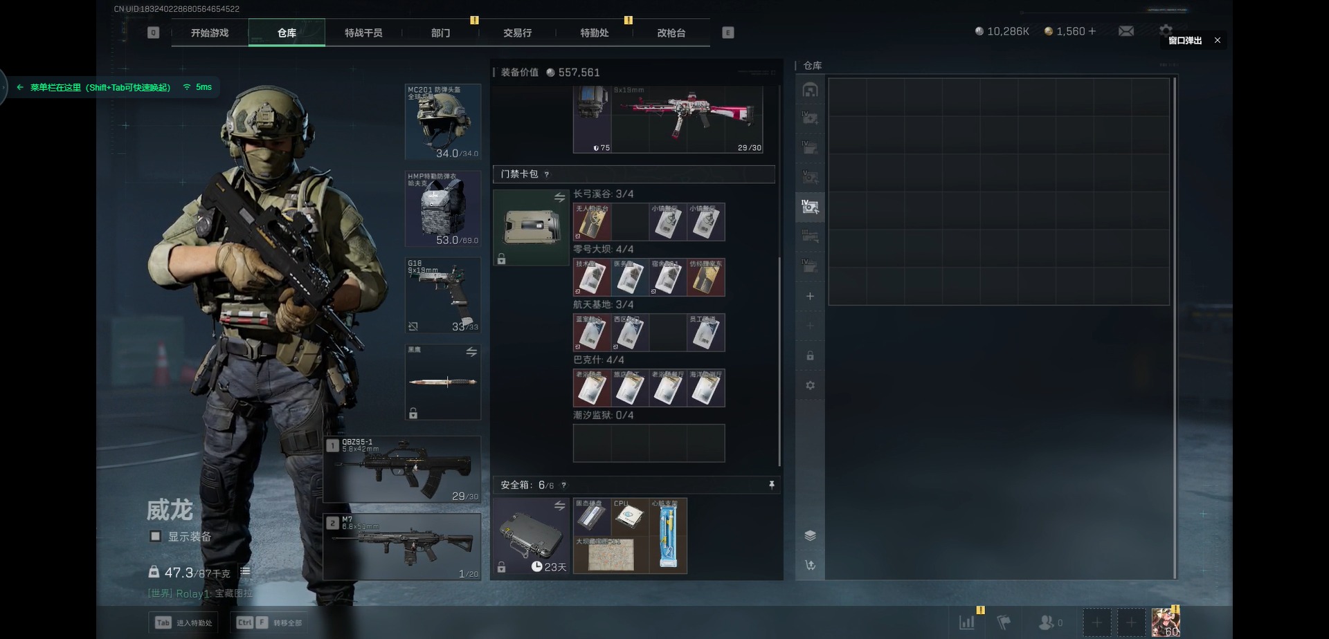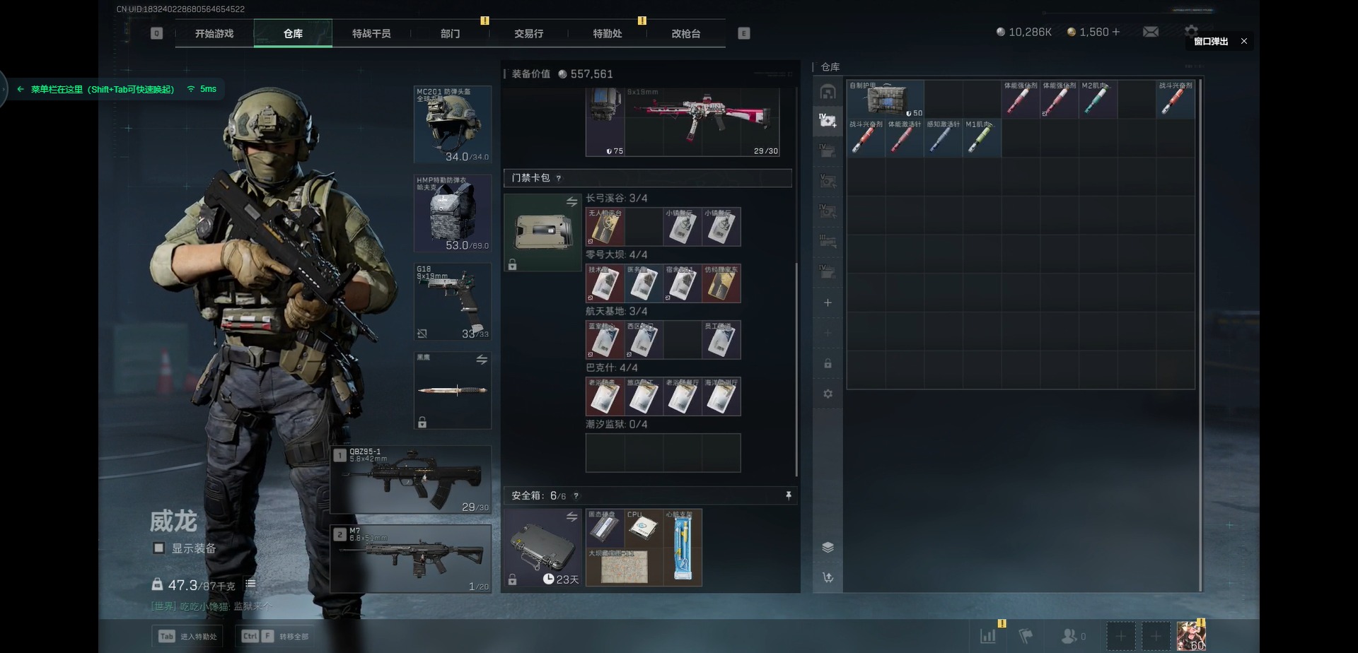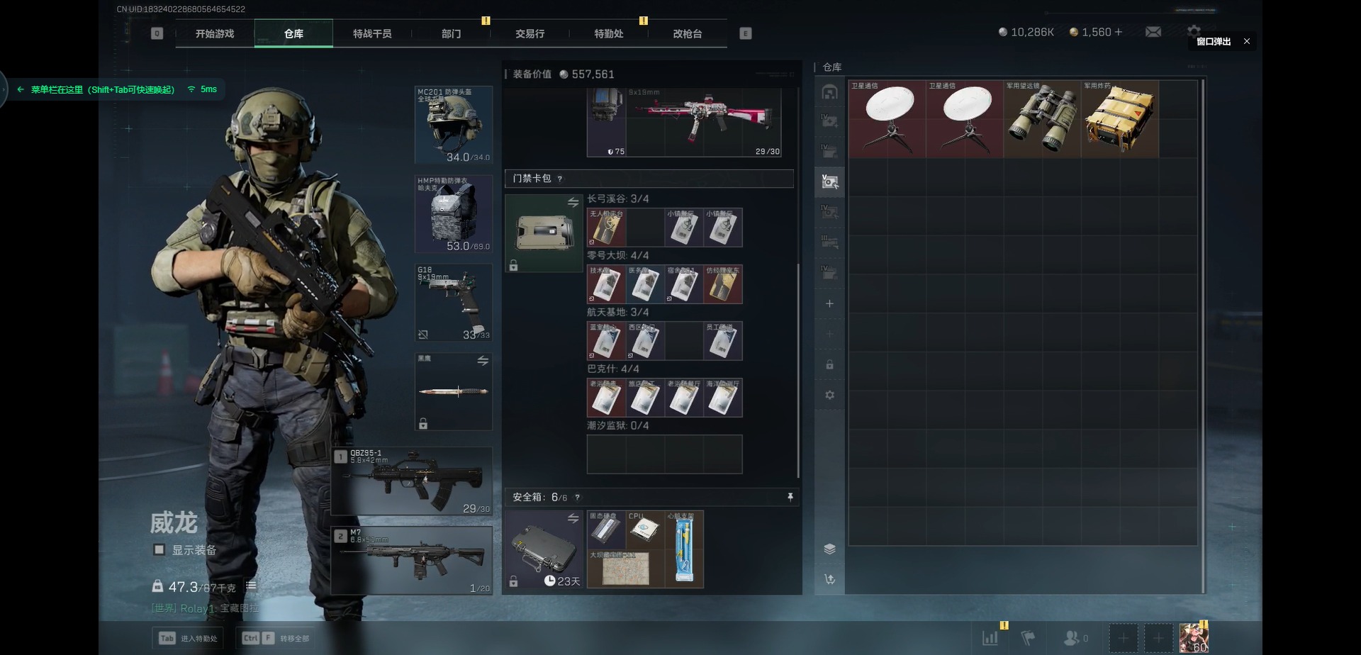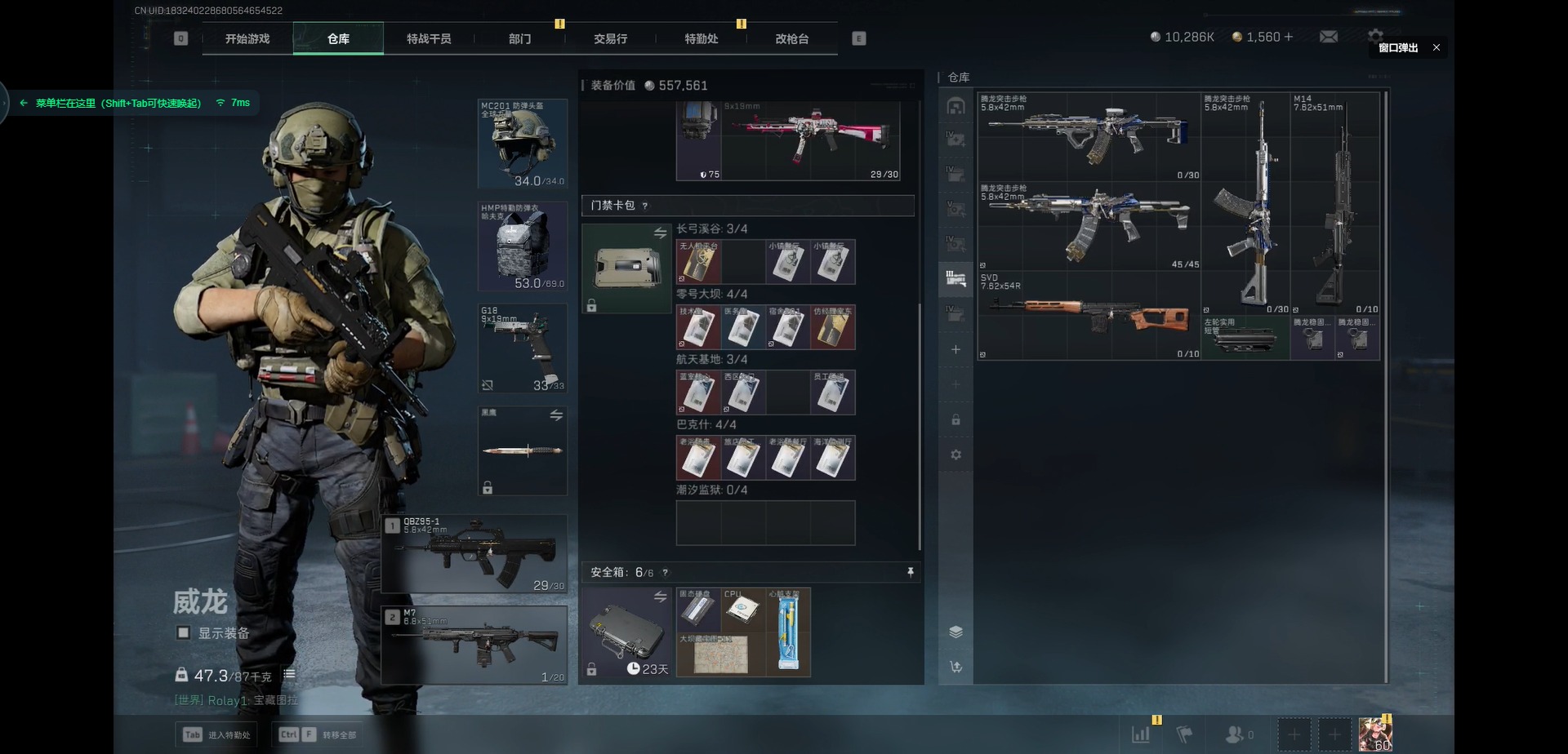 [11446187]总资产:92.5M 8传说枪械 哈夫币:10.286K 高级安全箱(9.17到期) 可二次 可修改实名 烽火地带段位:钻石 全面战场段位:无段位 传说武器皮肤:SMG45冲锋枪-骑士,CAR-15突击步枪-阿米娅,复合弓-黑-天际线,AK-12突击步枪-特斯拉线圈,SR-3M紧凑突击步枪-特斯拉线圈,UZI冲锋枪-特斯拉线圈,勇士冲锋枪-能天使-午夜邮差,725双管霰弹枪-送葬人-无题密令 史诗武器皮肤:AUG突击步枪-蝮蛇,M700狙击步枪-蝮蛇,PKM通用机枪-蝮蛇,SVD狙击步枪-暗夜猎手,M16A4突击步枪-竞赛选手,勇士冲锋枪-深海恐惧,AKM突击步枪-林中猎手,SR-3M紧凑突击步枪-荒野求生,SV-98狙击步枪-林中猎手,SVD狙击步枪-荒野求生,SCAR-H战斗步枪-囚徒,腾龙突击步枪-无垢,MP7冲锋枪-无垢,PSG-1射手步枪-无垢,QBZ95-1突击步枪-曙光,沙漠之鹰-曙光,S12K霰弹枪-曙光,PKM通用机枪-英雄