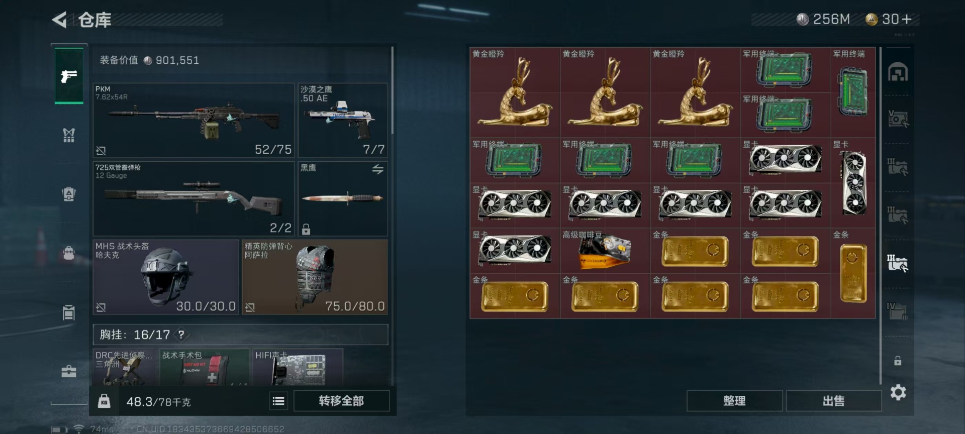 [11471868]总资产:388.1M 7传说枪械 哈夫币:256K 顶级安全箱(3×3)9.15号到期 可二次 可修改实名 优质装备:顶级安全箱(3x3) 烽火地带段位:钻石 全面战场段位:军士长 传说武器皮肤:M4A1突击步枪-阿米娅,CAR-15突击步枪-阿米娅,复合弓-黑-天际线,AWM狙击步枪-捞点薯条,腾龙突击步枪-捞点薯条,93R-捞点薯条,勇士冲锋枪-能天使-午夜邮差 史诗武器皮肤:Ash-12战斗步枪-飓风行动,AKM突击步枪-林中猎手,M16A4突击步枪-竞赛选手,M1014霰弹枪-林中猎手,SV-98狙击步枪-林中猎手,PTR-32突击步枪-英雄,M250通用机枪-囚徒,SCAR-H战斗步枪-囚徒,Vector冲锋枪-阿萨拉文明,M700狙击步枪-竞技风