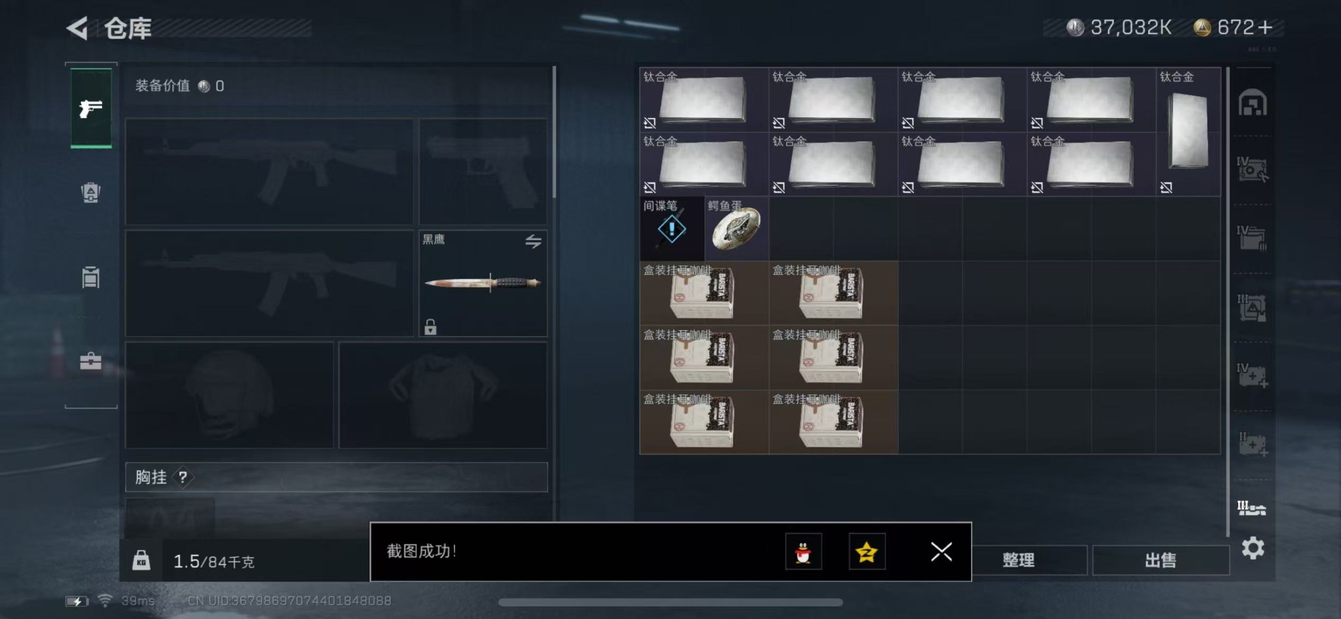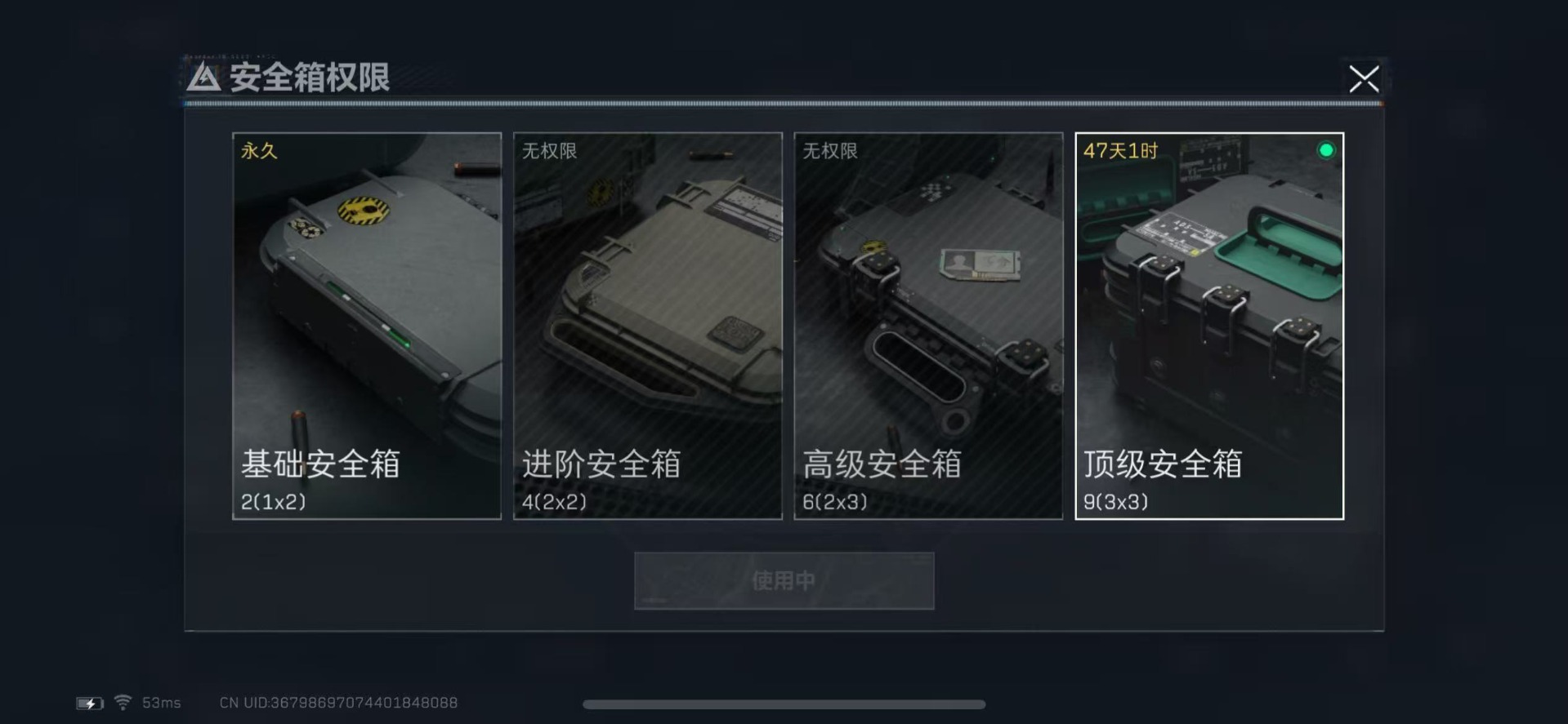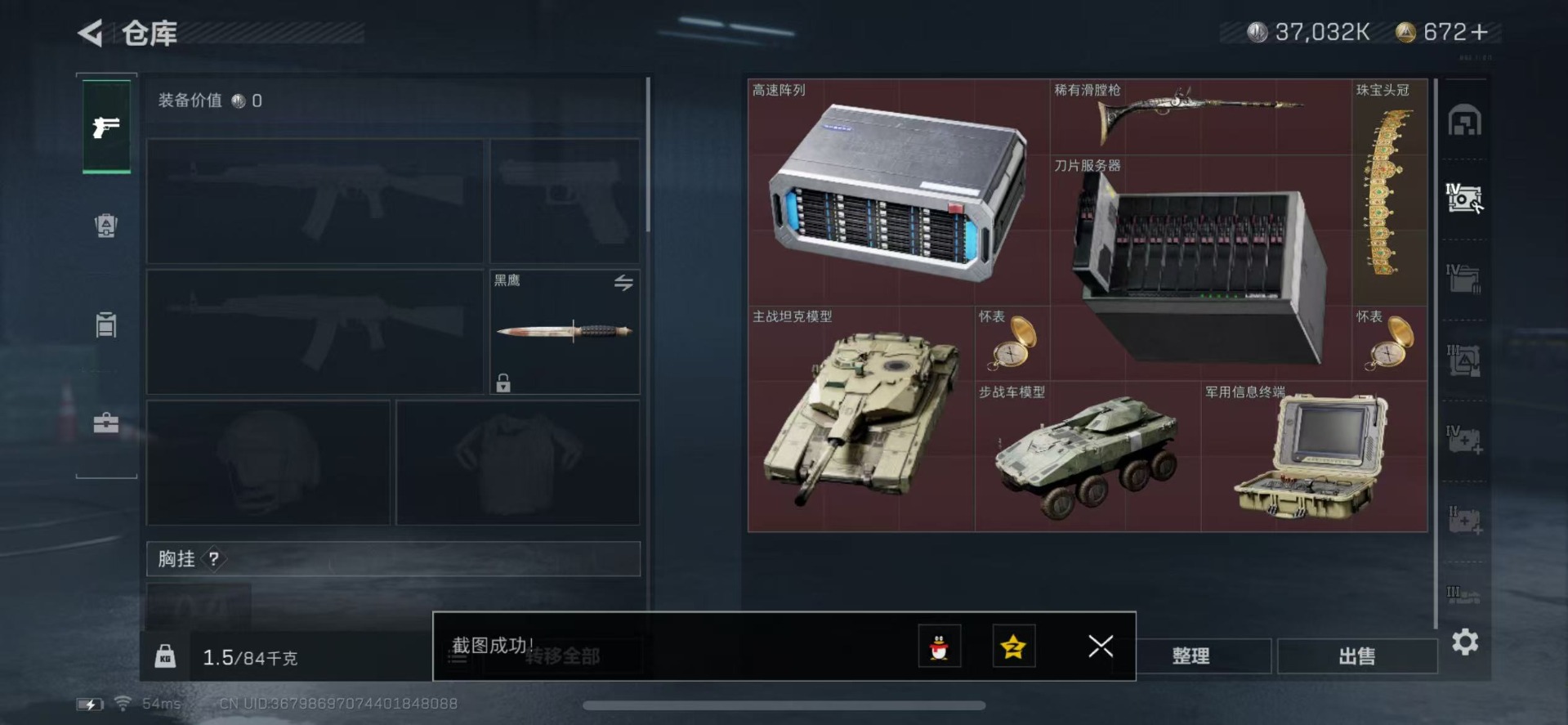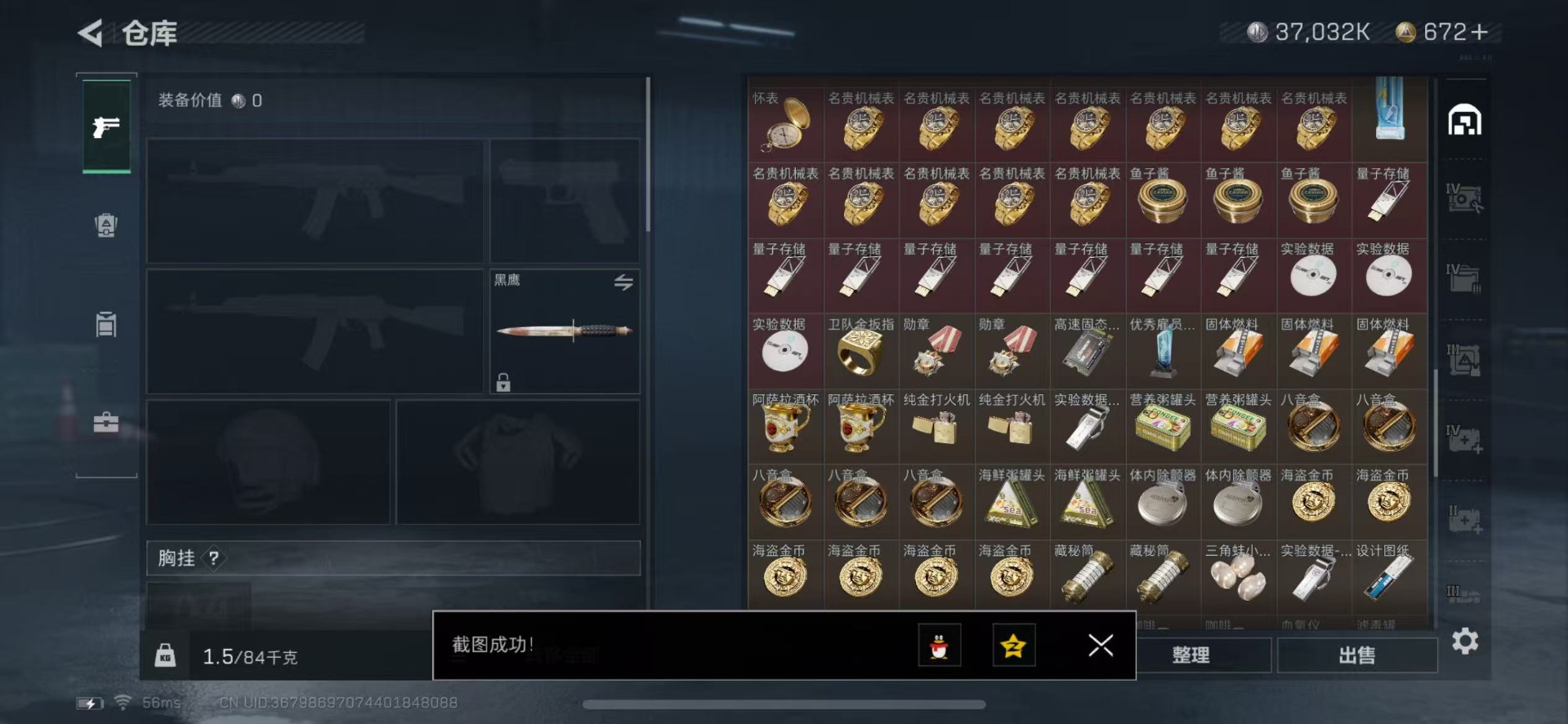 [11472288]总资产:128.8 1传说枪械 顶级安全箱(3X3)9.15号到期 烽火地带段位:钻石 全面战场段位:无段位 哈夫币:3.7 传说武器皮肤:复合弓-黑-天际线 史诗武器皮肤:M1014霰弹枪-林中猎手,SV-98狙击步枪-林中猎手,S12K霰弹枪-曙光