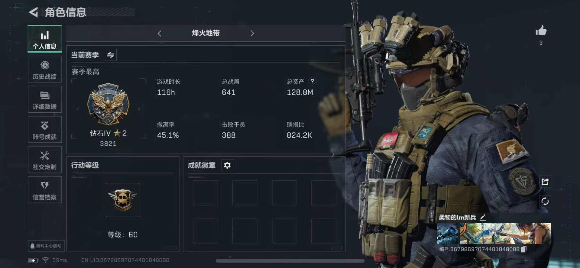 - PX_2097044-安卓QQ 历史总热力值:85379 红装数量:1 粉装数量:10 特效枪数量:17 载具数量:2 王牌印记:9 历史最高段位:超级王牌3星 套装数量:179 时装数量:675 枪械数量:250 战备数量:168 装备数量:334 载具:兰博基尼URUS(明艳黄),兰博基尼Estoque(银翼灰) 时装:沙丘之主-图卡盟(2级),套装-天使彩虹糖,套装-宝贝奶油派,套装-星之彼