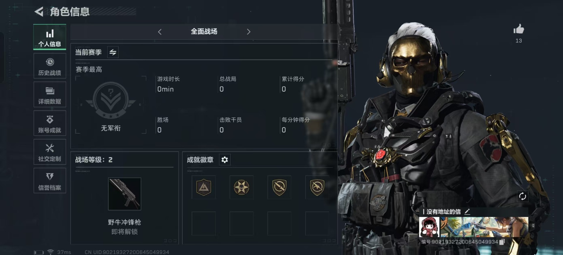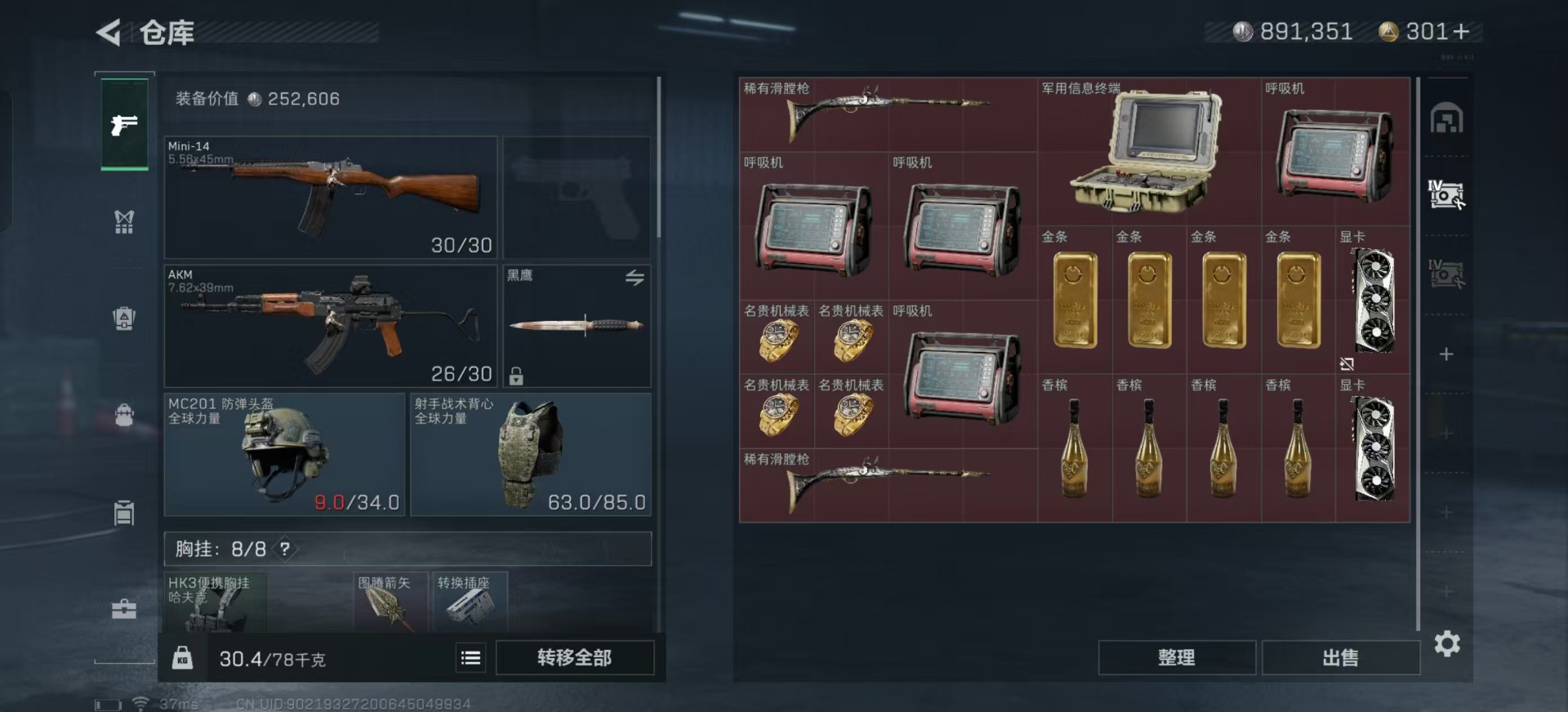 - [11625585]总资产:70.1M 哈夫币:2.452K 可二次 可修改实名 烽火地带段位:无段位 全面战场段位:无段位 史诗武器皮肤:AKM突击步枪-林中猎手,M1014霰弹枪-林中猎手