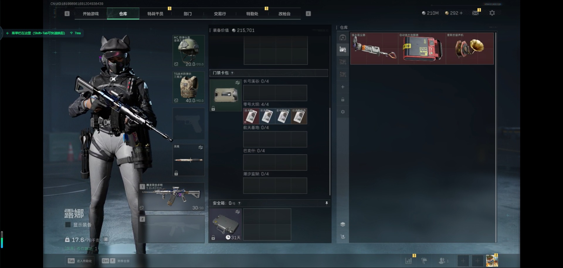 [11471674]总资产:305 2干员外观 5传说枪械 高级安全箱(2×3)9.15号到期 可二次 可修改实名 烽火地带段位:青铜 全面战场段位:无段位 哈夫币:210 传说武器皮肤:M16A4突击步枪-狩猎时刻,G3战斗步枪-狩猎时刻,Vector冲锋枪-狩猎时刻,M4A1突击步枪-阿米娅,725双管霰弹枪-送葬人-无题密令 史诗武器皮肤:PKM通用机枪-蝮蛇,PKM通用机枪-荒野求生,SR-3M紧凑突击步枪-荒野求生,SVD狙击步枪-荒野求生,SV-98狙击步枪-林中猎手,PSG-1射手步枪-无垢,腾龙突击步枪-无垢,MP7冲锋枪-无垢 干员外观:蜂医-送葬人·无题密令(S5),露娜-黑·天际线