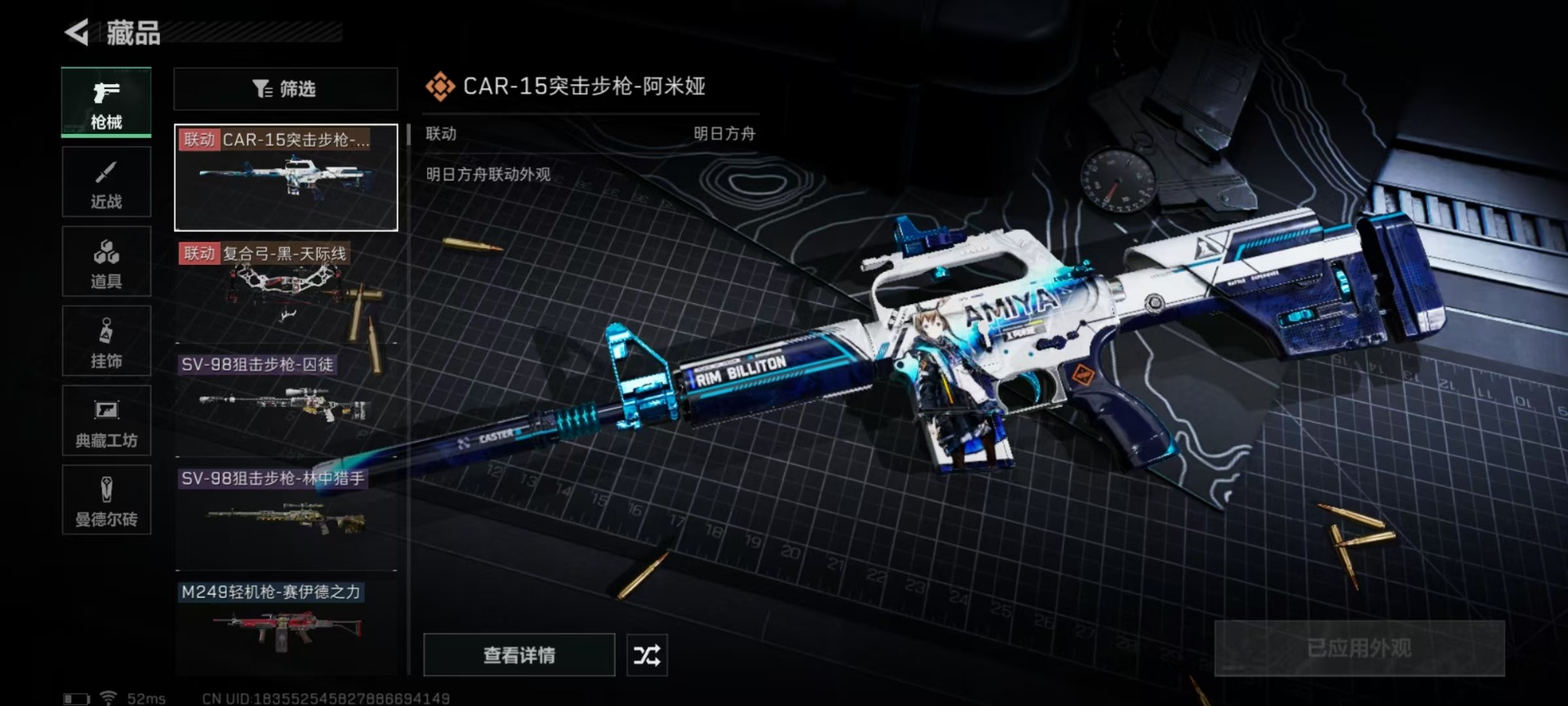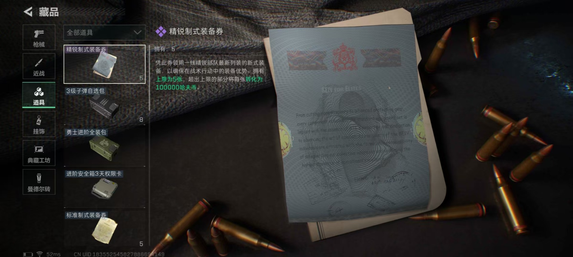 [11446210]总资产:105 2传说枪械 进阶安全箱(2×2)9.15号到期 可二次 可修改实名 烽火地带段位:白银 全面战场段位:无段位 哈夫币:54.448 传说武器皮肤:复合弓-黑-天际线,CAR-15突击步枪-阿米娅 史诗武器皮肤:SV-98狙击步枪-林中猎手,SV-98狙击步枪-囚徒