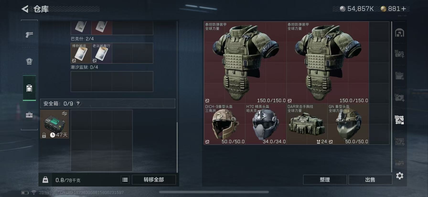 - [11685364]总资产:9 1近战传说 5传说枪械 高级安全箱(9.17到期) 可二次 可修改实名 烽火地带段位:钻石 全面战场段位:列兵 哈夫币:0 传说武器皮肤:近战-黑海,SMG45冲锋枪-骑士,QJB201轻机枪-黑海,复合弓-黑-天际线,M4A1突击步枪-蚀金玫瑰 史诗武器皮肤:QBZ95-1突击步枪-ACE,M4A1突击步枪-特勤执行,SKS射手步枪-ACE,PKM通用机枪-蝮蛇,PKM通用机枪-荒野求生,M700狙击步枪-守夜人,MP5冲锋枪-深海恐惧,勇士冲锋枪-深海恐惧,AKM突击步枪-林中猎手,SVD狙击步枪-暗夜猎手,M1014霰弹枪-林中猎手,PSG-1射手步枪-无垢,SV-98狙击步枪-囚徒,QBZ95-1突击步枪-曙光,沙漠之鹰-曙光,M700狙击步枪-竞技风