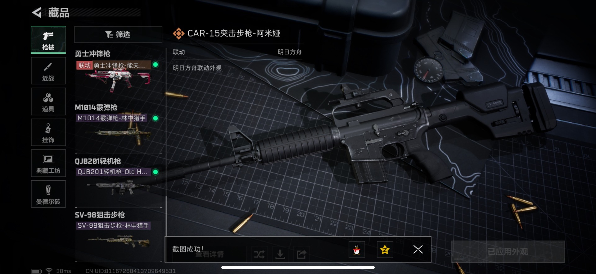 [11471322]总资产:127.4M 7传说枪械 哈夫币:101K 可二次 可修改实名 烽火地带段位:黑鹰 全面战场段位:无段位 传说武器皮肤:SMG45冲锋枪-骑士,AK-12突击步枪-特斯拉线圈,CAR-15突击步枪-阿米娅,SR-3M紧凑突击步枪-特斯拉线圈,UZI冲锋枪-特斯拉线圈,勇士冲锋枪-能天使-午夜邮差,Vector冲锋枪-能天使-午夜邮差 史诗武器皮肤:AUG突击步枪-蝮蛇,M16A4突击步枪-竞赛选手,M1014霰弹枪-林中猎手,MP5冲锋枪-深海恐惧,AKM突击步枪-林中猎手,SV-98狙击步枪-林中猎手