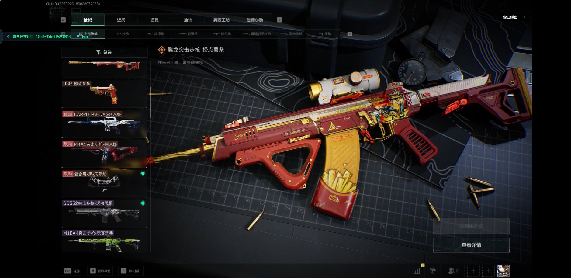 - [11845571]总资产:214.2M 3干员外观 1近战传说 12传说枪械 哈夫币:17.480K 可二次 可修改实名 优质装备:近战-黑海,顶级安全箱(3x3) 烽火地带段位:铂金 全面战场段位:上等兵 传说武器皮肤:UZI冲锋枪-特斯拉线圈,AWM狙击步枪-捞点薯条,93R-捞点薯条,AK-12突击步枪-特斯拉线圈,复合弓-黑-天际线,M4A1突击步枪-阿米娅,CAR-15突击步枪-阿米娅,AK-12突击步枪-夜鹰,M4A1突击步枪-蚀金玫瑰,MP5冲锋枪-黑海,QJB201轻机枪-黑海 史诗武器皮肤:SG552突击步枪-尖端治疗,QJB201轻机枪-Old Habits,M1014霰弹枪-林中猎手,PKM通用机枪-守夜人,AS Val突击步枪-尖端治疗,Ash-12战斗步枪-守夜人,MP5冲锋枪-深海恐惧,勇士冲锋枪-深海恐惧,AKM突击步枪-林中猎手,.357左轮-幸运时刻,M250通用机枪-囚徒,SV-98狙击步枪-林中猎手,PTR-32突击步枪-英雄,AS Val突击步枪-典狱官,SV-98狙击步枪-囚徒,SVD狙击步枪-暗夜猎手,SCAR-H战斗步枪-囚徒,MP7冲锋枪-无垢,SVD狙击步枪-荒野求生,PKM通用机枪-荒野求生,沙漠之鹰-曙光,Vector冲锋枪-阿萨拉文明,M700狙击步枪-竞技风,AUG突击步枪-战术迷彩 干员外观:红狼-蚀金玫瑰,无名-夜鹰,露娜-黑·天际线