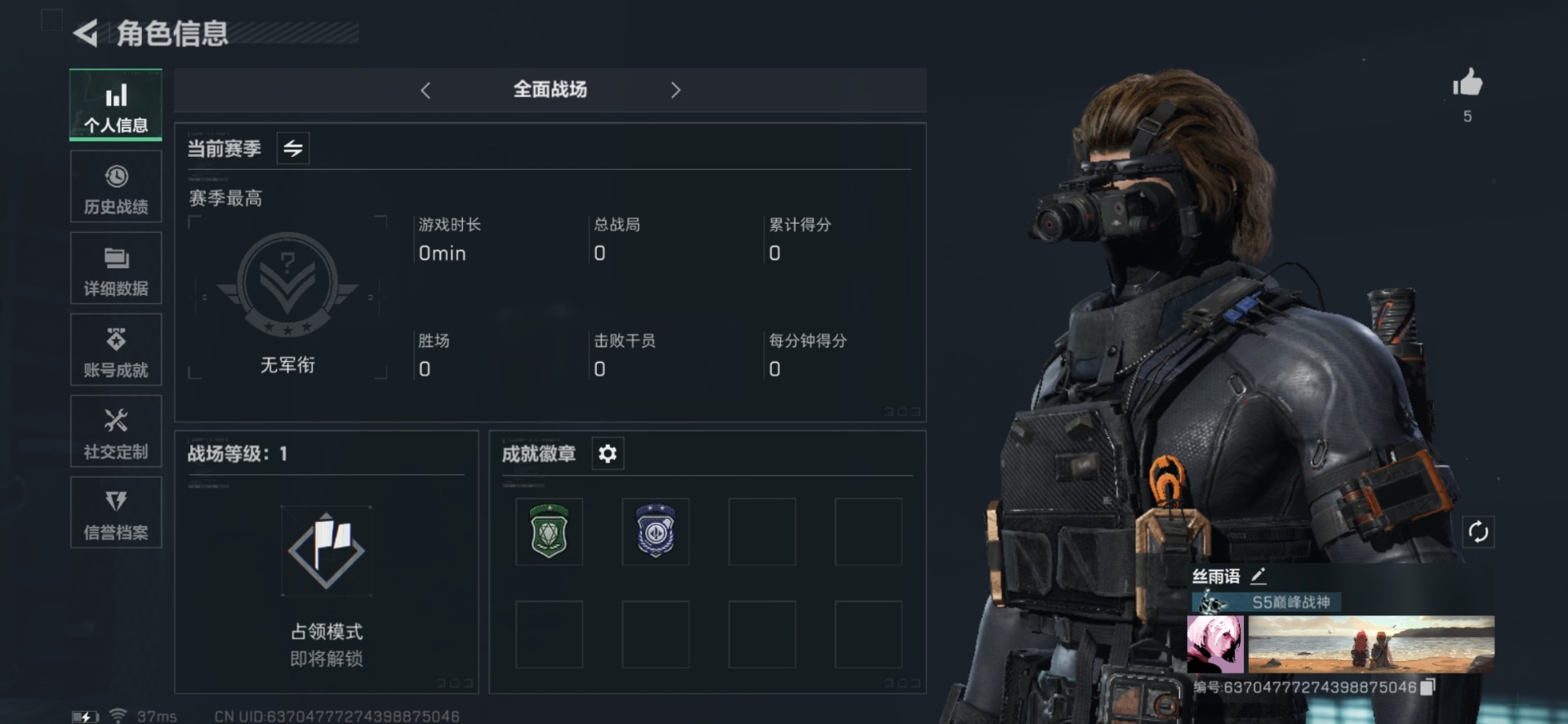 - [11677412]总资产:120.6 5传说枪械 可二次 可修改实名 烽火地带段位:白银 全面战场段位:无段位 哈夫币:82.147 传说武器皮肤:M4A1突击步枪-阿米娅,AK-12突击步枪-特斯拉线圈,SR-3M紧凑突击步枪-特斯拉线圈,UZI冲锋枪-特斯拉线圈,勇士冲锋枪-能天使-午夜邮差 史诗武器皮肤:SV-98狙击步枪-林中猎手,SCAR-H战斗步枪-囚徒
