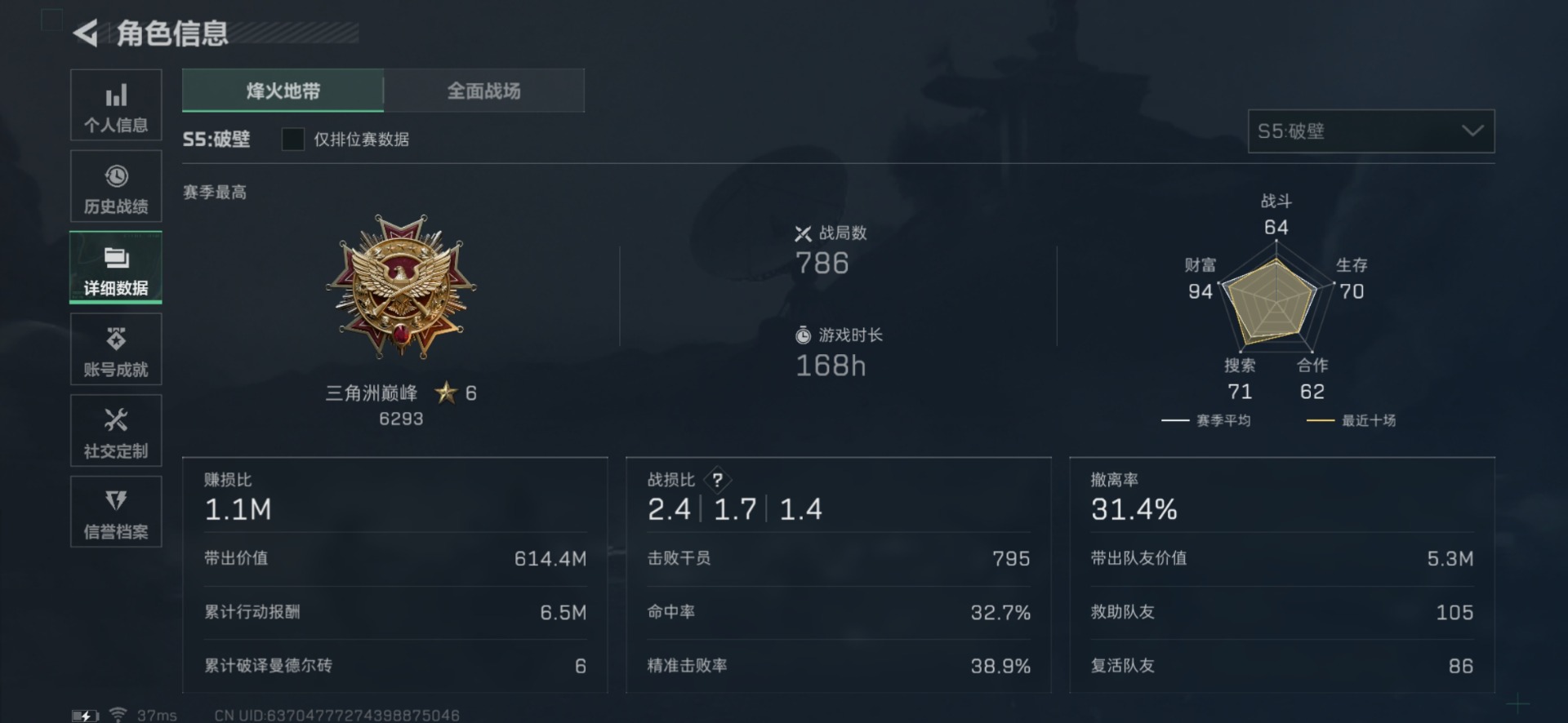 - [11685473]总资产:337.8M 1干员外观 1传说枪械 哈夫币:205K 高级安全箱(2×3)9.15号到期 可二次 可修改实名 烽火地带段位:青铜 全面战场段位:无段位 传说武器皮肤:M4A1突击步枪-阿米娅 干员外观:露娜-黑·天际线