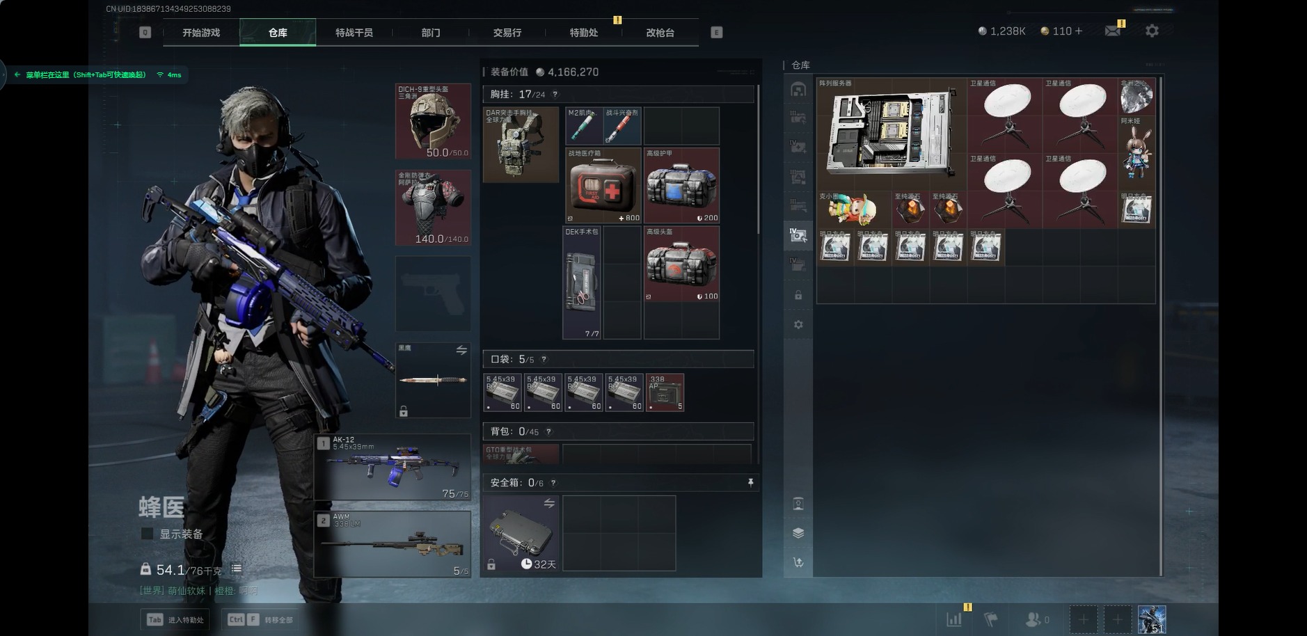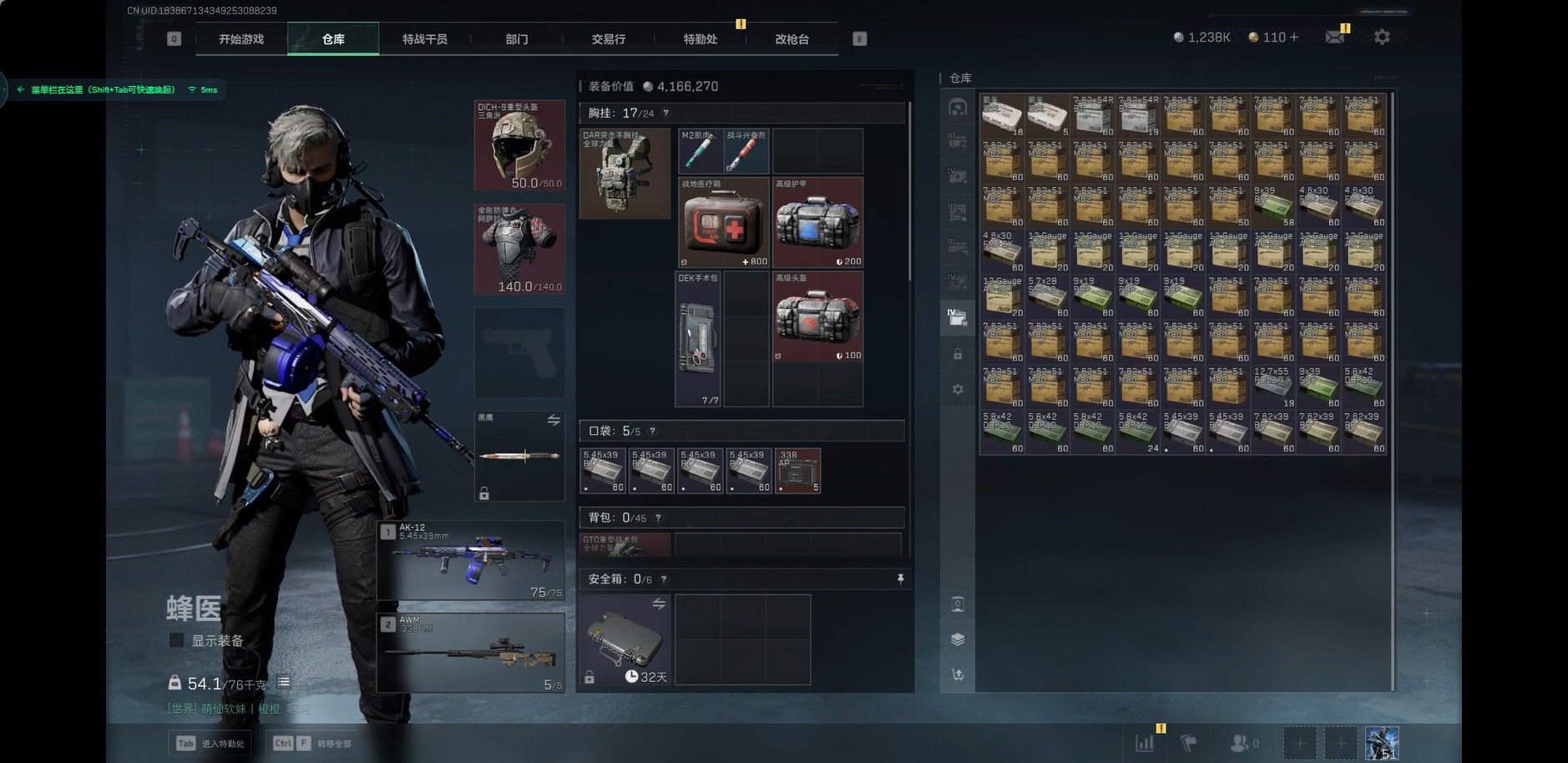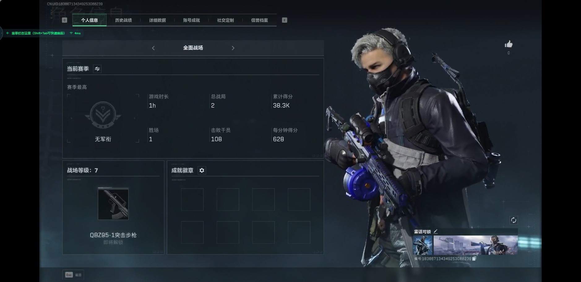 [11446051]总资产:116.2M 8传说枪械 哈夫币:1.238K 高级安全箱(9.17到期) 可二次 可修改实名 烽火地带段位:无段位 全面战场段位:无段位 传说武器皮肤:SR-25射手步枪-水墨云图,AK-12突击步枪-夜鹰,CAR-15突击步枪-阿米娅,复合弓-黑-天际线,AK-12突击步枪-特斯拉线圈,SR-3M紧凑突击步枪-特斯拉线圈,UZI冲锋枪-特斯拉线圈,725双管霰弹枪-送葬人-无题密令 史诗武器皮肤:SR-3M紧凑突击步枪-英雄,M700狙击步枪-蝮蛇,PKM通用机枪-蝮蛇,AS Val突击步枪-尖端治疗,SR-3M紧凑突击步枪-荒野求生,AKM突击步枪-林中猎手,PKM通用机枪-守夜人,SVD狙击步枪-荒野求生,M1014霰弹枪-林中猎手,SV-98狙击步枪-林中猎手,PSG-1射手步枪-无垢,SV-98狙击步枪-囚徒,SCAR-H战斗步枪-囚徒,腾龙突击步枪-无垢,MP7冲锋枪-无垢,S12K霰弹枪-曙光