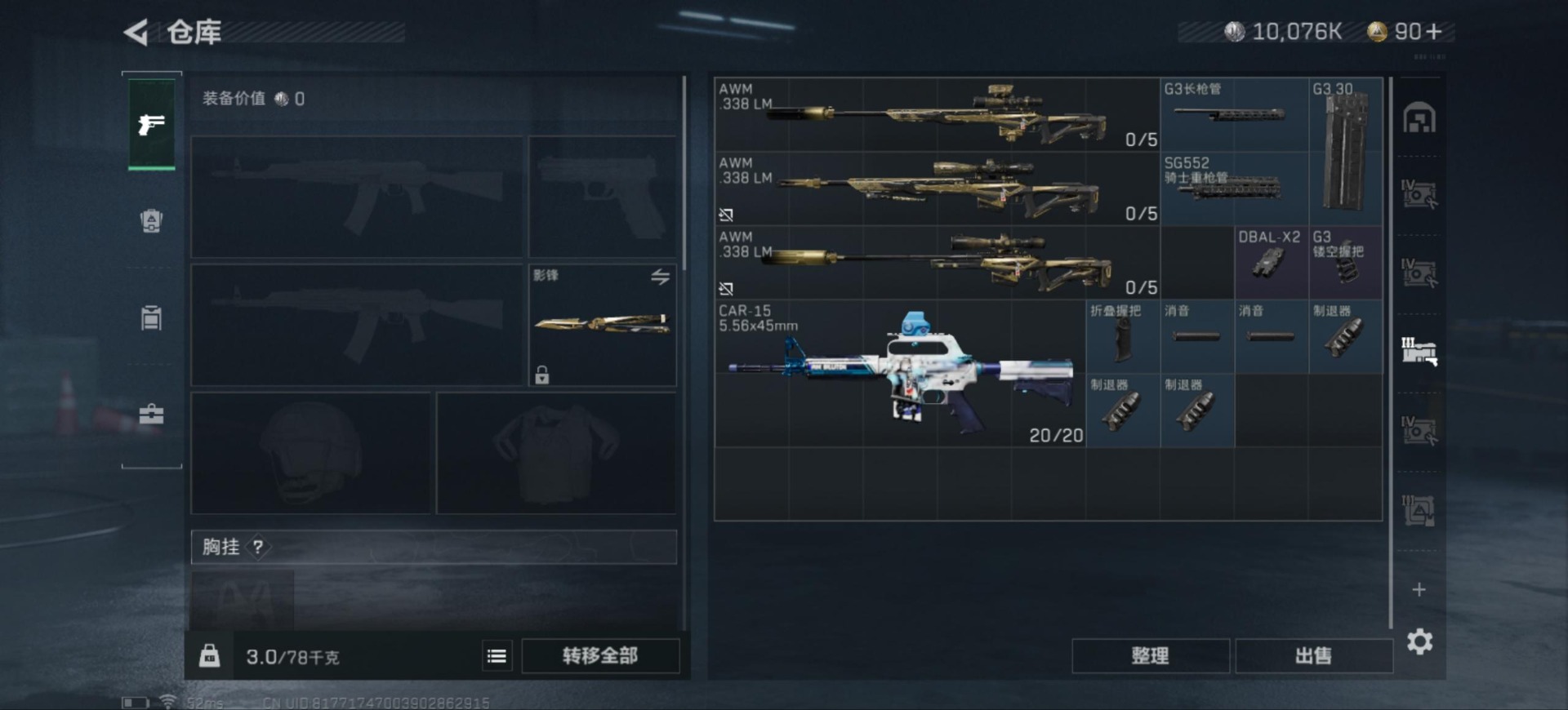 - [11685440]总资产:94.5 2传说枪械 高级安全箱(2×3)9.15号到期 可二次 可修改实名 烽火地带段位:钻石 全面战场段位:无段位 哈夫币:7.189 传说武器皮肤:复合弓-黑-天际线,725双管霰弹枪-送葬人-无题密令 史诗武器皮肤:PKM通用机枪-蝮蛇,PKM通用机枪-荒野求生,SR-3M紧凑突击步枪-荒野求生,M16A4突击步枪-竞赛选手,SV-98狙击步枪-林中猎手,PSG-1射手步枪-无垢,M250通用机枪-囚徒